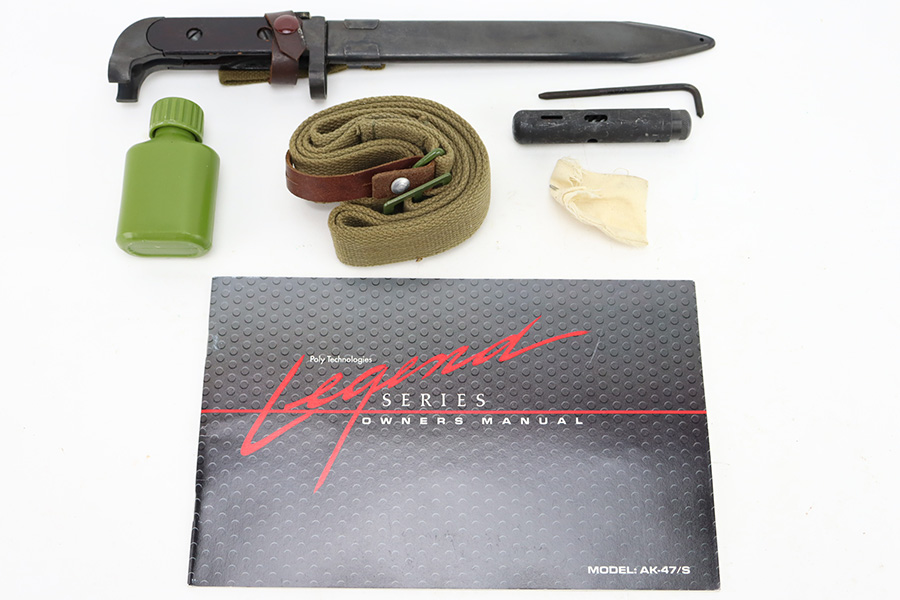 1/1/24 – This is a rare Poly-Tech AK-47/S Legend series rifle in the original box. It’s in near-mint condition with just minor “box wear” and a minty bore. The wood furniture is in excellent condition with little to no handling wear. Box includes the original Styrofoam insert, as well as the manual, sling, three mags and bayonet. Box is numbered and matching to the rifle.