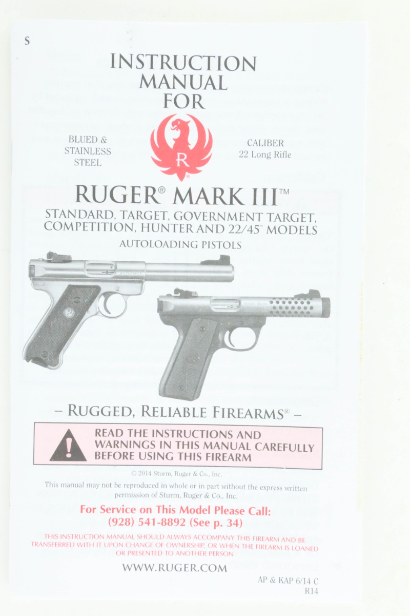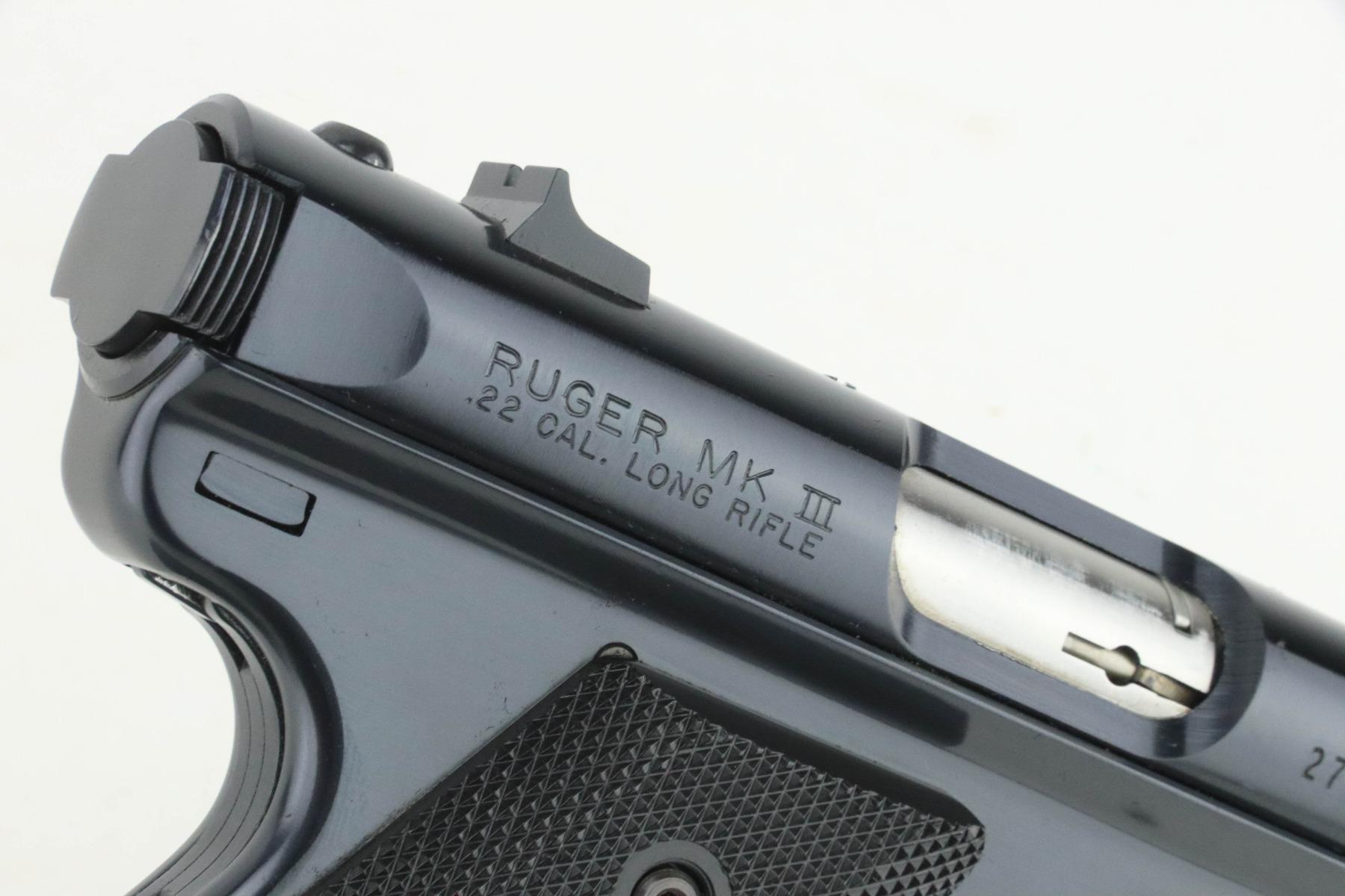 09/20/2024 – For sale is a Ruger Mk III with its original box. The pistol is in excellent condition with a fantastic high polish finish. The bore is mirror bright with great rifling. The box is original to the pistol with the original test cartridge.