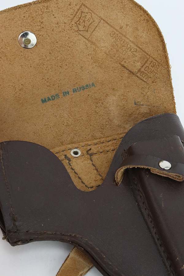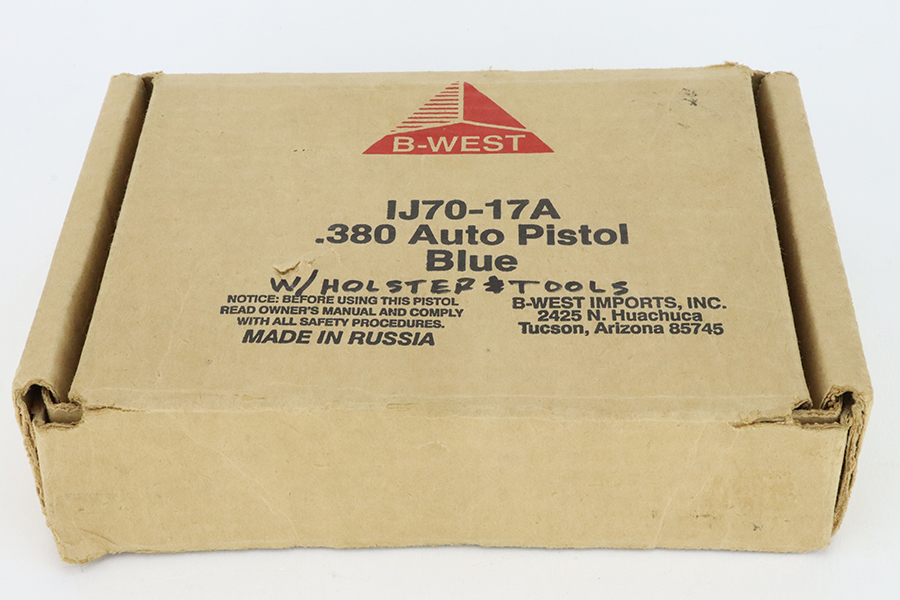 1/31/24 – This is a Russian Makarov IJ70-17A manufactured in the 1990’s. All matching and comes with its original matching-numbered import box, holster, leather lanyard, owners manual, four magazines, and a multitool. The gun itself has retained virtually all of its finish with just one small area of minor discoloration on the right side of the frame above the grip panel. Fitted with a nice black plastic grip. Mint bore.