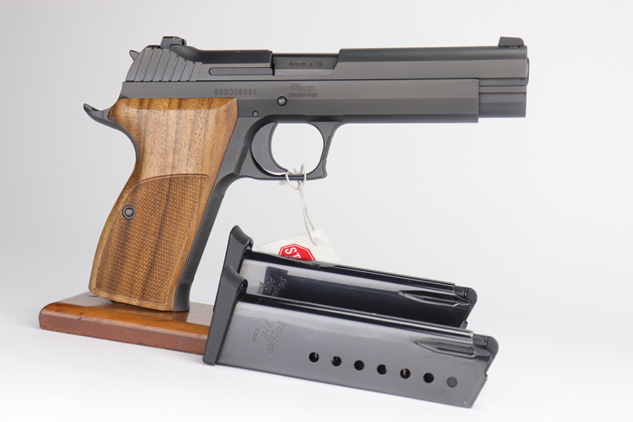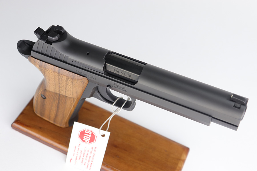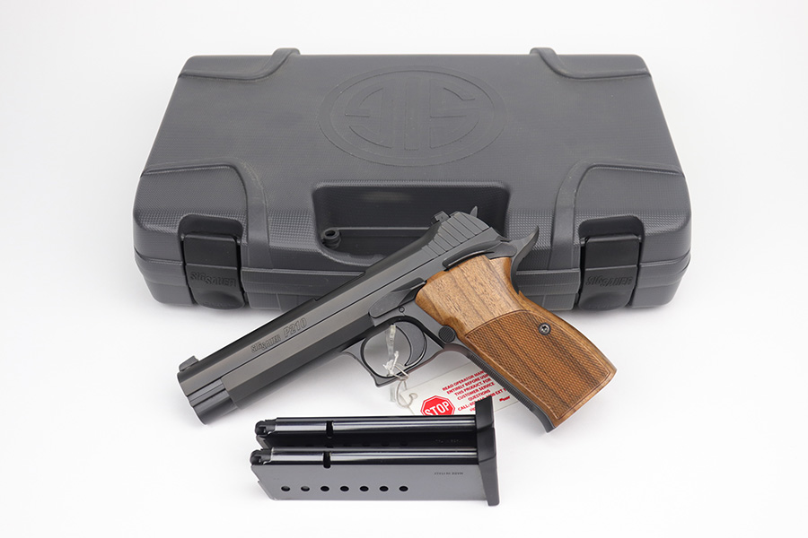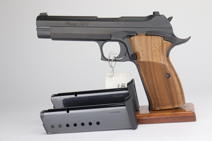 12/23/22 – This is an unfired Sig Sauer P210A-9-B. The P210 is an iconic Swiss design known for terrific quality, and SIG Sauer recreated the Swiss Army’s pistol here in the states. Both the slide and frame are precision-machined out of stainless steel with a Nitron finish for wear resistance. Updated ergonomic controls delivers an easy-handling experience. Custom walnut grips. Comes with the original matching case, owners manual, Sig sticker, two magazines, and gun lock. And still has the original hang tag! FFL required.