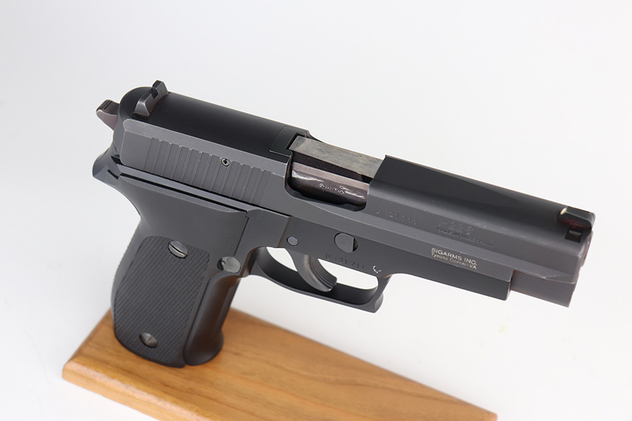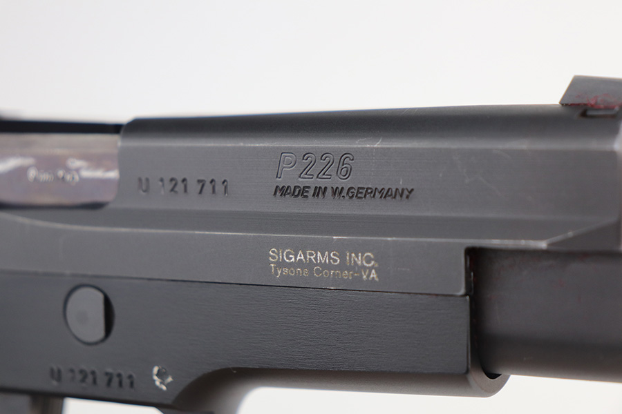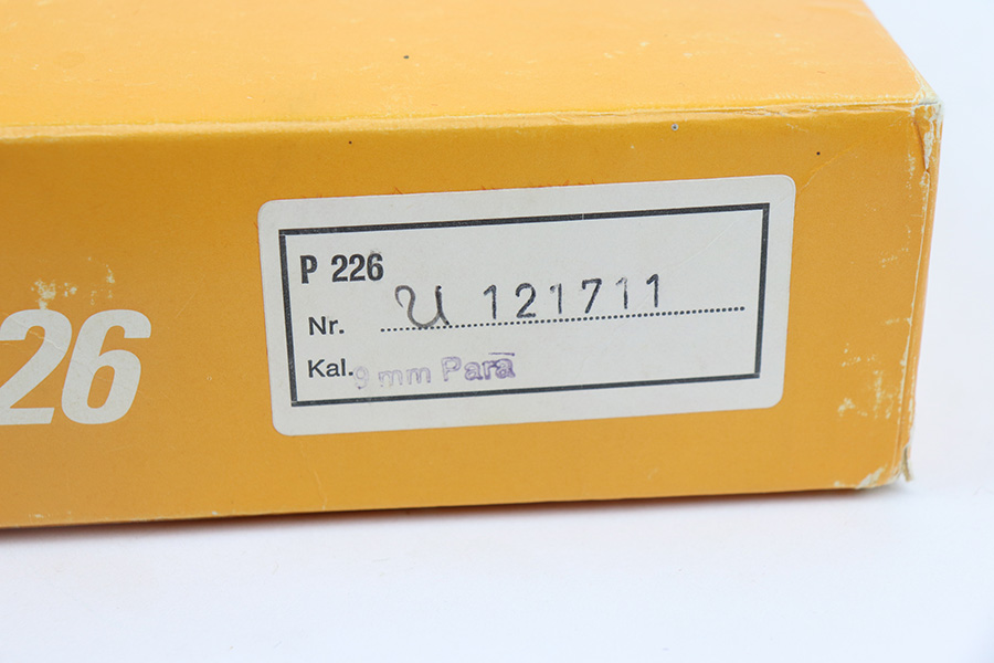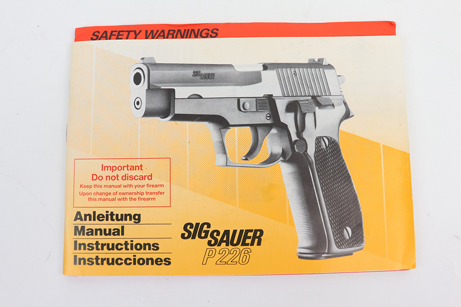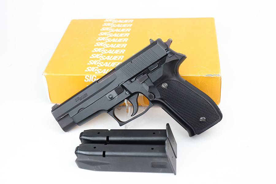 5/7/21 – This is a mint example of a Sig Sauer P226 chambered in 9mm Luger and manufactured in 1984. The gun comes with the original matching box, owners manual, and two proper magazines. The gun is in like-new condition – just barely a hint of wear on the high edges of the slide. The bore is mint.