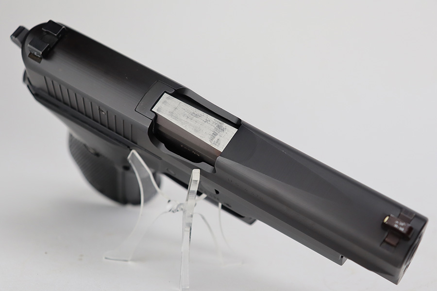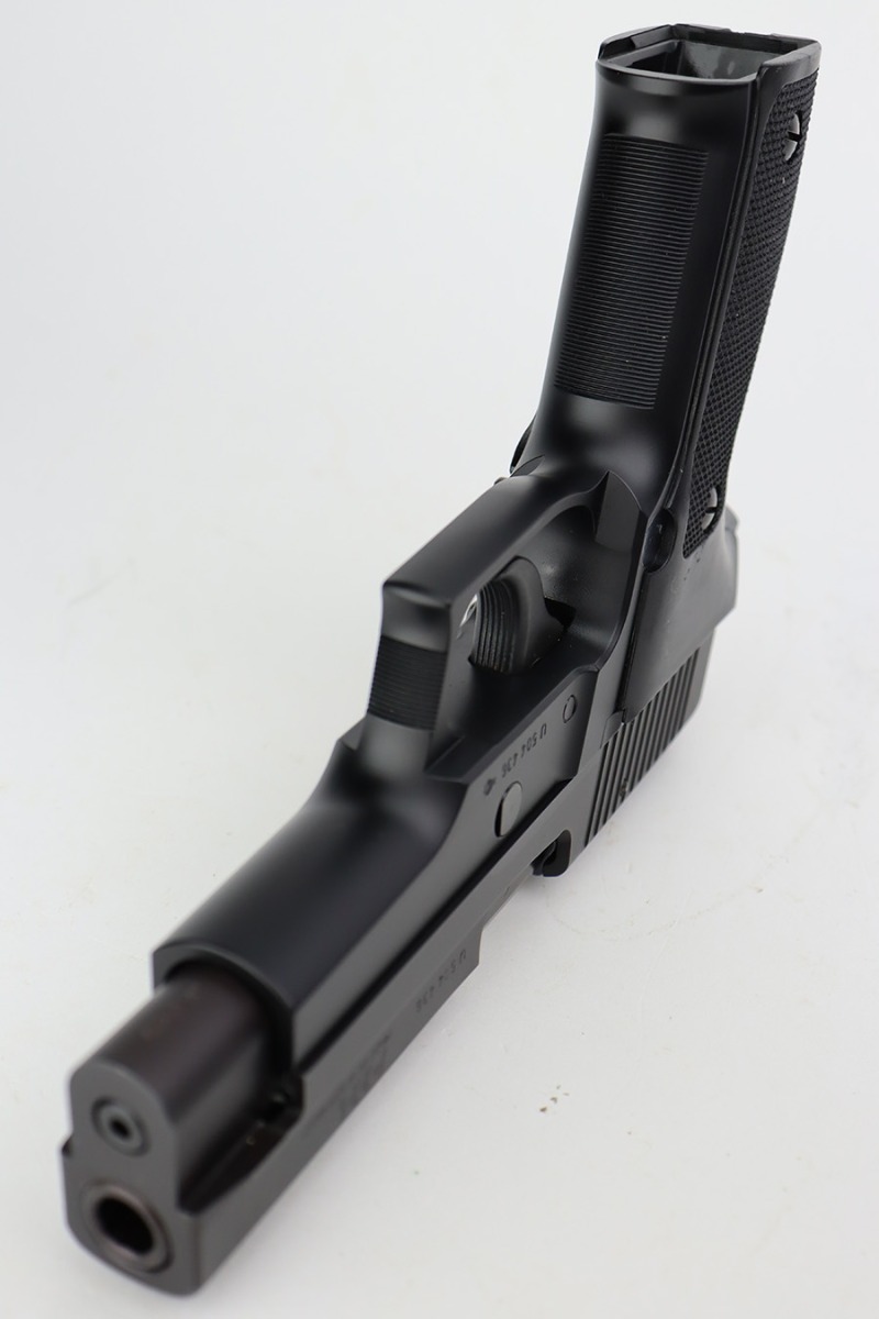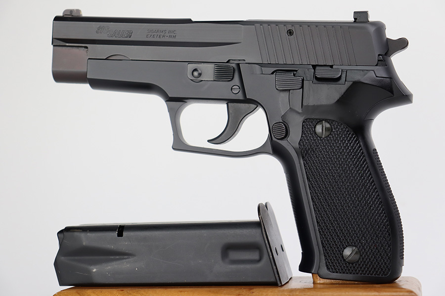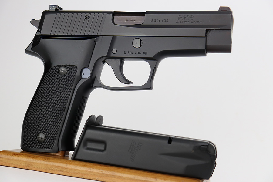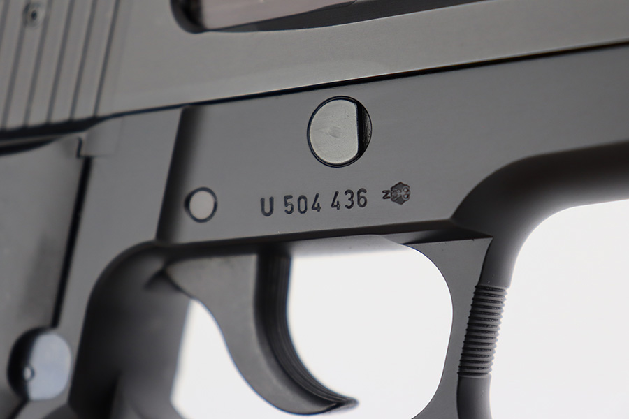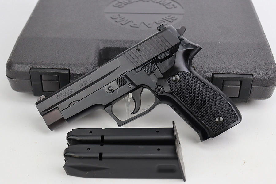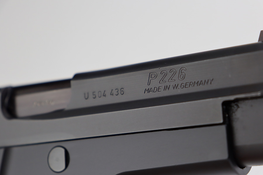 7/11/23 – This is a like-new example of a Sig Sauer P226, manufactured in 1994 and chambered in 9mm Luger. All matching with the proper West German proofs. It comes with its original hard case (not numbered), two magazines, and an owners manual. The gun is mint with no signs of use or wear. Fitted with excellent black plastic grips. Factory-new bore.