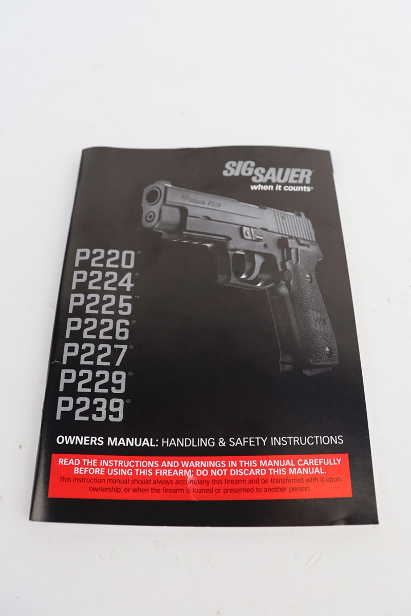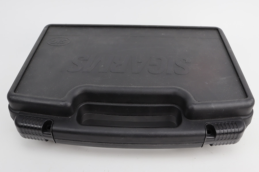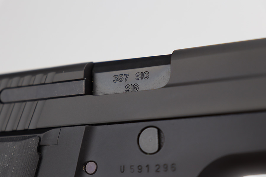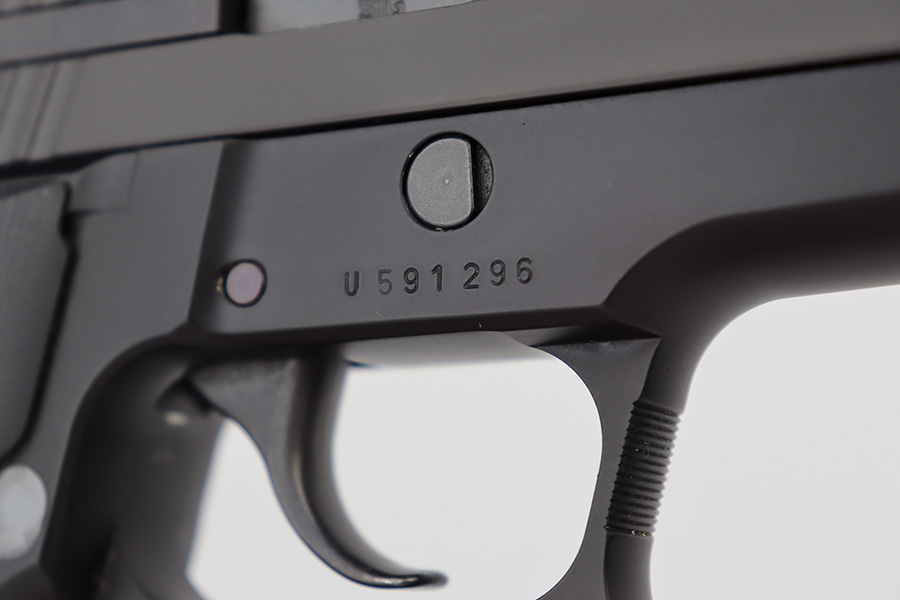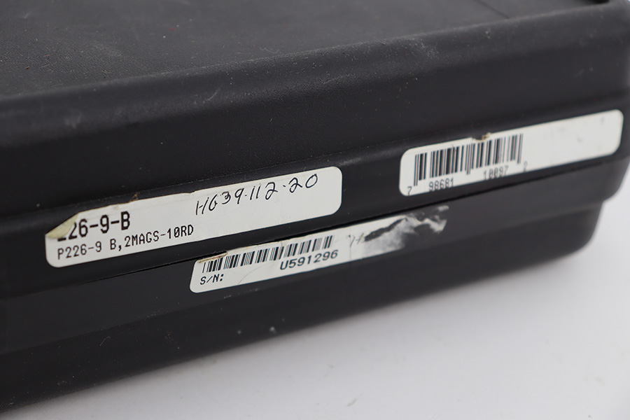 6/26/23 – This is an ANIB Sig Sauer P226 in the original, matching box. Made in 1997, this one also comes with a .357 Magnum conversion kit. The pistol was photographed with the .357 slide in place but the box as labeled is for a 9mm example. The 9mm slide has no wear but the ejection port shows minor use. Both barrels have mint bores, and the .357 slide appears unfired/like new. Total of two magazines, one for each caliber. Manuals included.