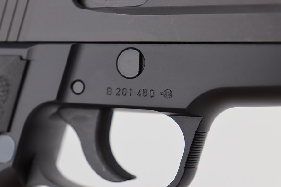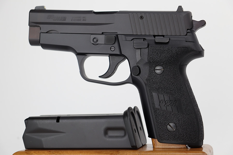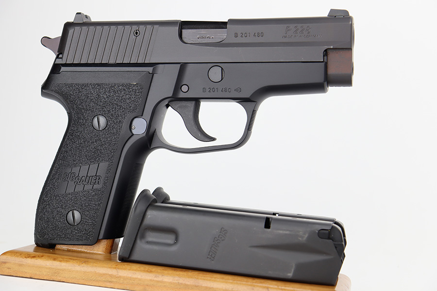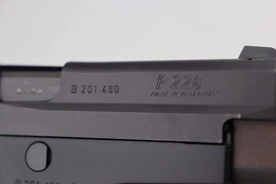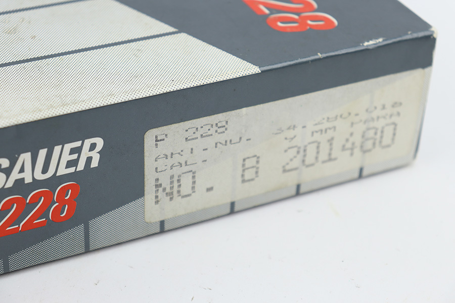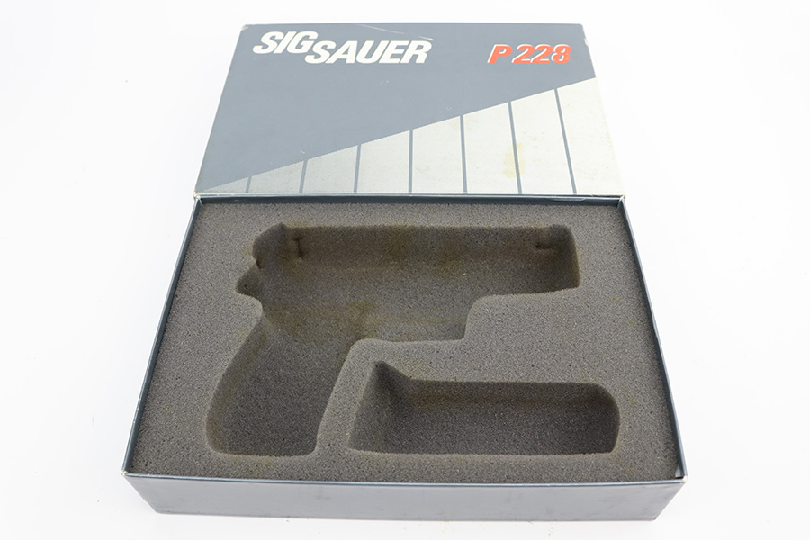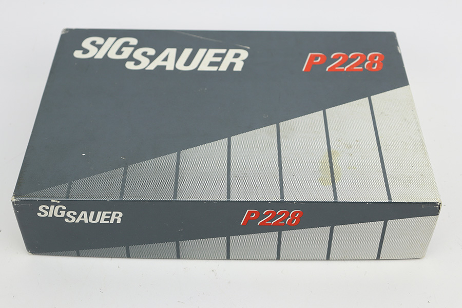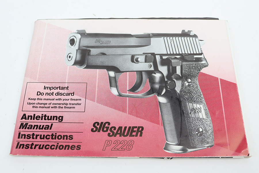 8/3/23 – This is a like-new example of a Sig Sauer P228, manufactured in 1993 and chambered in 9mm. It is all matching and comes with its original matching-numbered box, two magazines, and owners manual. The gun is in like-new condition with no signs of wear or use. Fitted with excellent black plastic grips. Factory-new bore.