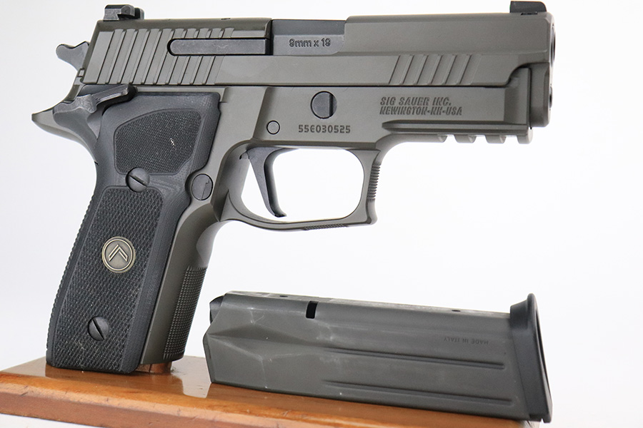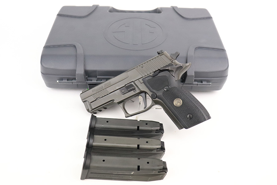 7/13/22 – This is an ANIB Sig Sauer P229 Legion. Comes in the original, matching case with two spare mags and the Sig manual/paperwork. SAO pistol with Legion Gray PVD finish on the slide and frame which has a reduced and contoured elite beavertail and is relieved under the trigger guard (XFIVE Contour). Legion also has enhanced checkering on front strap and under trigger guard, low-profile slide catch and decocking levers. Topped off with Sig Sauer Electro-Optics X-Ray3 High Visibility Day/Night Sights.