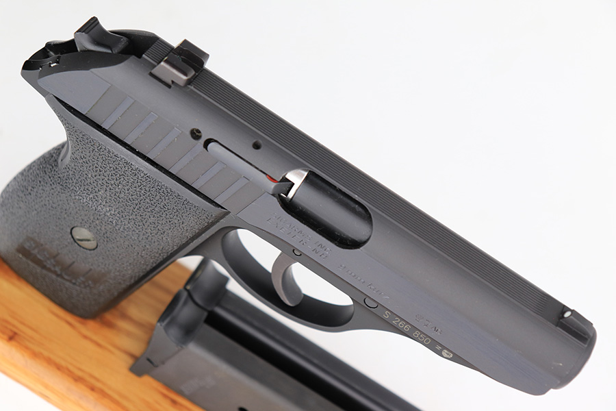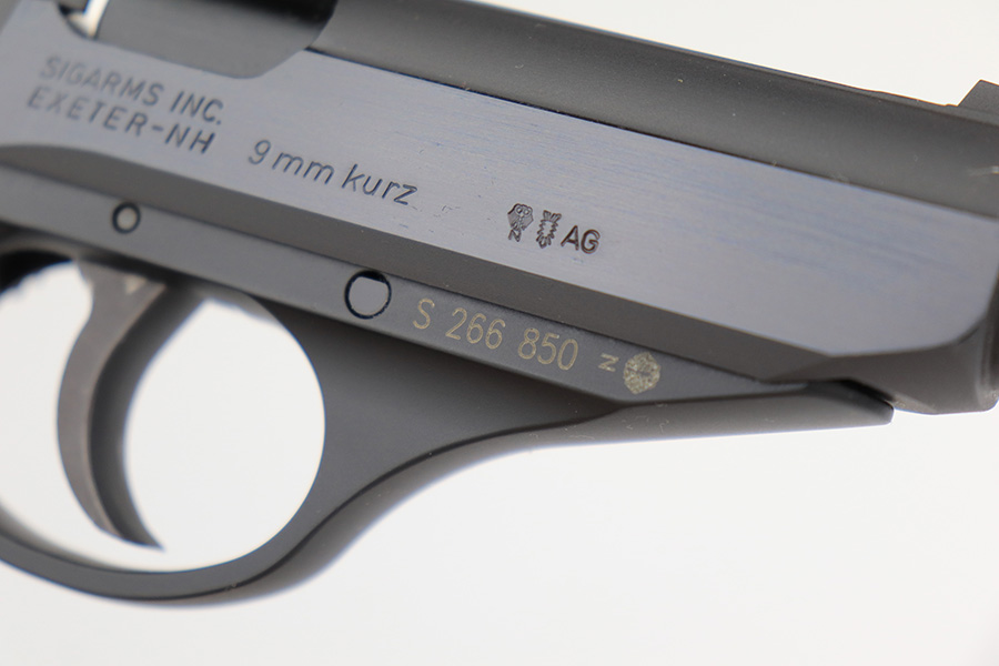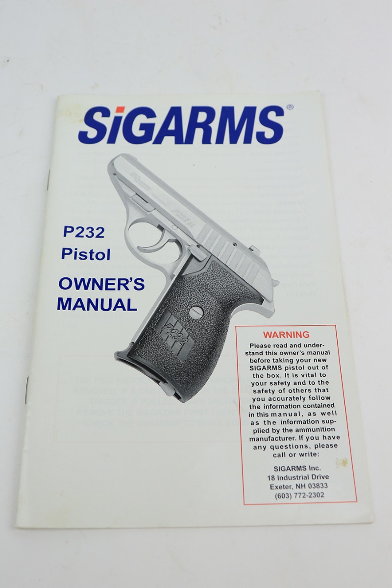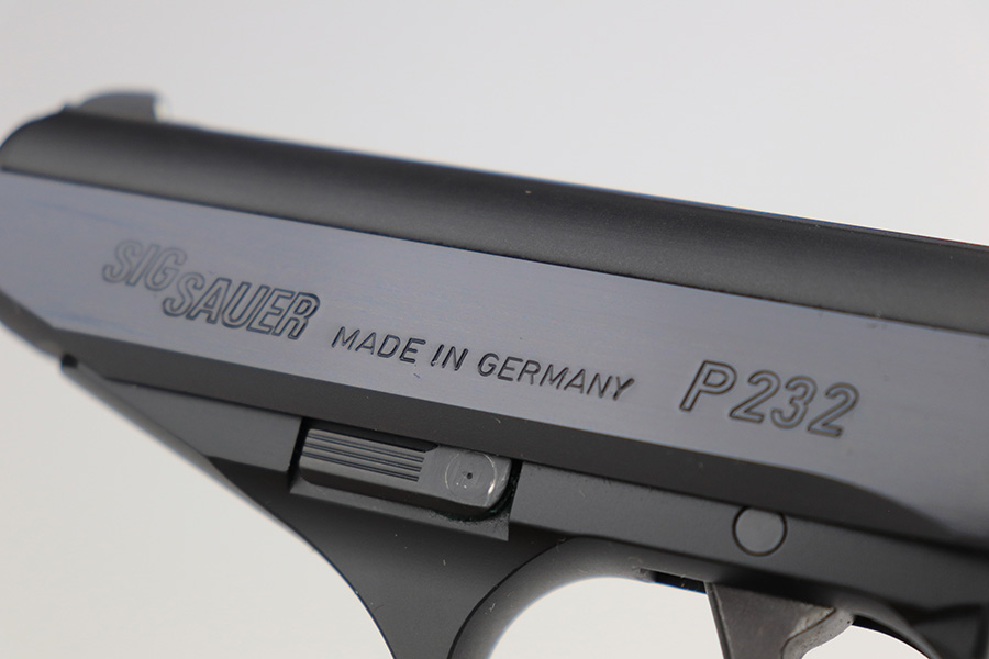 4/4/23 – This is a like-new example of a Sig Sauer P232 semi auto pistol, chambered in .380 ACP. All matching with the proper West German proofs. It comes with its original matching-numbered hard case, owners manual, two magazines, and a small Allen wrench. The gun itself is in like-new condition with no signs of wear or use. Mint bore.
