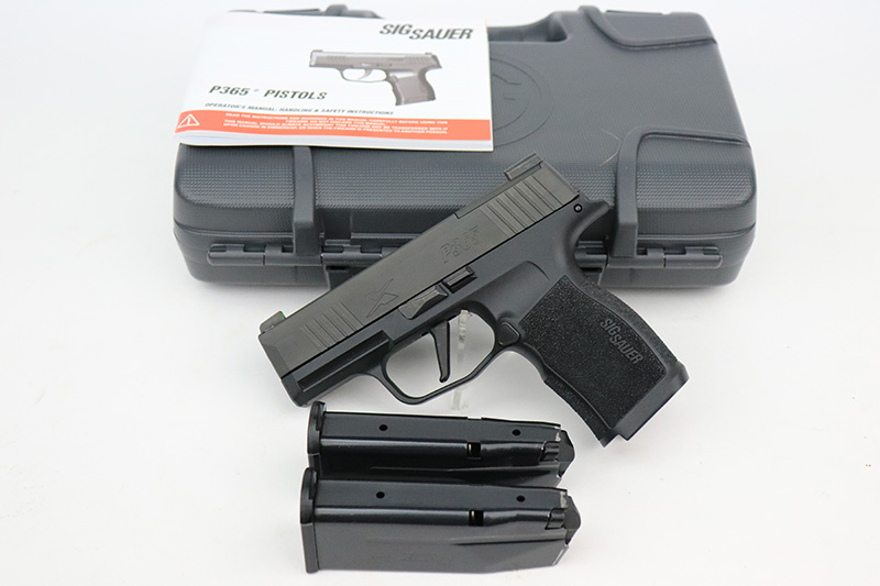 9/27/22 – This is a like-new example of a Sig Sauer P365X chambered in 9mm Luger. It comes with its original matching-numbered hard case, two magazines, owners manual, and gun lock. It is in like-new condition with very no signs of wear or use. The bore is like-new. 3″ barrel. This gun would make a perfect conceal carry piece!