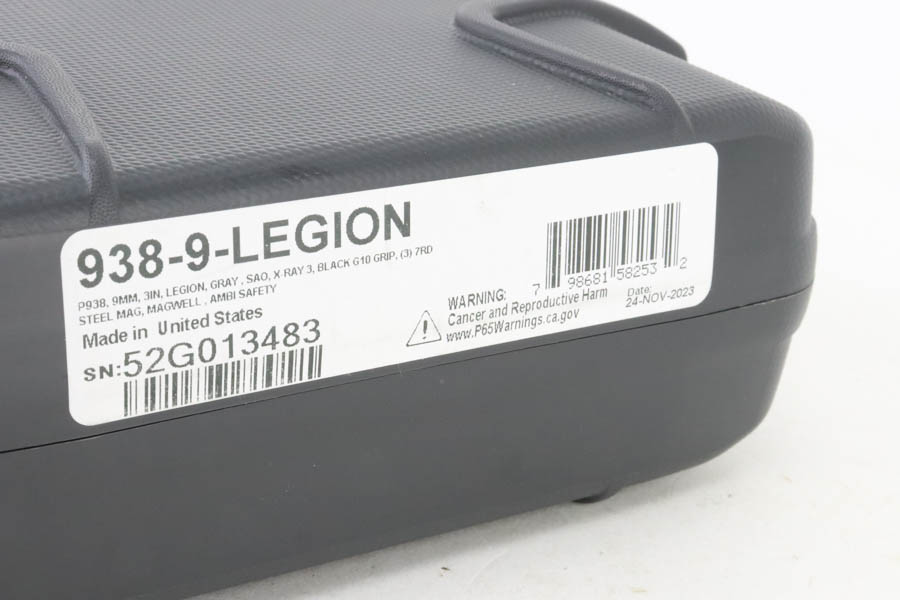 7/10/24 – This is a mint example of a Sig Sauer P938 Legion chambered in 9mm. It comes with its matching-numbered hard case, sales papers, gun lock, stickers, three magazines, and challenge coin. The gun is like-new with no signs of wear or use. Mint bore.