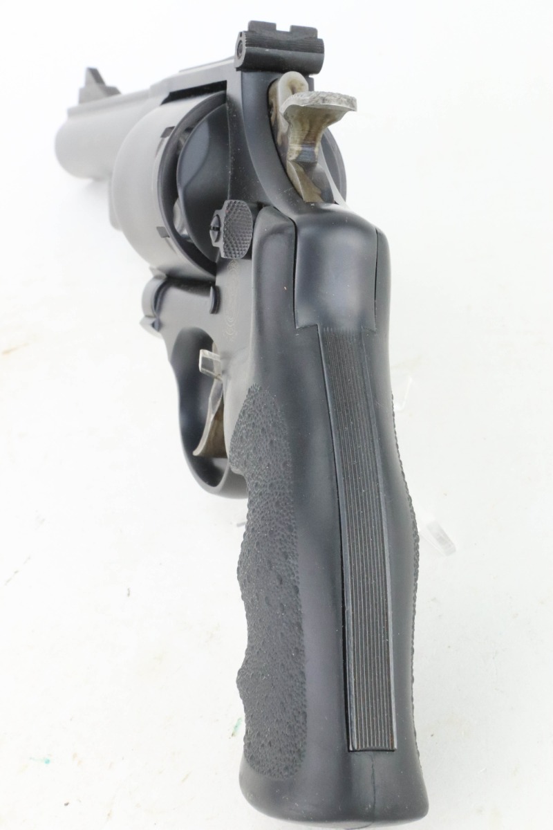 11/4/24 – This is a mint example of a Smith & Wesson 25-7 Model of 1989. Chambered in .45 Caliber with a 5 inch barrel. It comes with its original matching-numbered box, owners manual, and cleaning kit. The gun has a really nice matte blued finish with a black rubber grip. Virtually no signs of wear or use – just a very light roll mark on the cylinder. Like-new bore.