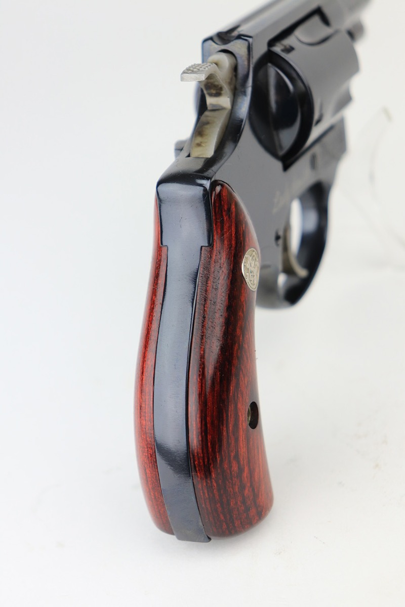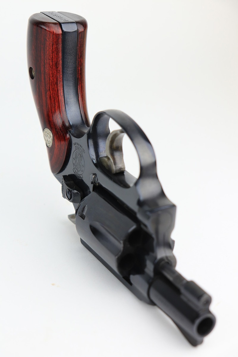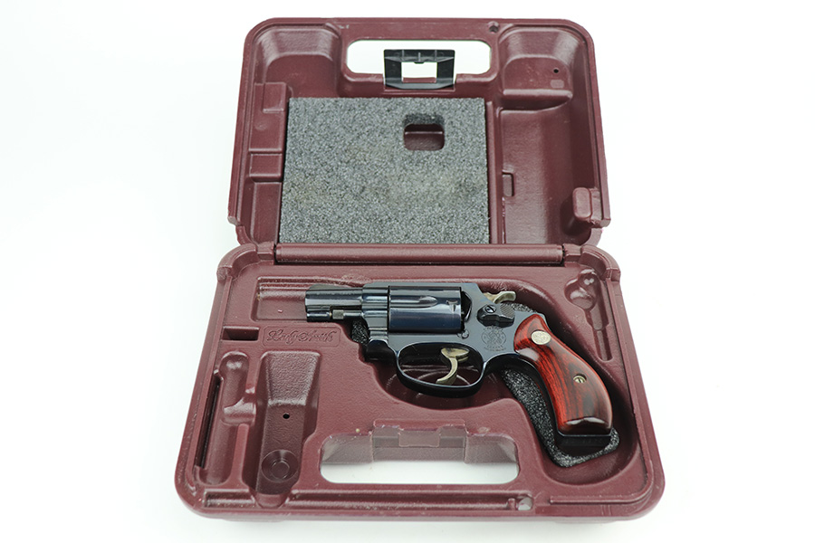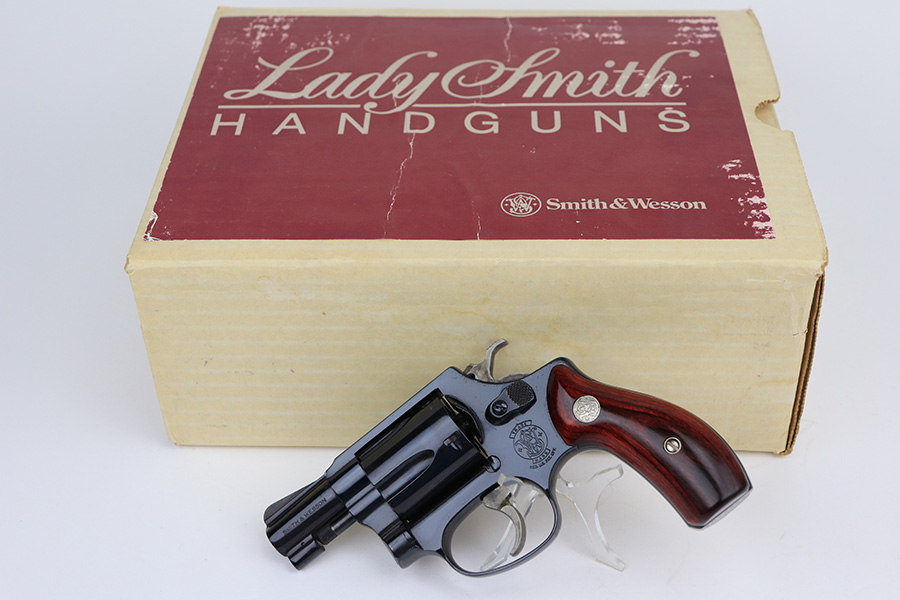 2/23/22 – This is a like-new example of a Smith & Wesson Lady Smith revolver. It is chambered in .38 Special and has a 2 inch barrel. The gun comes with the original matching-numbered cardboard box and hard case. The gun is in like-new condition with no obvious signs of wear except for just a hint of a roll mark on the cylinder. Comes with beautiful cherry wood grips. The bore is mint.