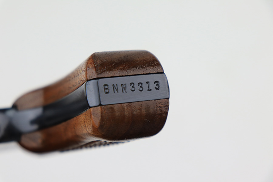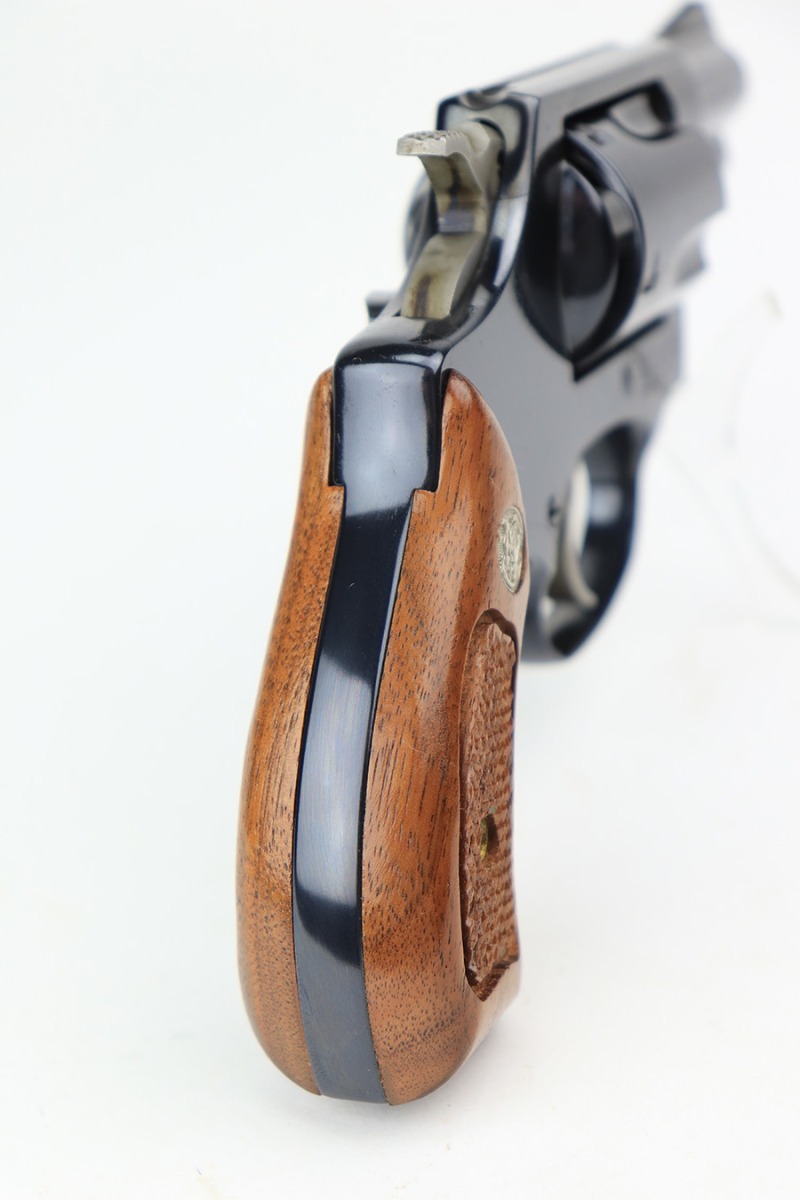 3/17/22 – This is a like-new example of a Smith & Wesson Model 36-7 revolver manufactured in the 1990’s. The gun is all matching and comes with the original matching-numbered box and owners manual. It has retained all of its original bright blue finish with just the slightest hint of a roll mark on the cylinder. Comes with mint walnut grips. The cylinder is tight, and the action is very smooth. The bore is mint.