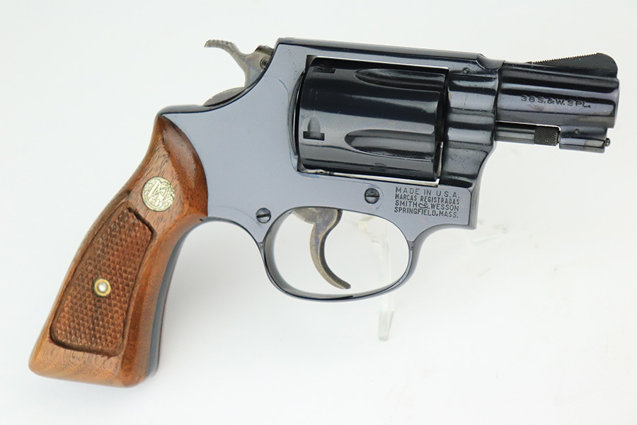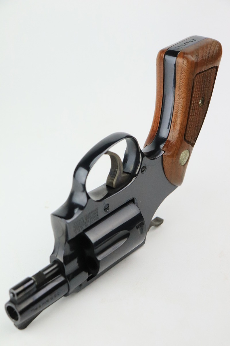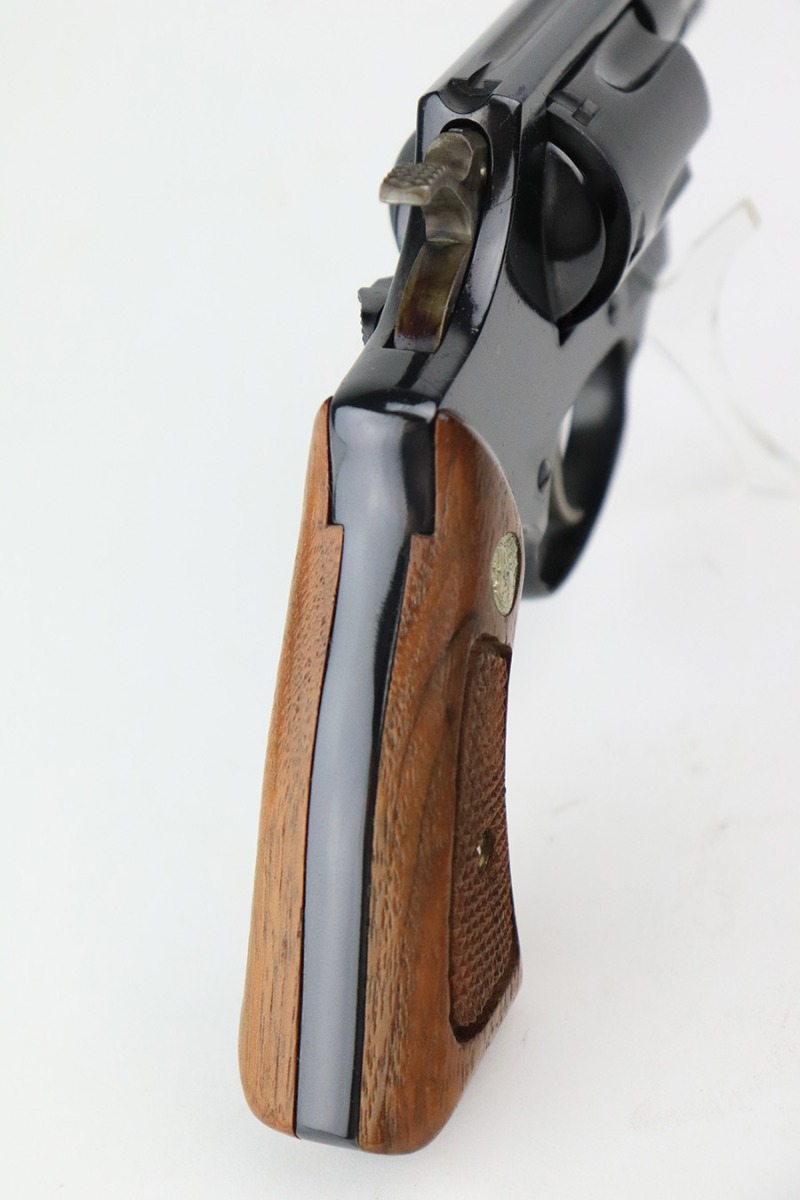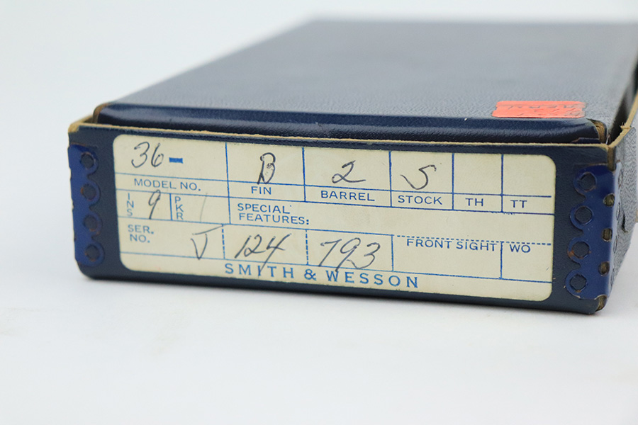 6/10/22 – This is a beautiful example of a Smith & Wesson Model 36 revolver manufactured in 1973-74. It has 2″ barrel and is chambered in .38 Special. It comes with its original matching box and owners manual. The gun is in mint condition with virtually no signs of wear except for the faintest roll mark on the cylinder. Excellent case-hardening on the hammer and trigger. Comes with mint Walnut grips. The bore is mint.