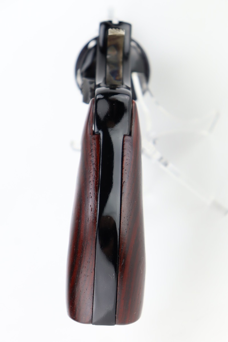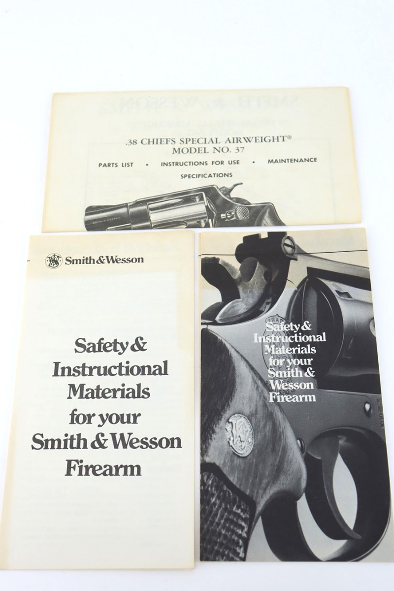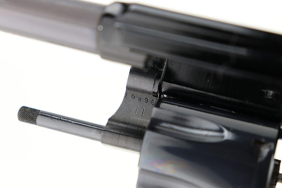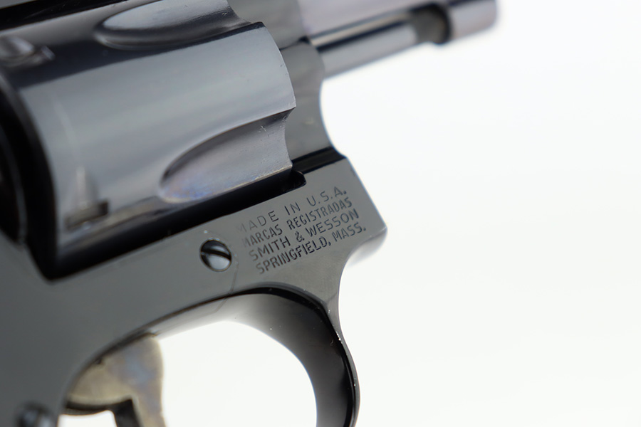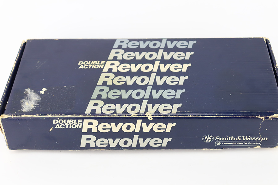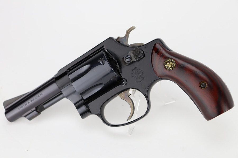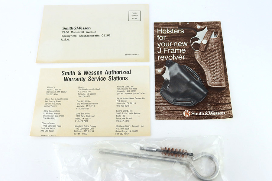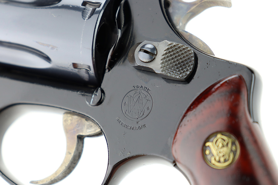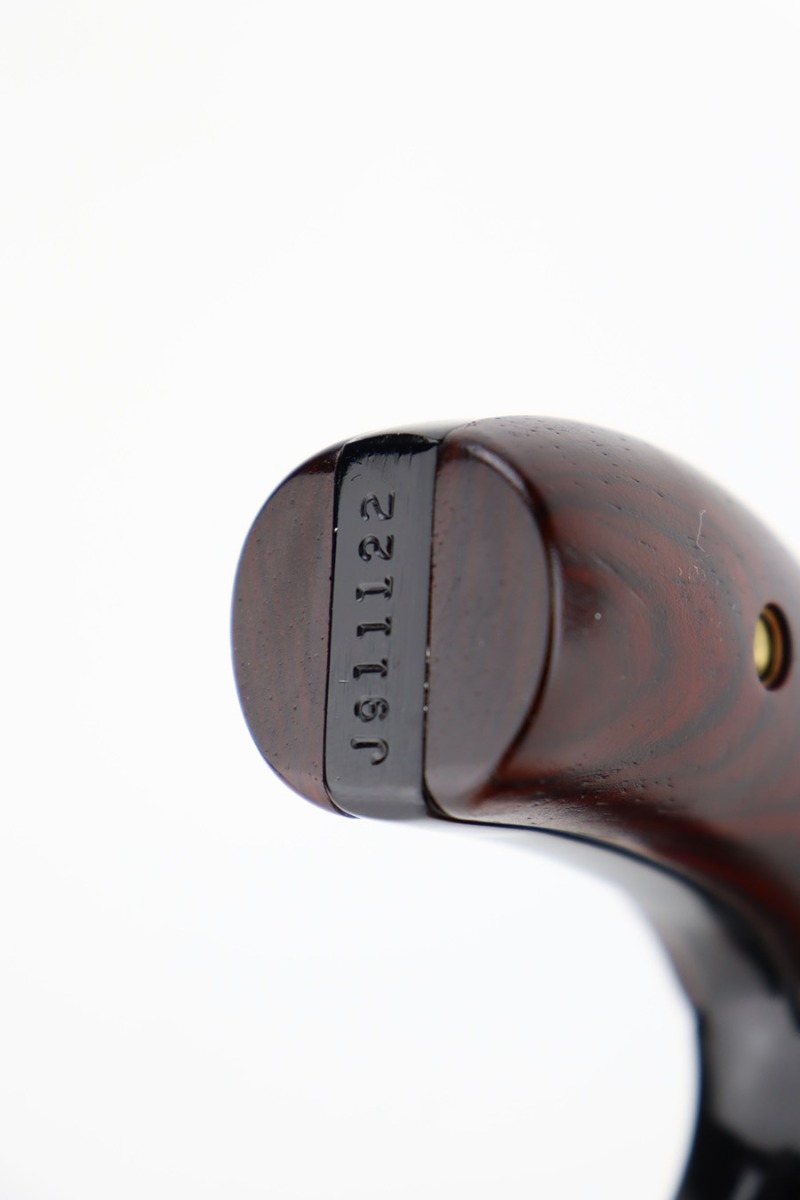 12/11/23 – This is a mint Smith & Wesson Model 37, manufactured around 1974 and chambered in .38 Special. Comes with its original matching-numbered box, owners manual, and cleaning rod. It has retained virtually all of its original finish with just a hint of a roll mark on the cylinder. Fitted with beautiful cherry-colored wood grips. Mint bore.