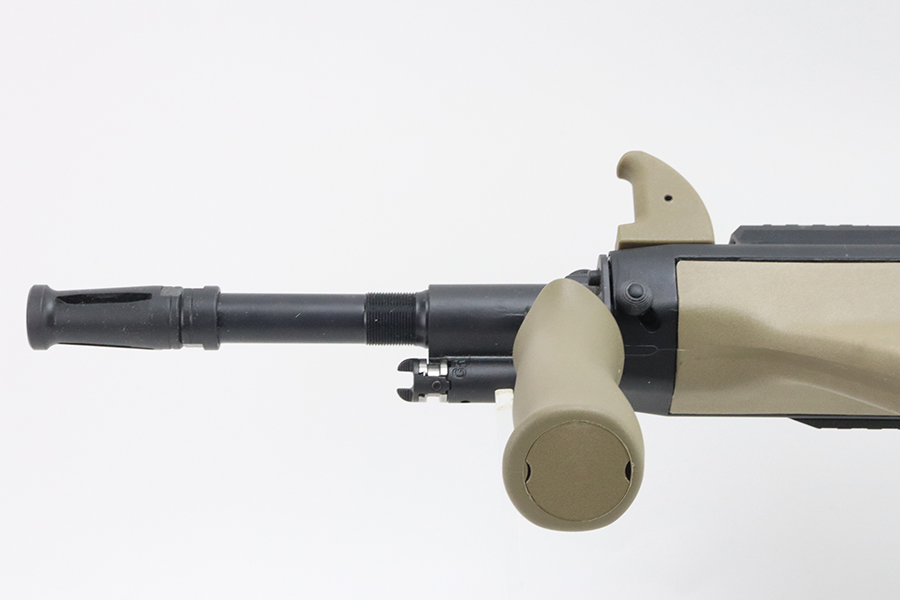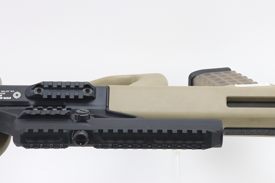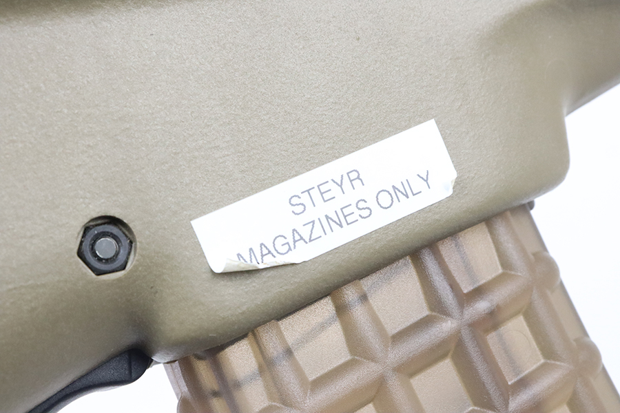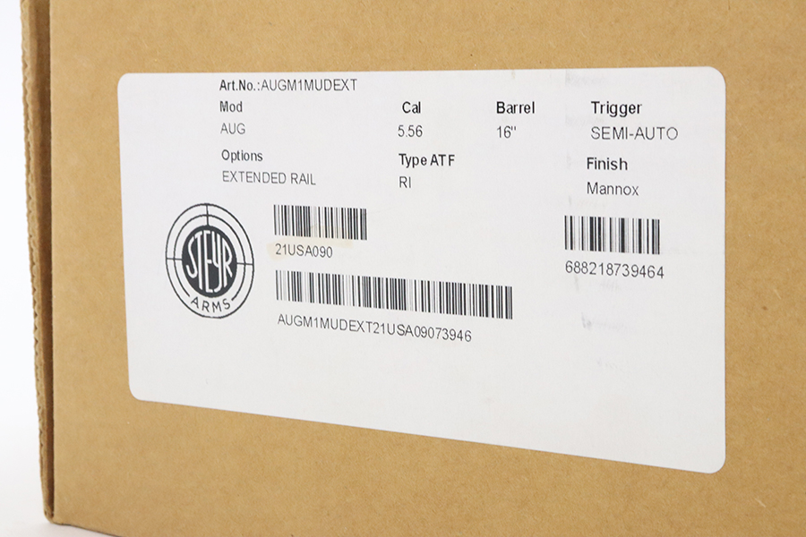 4/4/24 – This is a like-new example of a Steyr AUG / A3 M1 Carbine, chambered in 5.56mm. In the “mud” color scheme with extended rail. It comes with its original matching box, owners manual, and one magazine (still wrapped). Scope has perfect optics. The gun is like-new with no signs of wear or use. Mint bore.