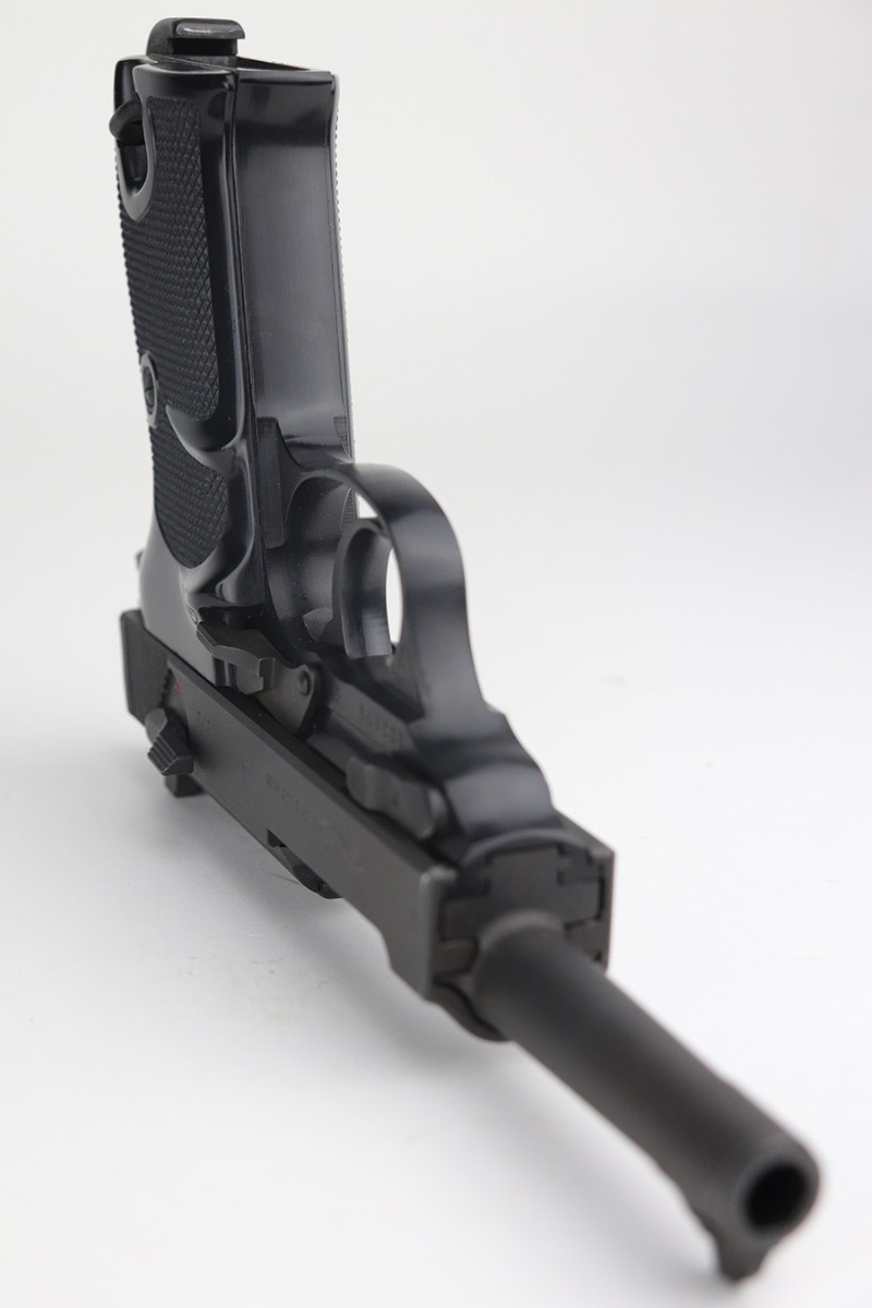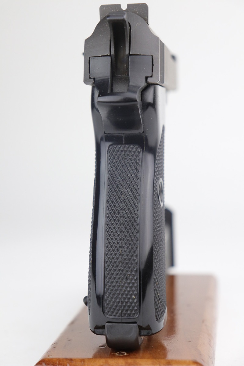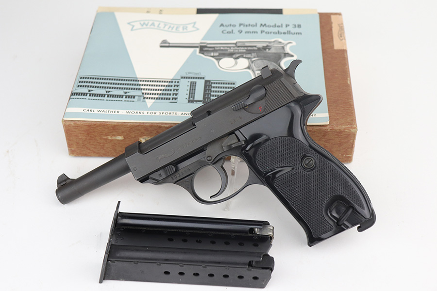 11/29/21 – This is a mint Walther P.38 from 1968 in its original, matching box. It also comes with the original test target, manual and spare magazine. The gun is in mint, nearly unfired condition with a mint bore. Matching numbers throughout. It’s especially desirable as this one does not have an import mark on it. Excellent grips with just a hint of handling wear. The extras are all in excellent condition, as well. C&R eligible.