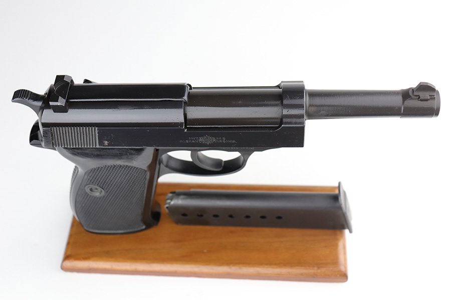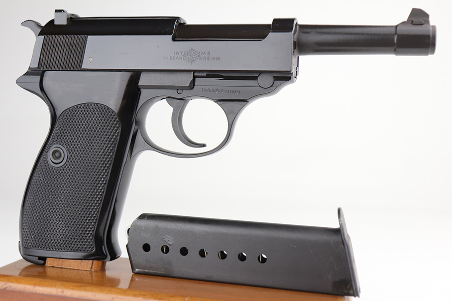 10/8/21 – This is a mint Walther P.38 from 1969 in its original box. It’s all matching with 99+% of the blue remaining, as it has just a single, minor surface scratch on left side of slide. Mint bore and grips. Interarms import mark on right side of slide. Comes in the original, matching box and the box has the original cleaning rod, manual, spare magazine and matching test target. C&R eligible.