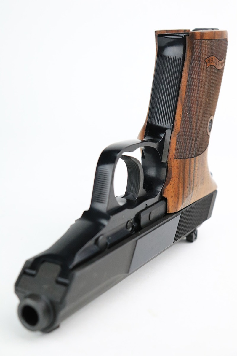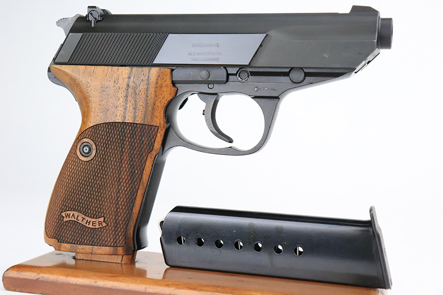 8/2/22 – This is a minty Walther P5 in its original box. Made in 1985, this one has just a tiny hint of “box wear” on the right side of the muzzle. It’s otherwise mint with a bore that appears unfired. The listing includes the original matching box and test target, as well as the manual, cleaning rod and spare magazine. This one also has a very nice set of wood thumb rest grips in addition to the original pair. FFL required.