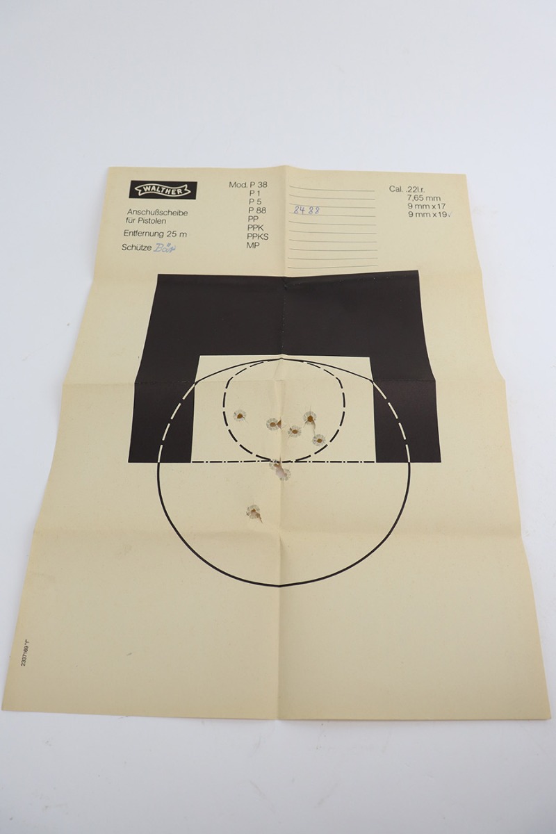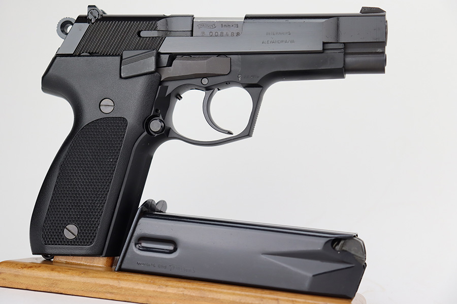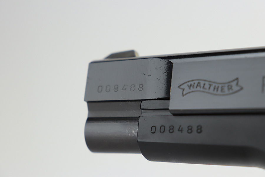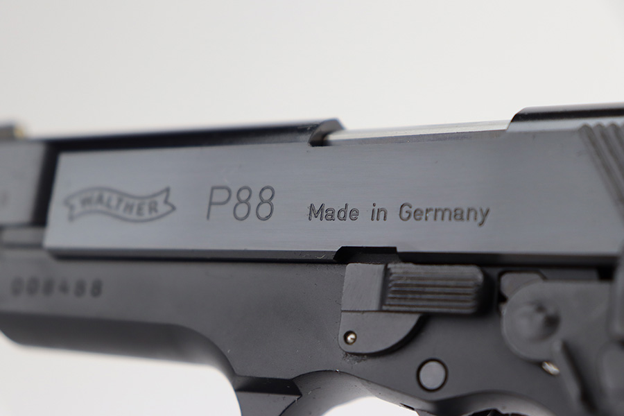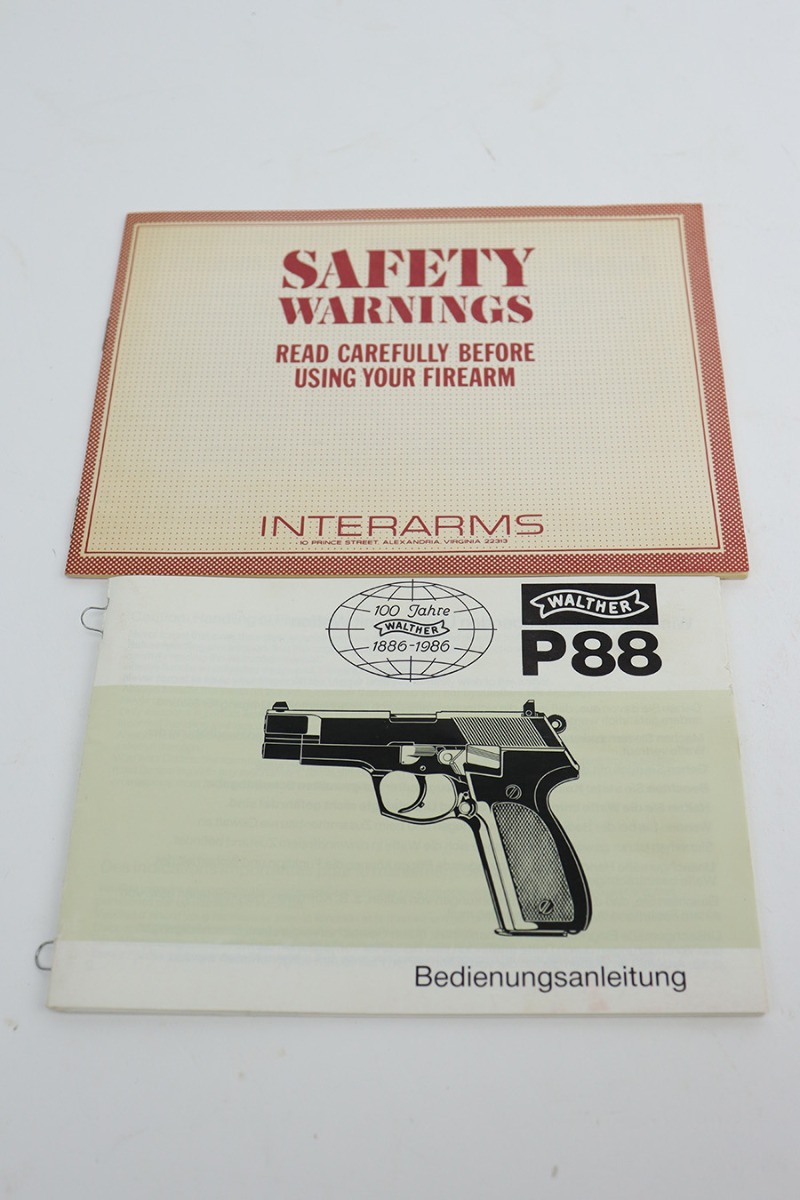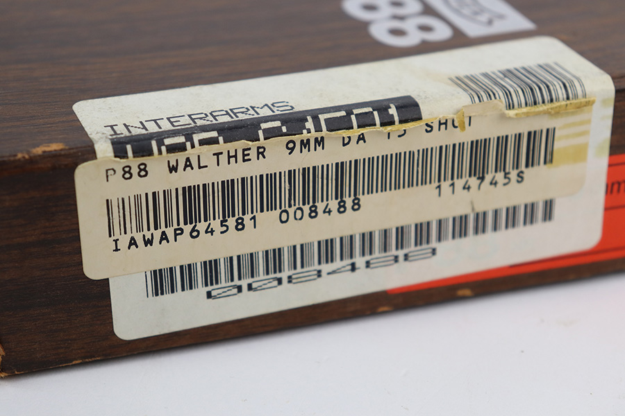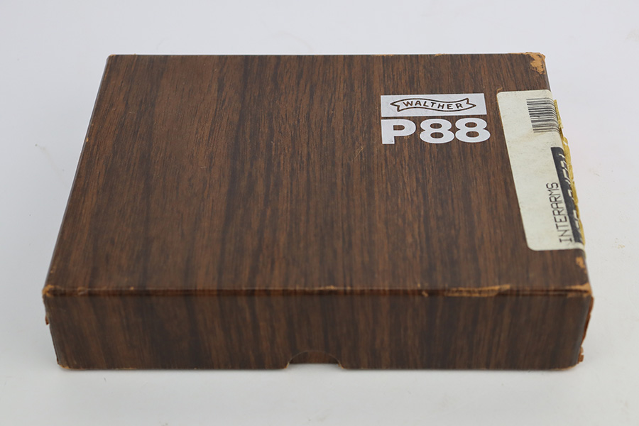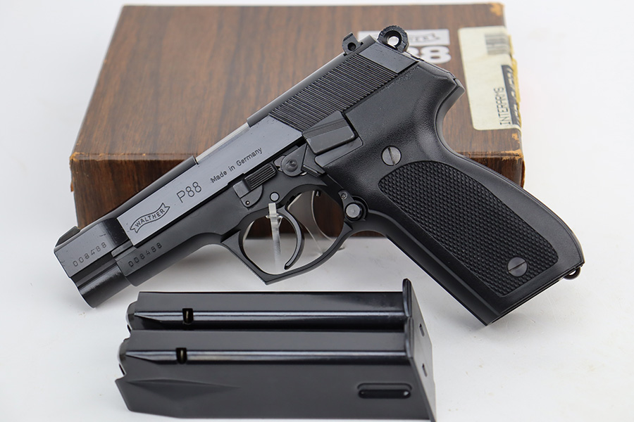 6/21/23 – This is a mint, boxed Walther Model P88 manufactured in 1990 (date code on frame). The gun is all matching and has the proper West German proofs. It comes with the original matching box, matching test target, owners manual, cleaning rod, and two magazines. No wear on the pistol and a mint bore. Import mark on the slide.