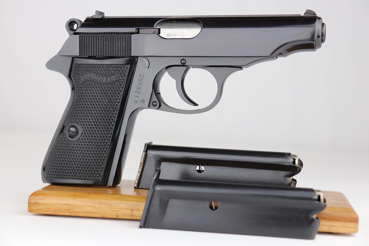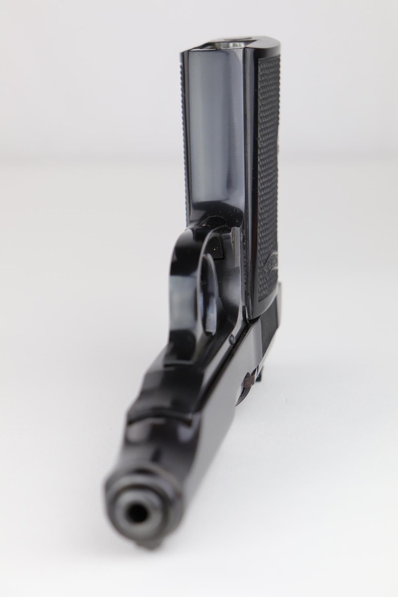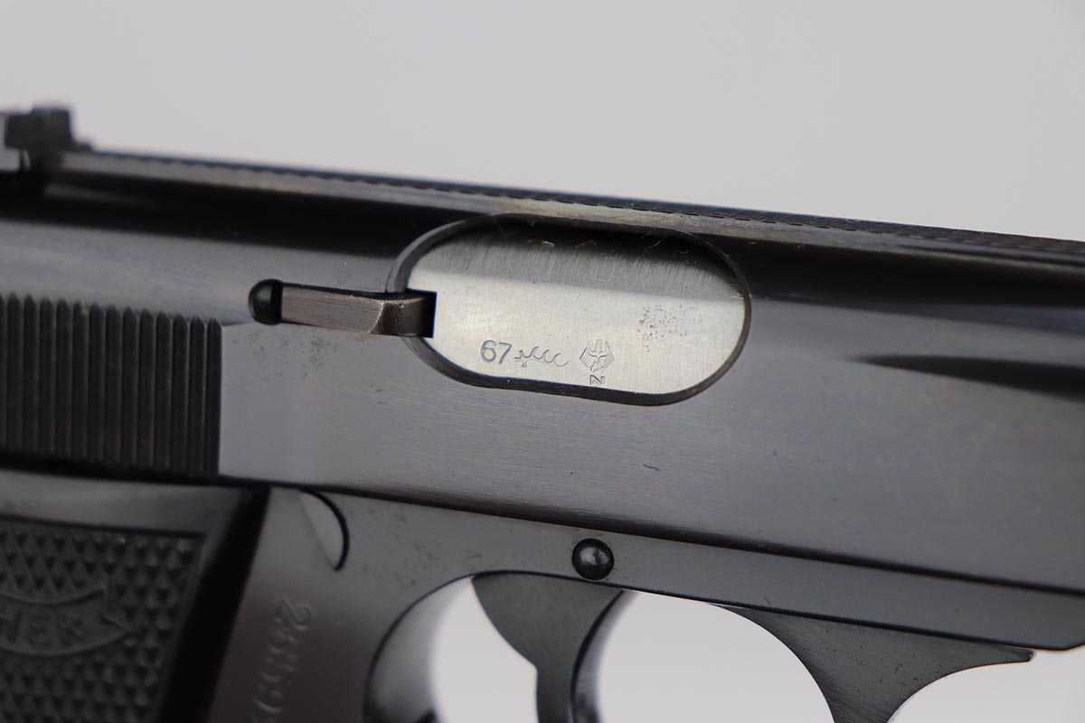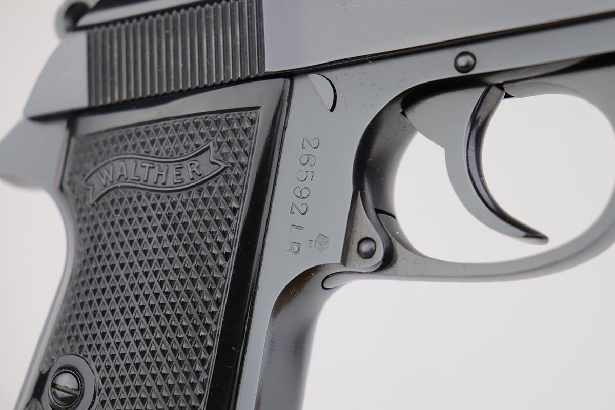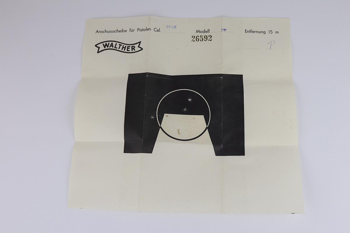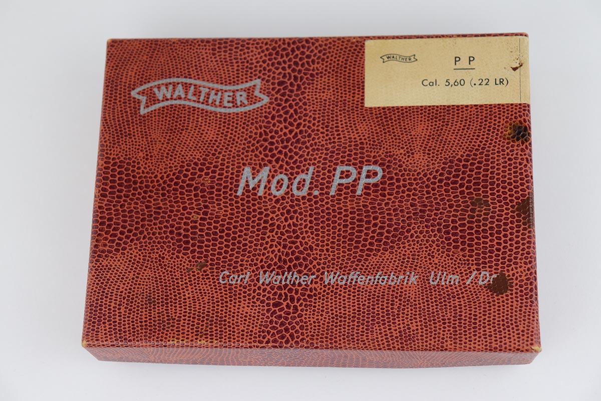 7/8/19 – This is a stunning example of an “as new in the box” Walther PP pistol, made in 1967, complete with its original serialized box, two magazines, serialized test target and a manual. The pistol is chambered for .22LR, and manufactured in 1967 so it is C&R eligible. The gun appears unfired after leaving the factory. The bluing is original and is as near 100% as you can get with a gun that is over 50 years old. Mint bore and grips. The box is equally nice. A mint, pre-1968 Walther PP in .22LR is a difficult pistol to find and this near new example would be impossible to upgrade.