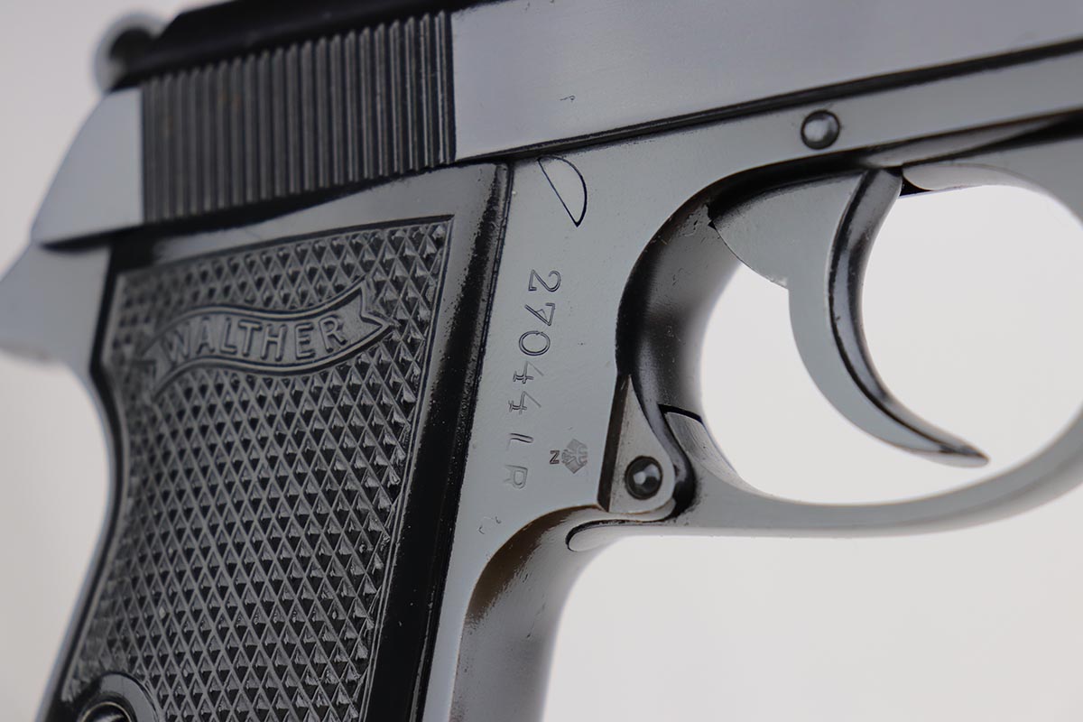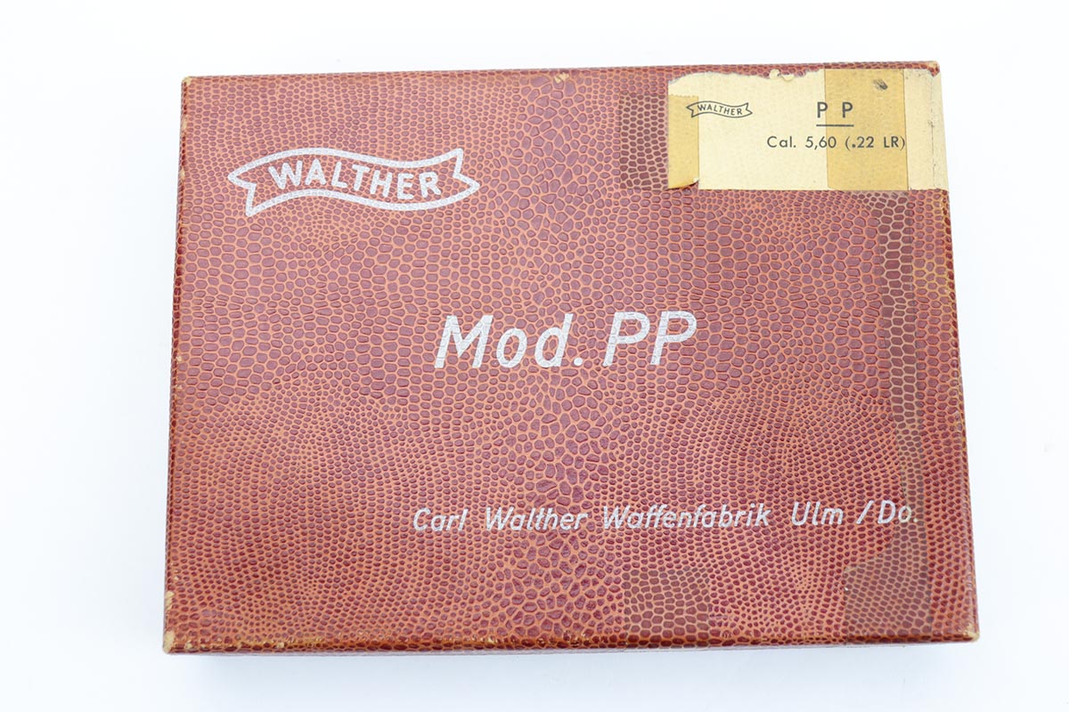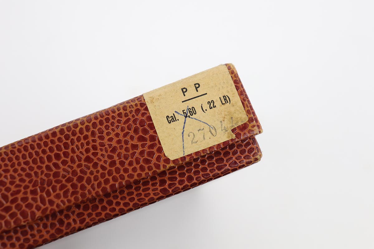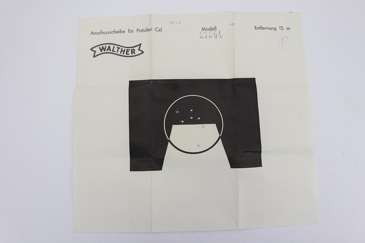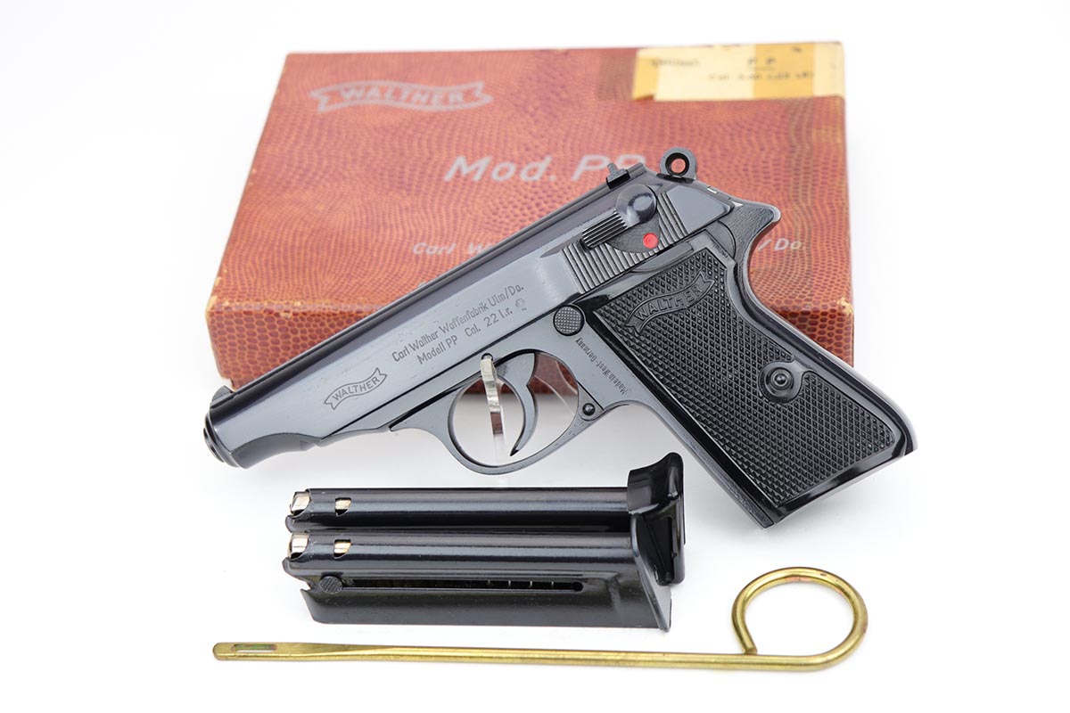 10/15/19 – This is a stunning example of an “as new in the box” Walther PP pistol, made in 1967, complete with its original serialized box, two magazines, cleaning rod, serialized test target and a manual. The pistol is chambered for .22LR, and manufactured in 1967 so it is C&R eligible. The gun appears nearly unfired after leaving the factory, with just a hint of thinning on the back of the frame. The bluing is original and rates at about 99%. Mint bore and grips.