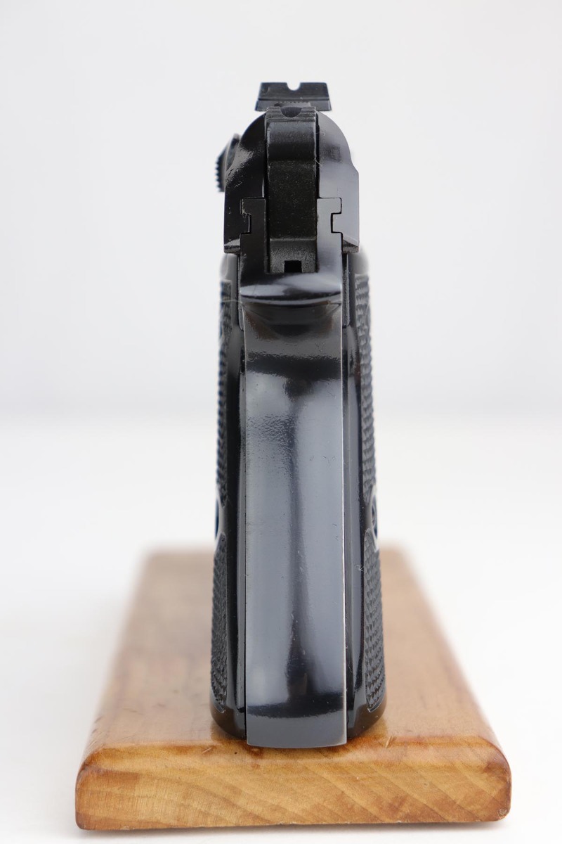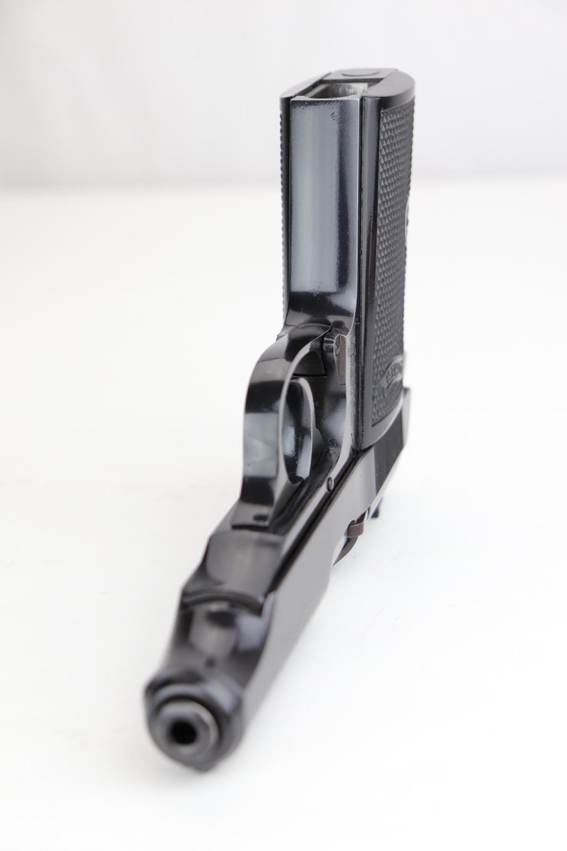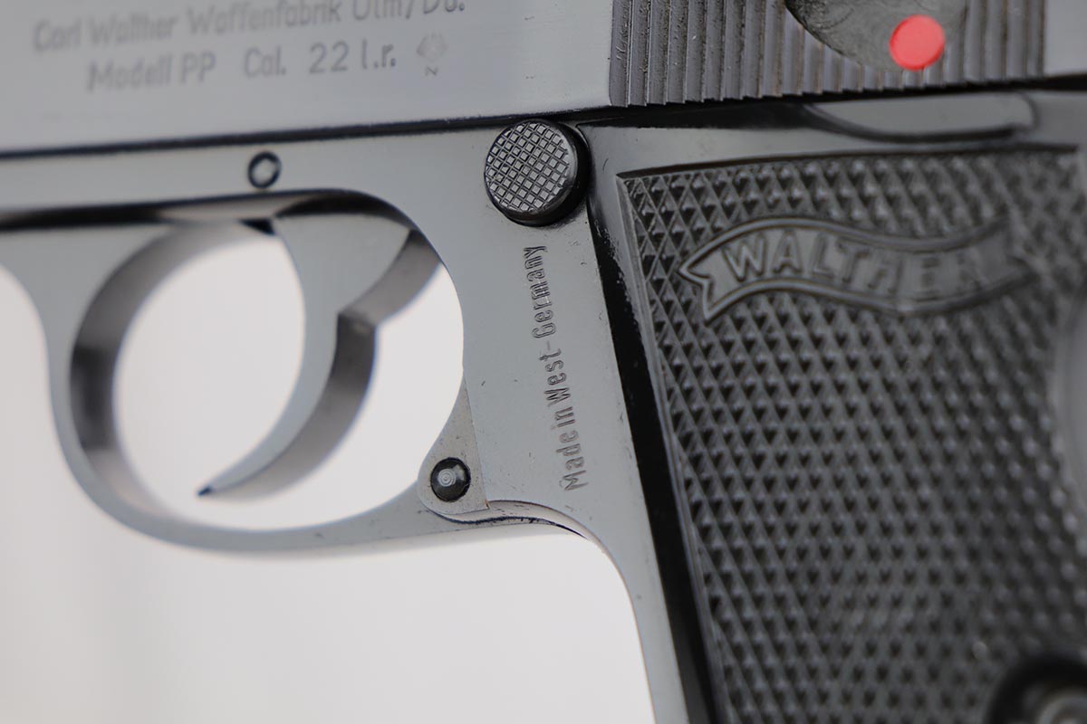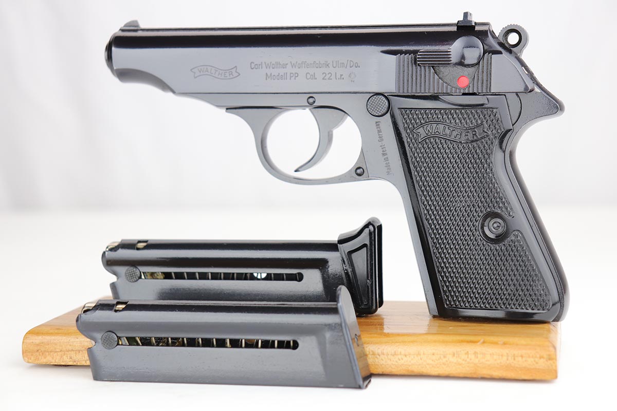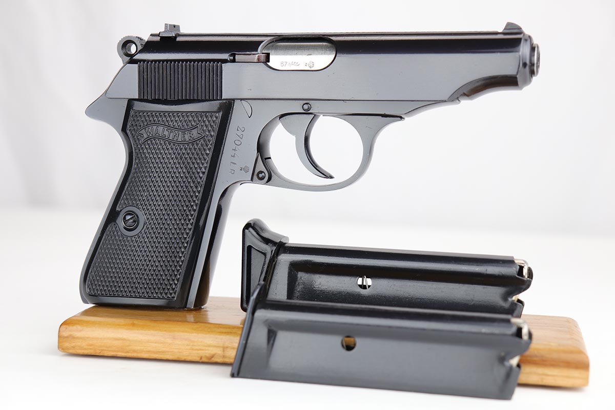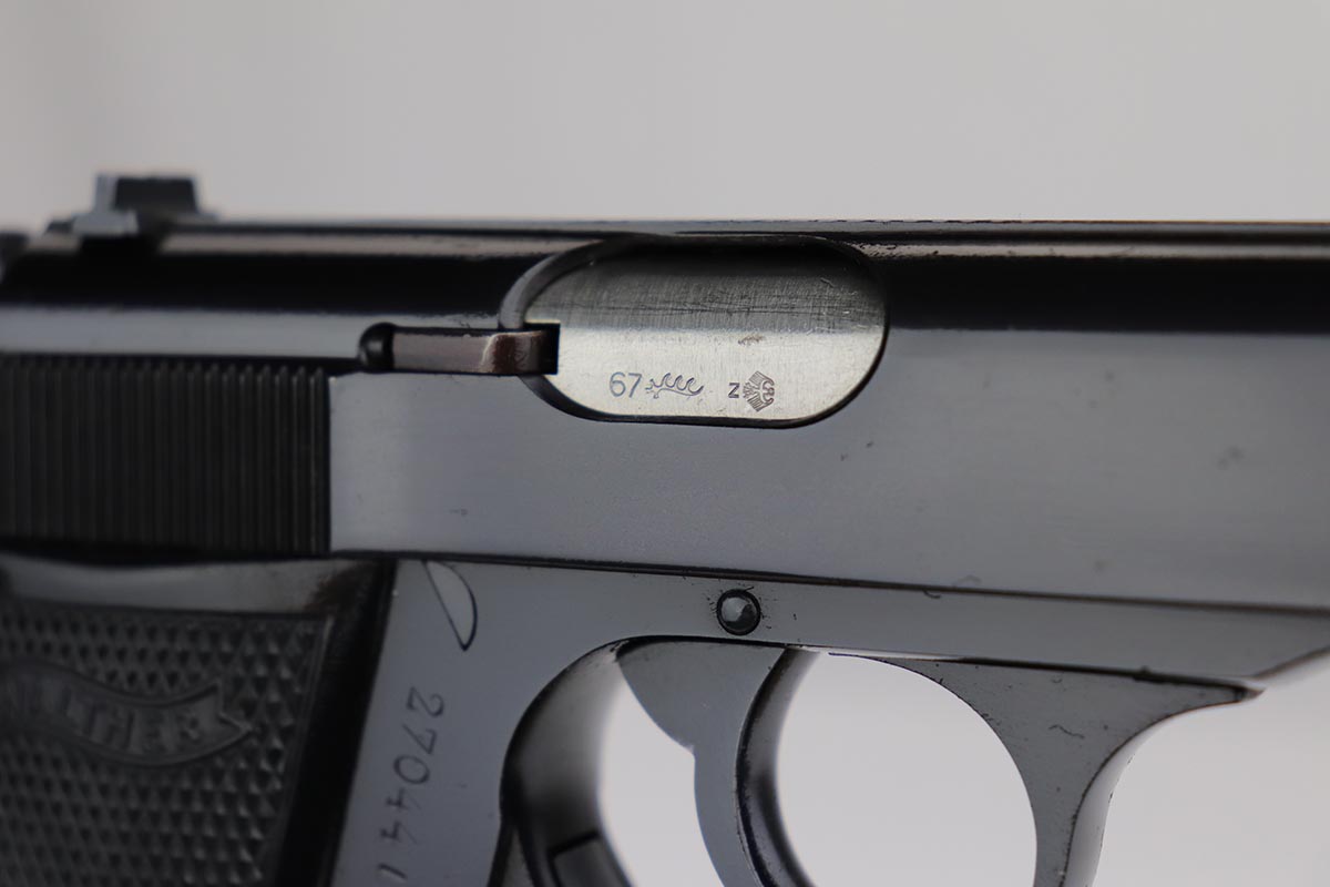 10/15/19 – This is a stunning example of an “as new in the box” Walther PP pistol, made in 1967, complete with its original serialized box, two magazines, cleaning rod, serialized test target and a manual. The pistol is chambered for .22LR, and manufactured in 1967 so it is C&R eligible. The gun appears nearly unfired after leaving the factory, with just a hint of thinning on the back of the frame. The bluing is original and rates at about 99%. Mint bore and grips.