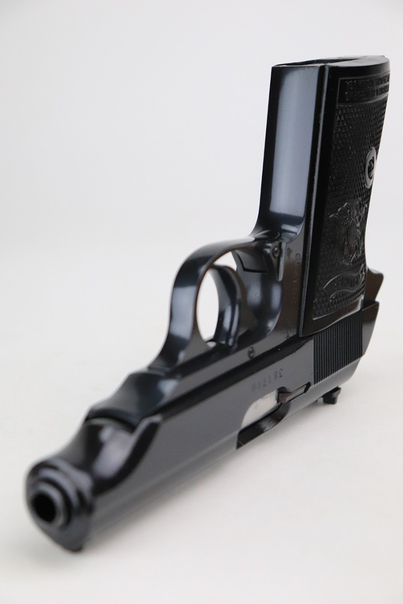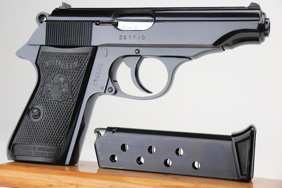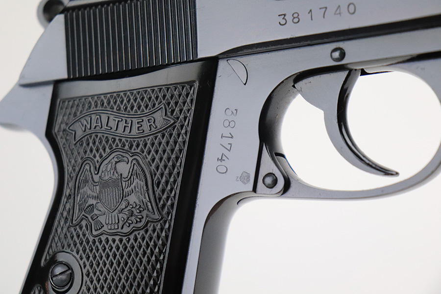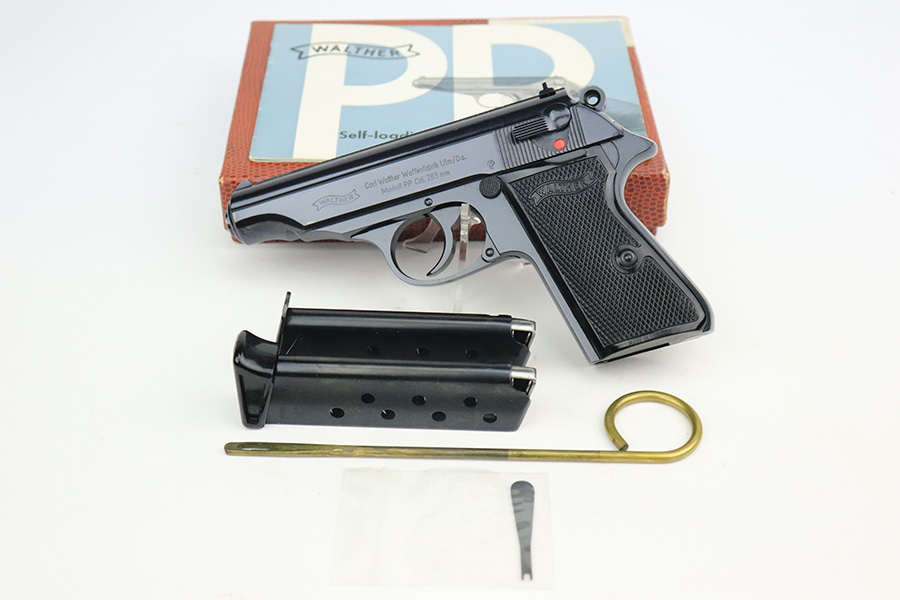 6/17/22 – This is a minty Walther PP in its original, matching box. The pistol was made in 1968 and has no import mark. It has just a slight hint on finish loss on the bottom edge of the back strap. The bore is mint and appears unfired. The listing includes the original manual, spare mag, cleaning rod and manual. The grips are mint, and they are the Interarms marked variant. C&R eligible.