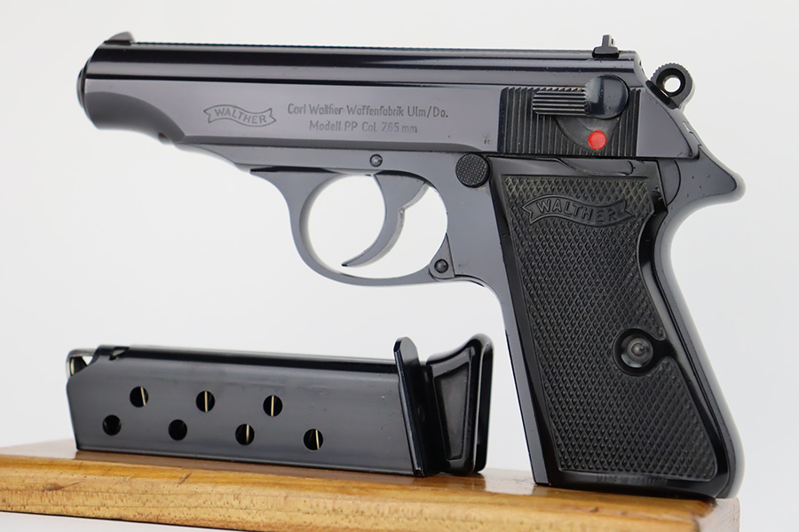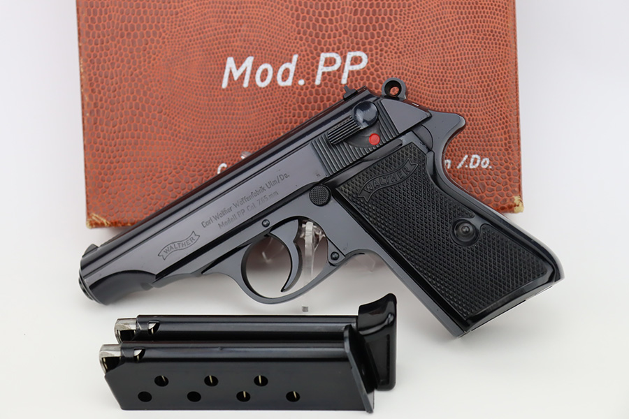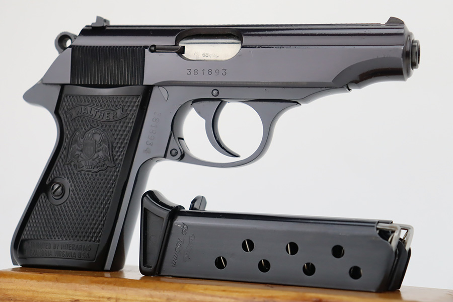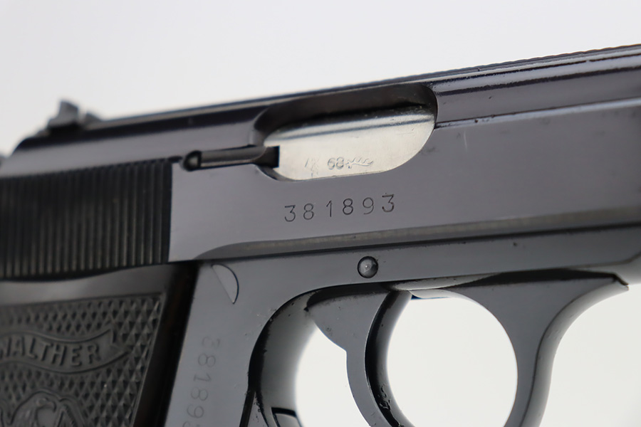 9/28/23 – This is a mint Walther PP from 1968 in its original, matching box. It also comes with the original test target,. manual and spare mag. The pistol has just the tiniest hint of muzzle wear but looks to be in nearly unused condition otherwise. Minty bore and grips. No import mark on the pistol but it does have the Interarms grips.