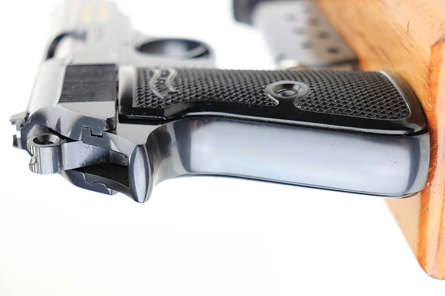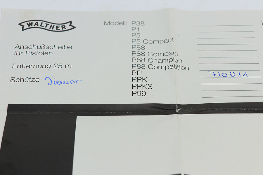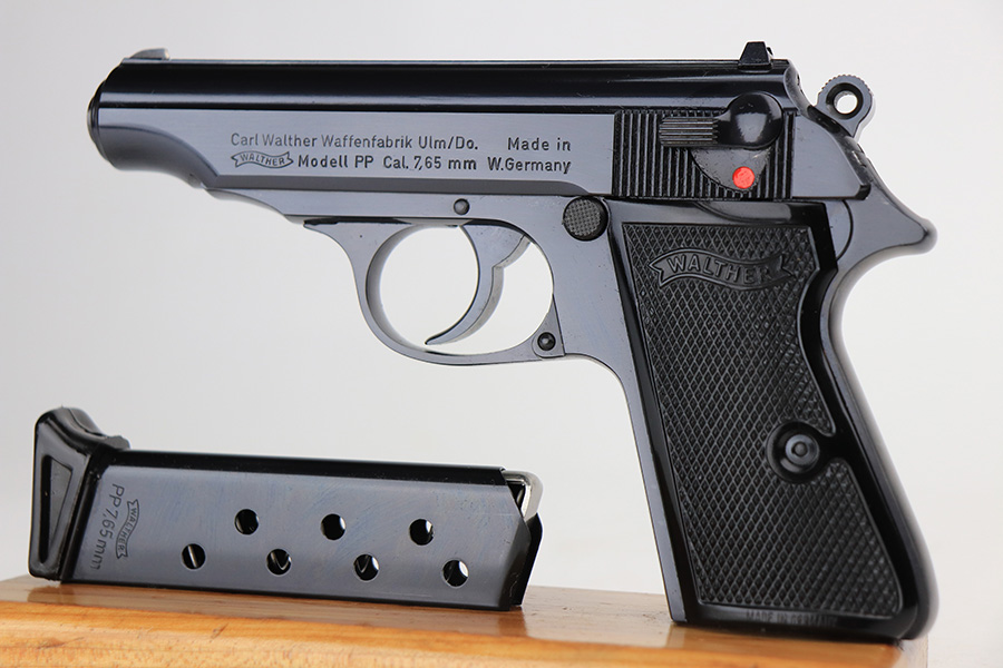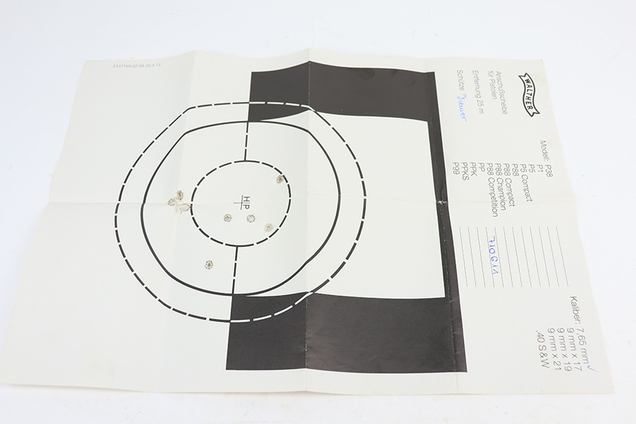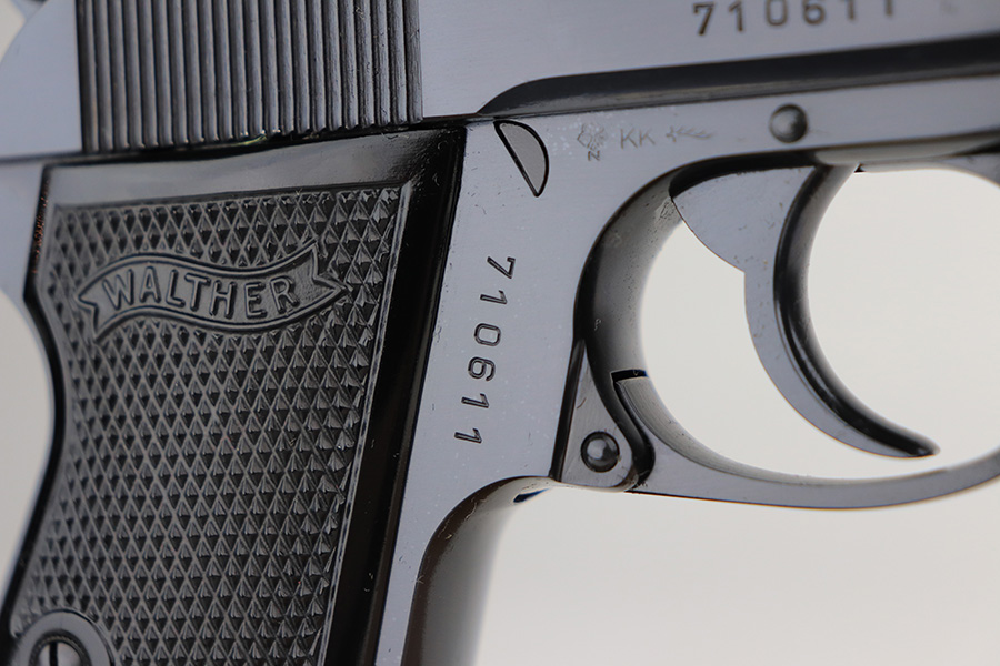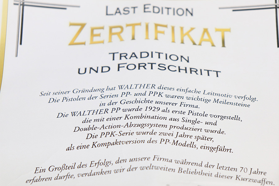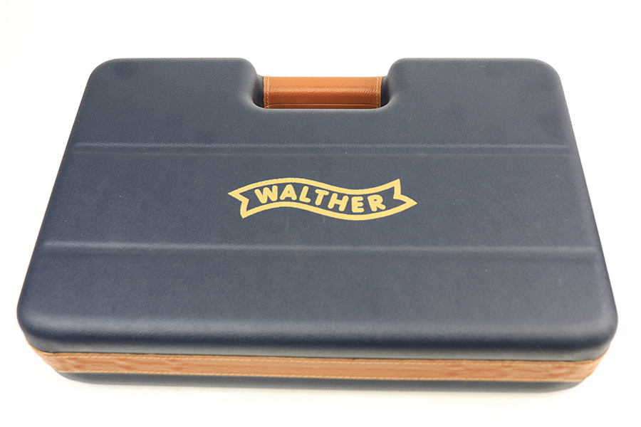 1/12/22 – Produced in 1999, as part of the final German production run in Ulm of the PP/PPK Walther pistols. This pistol has the beautiful Walther high polish blue finish and the legend “Last Edition/1929-1999” roll marked on the right side of the slide that has been highlighted with white fill. It has standard commercial markings with the post-war “eagle/ N” proofs. Ring hammer, smooth trigger and checkered black plastic grips with the walther logo on each side. In a blue faux-leather case with papers, authenticity certificate, cable lock, extra magazine and historical video of Carl Walther and the Walther factory. It’s in mint, unfired condition. Comes with the original test target and hard plastic case, as well.