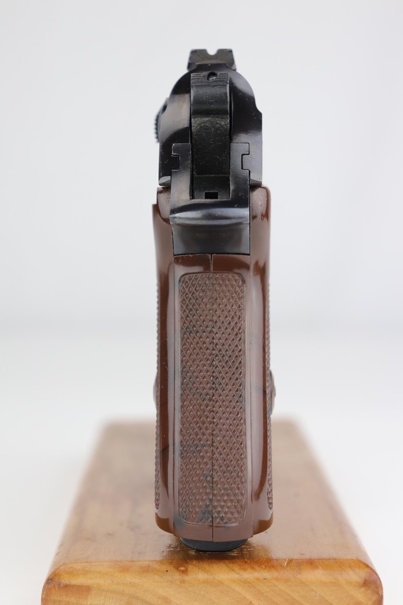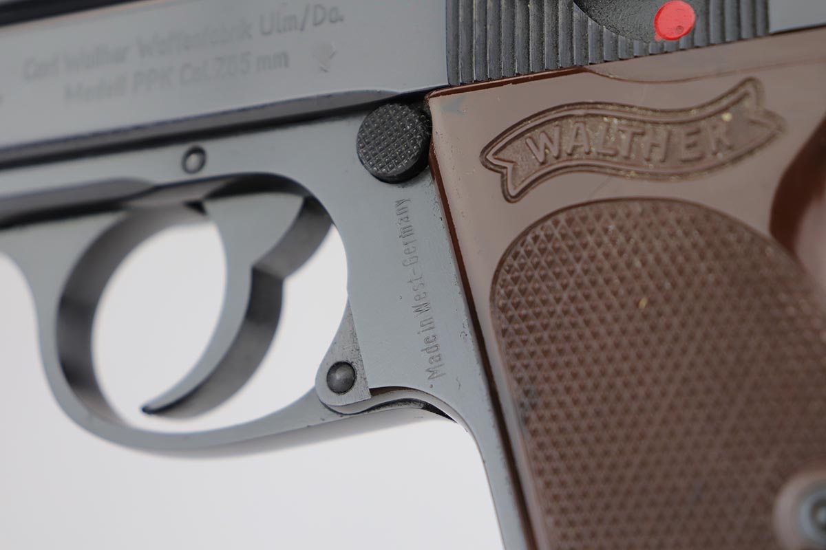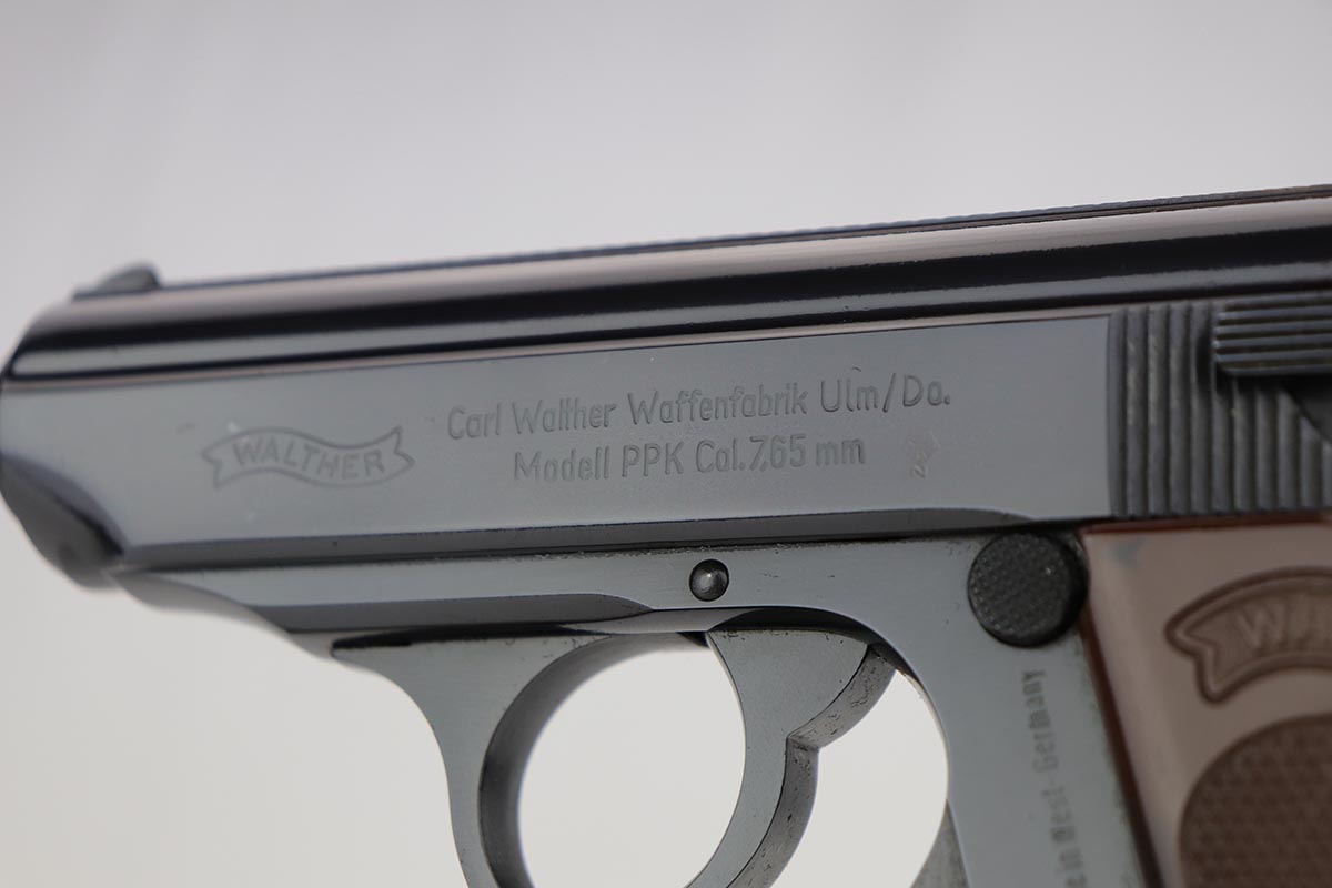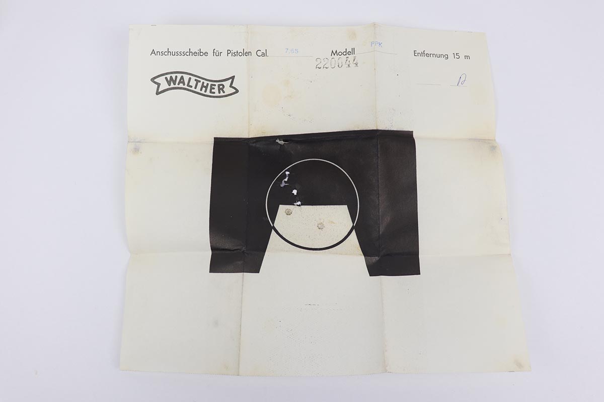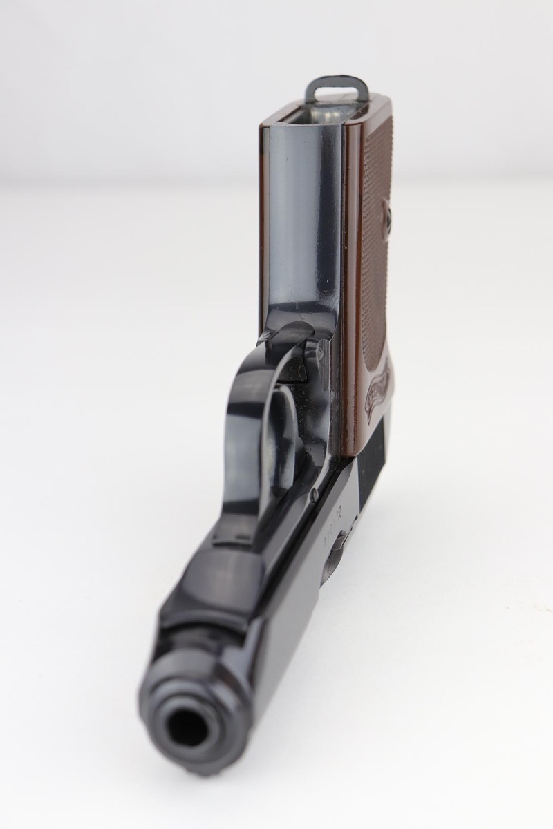 8/14/19 – This is a mint condition Walther PPK with the original matching box, matching test target, manual, cleaning rod, holster and three total magazines. The pistol was made in 1967 and is chambered for the less common 7.65mm. It is a West German production and is not import marked. The gun shows no finish loss and hardly any sign of use and cannot be upgraded. The box and test target have the matching serial of the pistol on them. The grouping includes two magazines with finger extensions, one brown and one black. It also has a third magazine with flat-bottom. The holster is also a postwar production. It’s unmarked but in near-new condition.