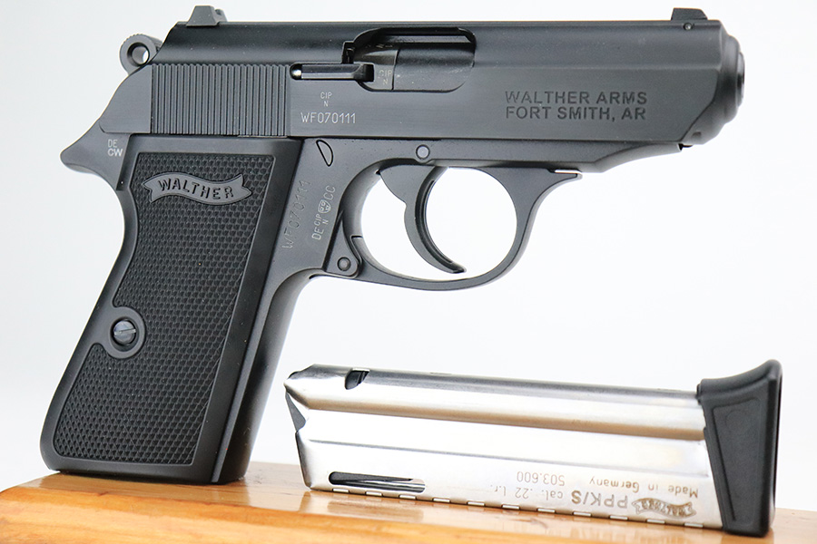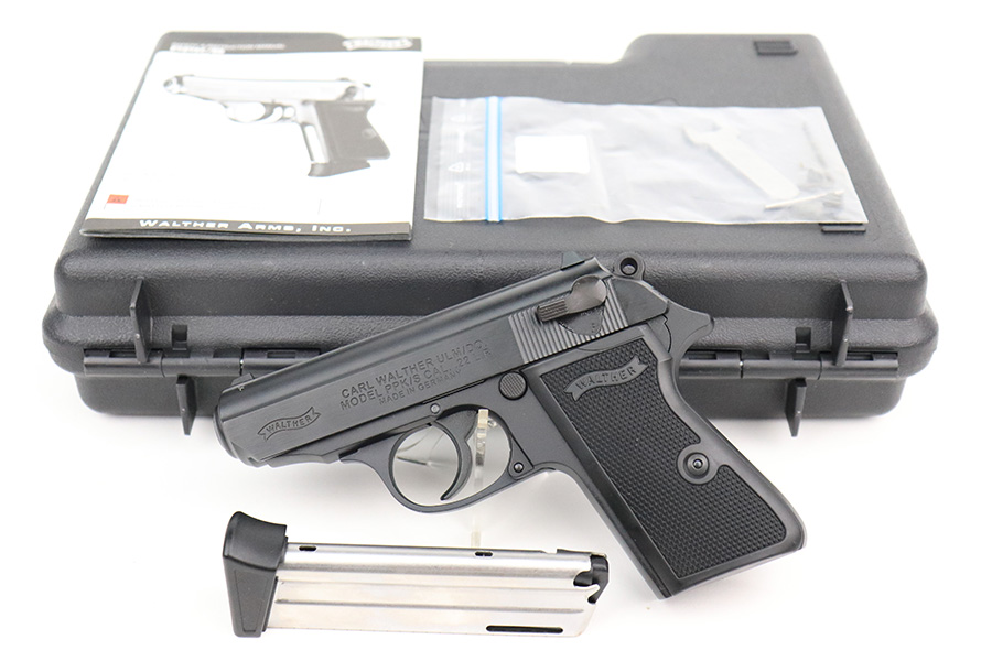 6/28/22 – This is a mint example of a Walther PPK/S with a matte black finish and chambered in .22 LR. The gun comes with its original matching-numbered hard case, owners manual, extra front sights, and one finger extension magazine. The gun is in like-new condition with no obvious signs of wear. Excellent black plastic grips. The bore is stone-mint.
