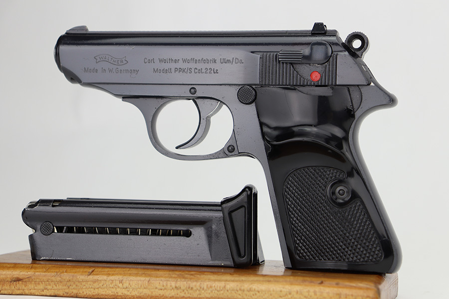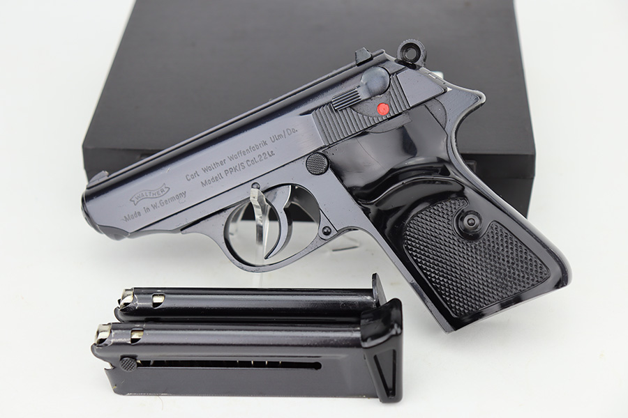 1/3/24 – This is a Walther PPK/S from 1978, chambered in .22 LR. It comes with its original matching-numbered box, owners manual, a finger extension magazine, and a flat-bottom magazine. It has retained virtually all of its original high polish finish with just some tiny freckling on the back strap. Fitted with excellent black plastic grips. Mint bore.