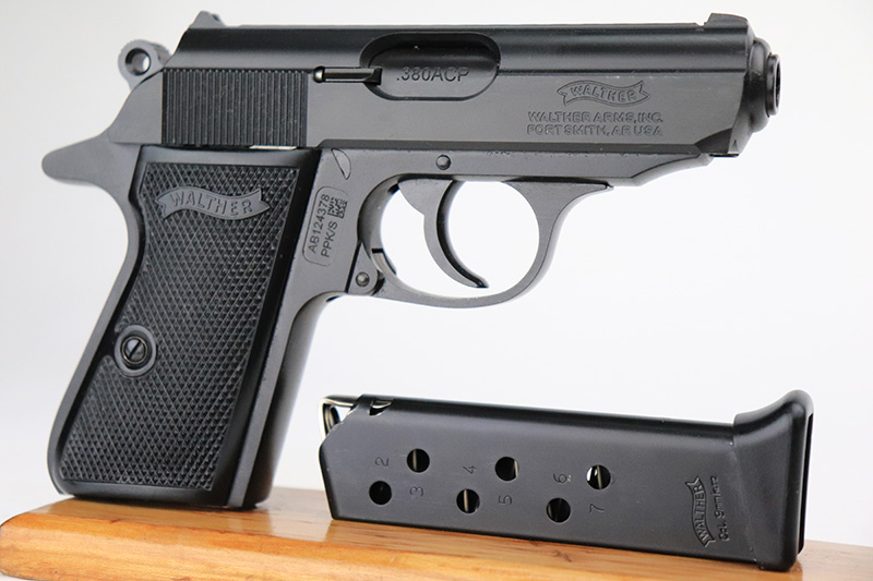 6/1/22 – This is a like-new example of a Walther PPK/S chambered in .380 with a matte black finish. The gun comes with its original matching-numbered hard case, owners manual, gun lock, and two magazines. The gun is in like-new condition – there is some discoloration along the slide from sitting in the plastic, but we were able to wipe that right off. Comes with excellent black plastic grips. The bore is near-mint.