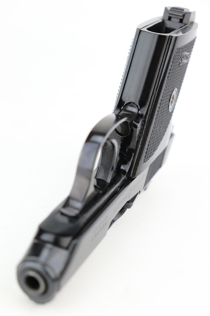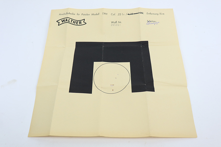 6/14/23 – This is a like-new example of a Walther Model TPH pistol, manufactured in 1980. It is all matching, fully functional, and has the proper West German proofs. Interarms import marked on the right side of the frame. It comes with its original matching-numbered box, matching-numbered test target, owners manual, sales papers, cleaning rod, and one magazine. The gun itself is in like-new condition with no obvious signs of wear or use. Fitted with excellent black plastic grips. Stone-mint bore. FFL required.