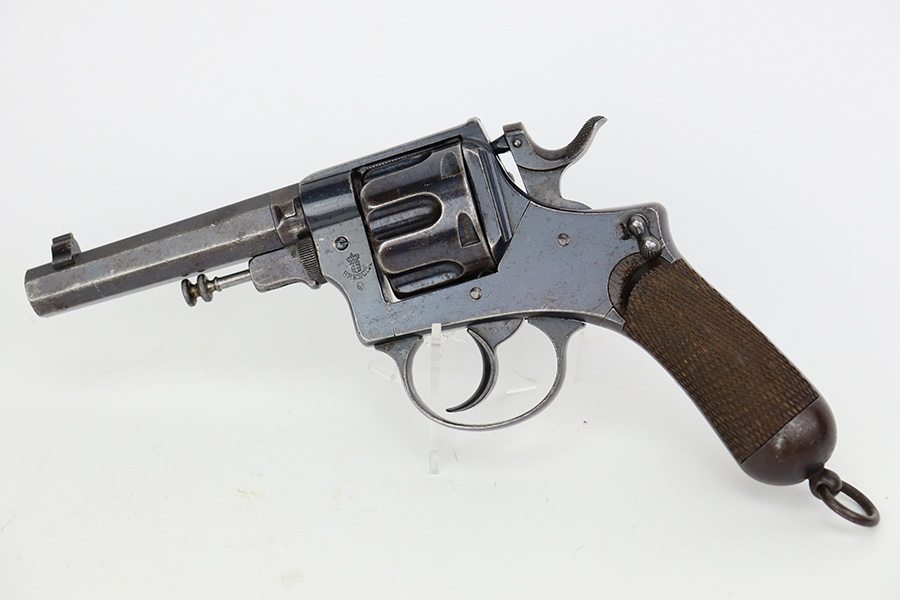 7/13/23 – Scarce first variation of the Tipo B Officer’s Model of the Bodeo M1889 revolver made by the Italian arsenals at the Royal Arms Factory at Brescia (R. Fabbrica D’Armi di Brescia). The Royal Arms Factory at Brescia only manufactured a total of 8990 Tipo B Officer’s model revolvers between 1891-1893, after which production was moved to Glisenti Brescia in 1894. Based on serial number records as reported in Ruggero Pettinelli’s Bodeo 1889, Il Revolver Degli Italiani (see attached), this revolver with serial number 8607 was likely made in 1893, one of the last manufactured at Brescia.