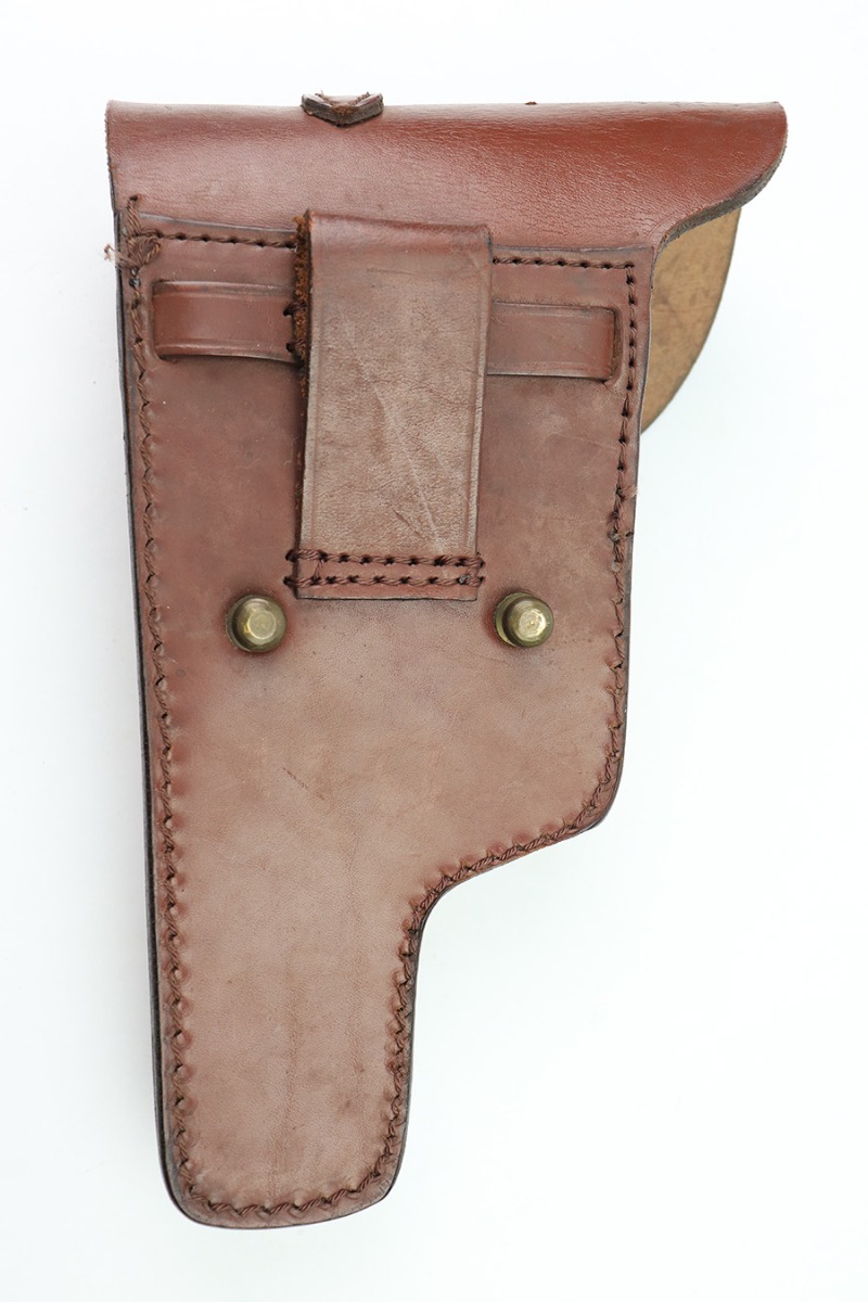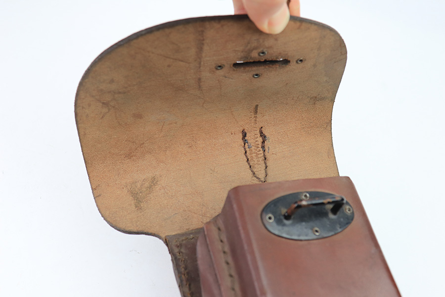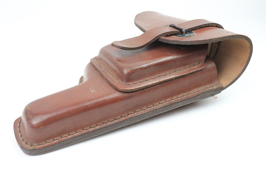 1/4/23 – This is an original Argentine M1927 Ballester Molina pistol holster. The holster is in excellent, unissued condition with very clean and firm leather. All original stitching intact as well. The exterior leather has some surface dust and mild discoloration from aging but no notable issues.