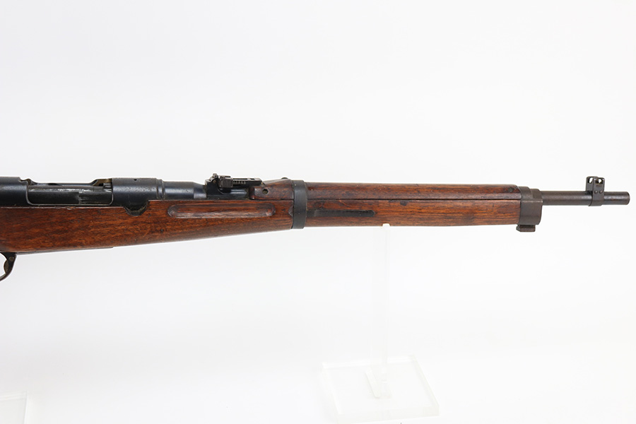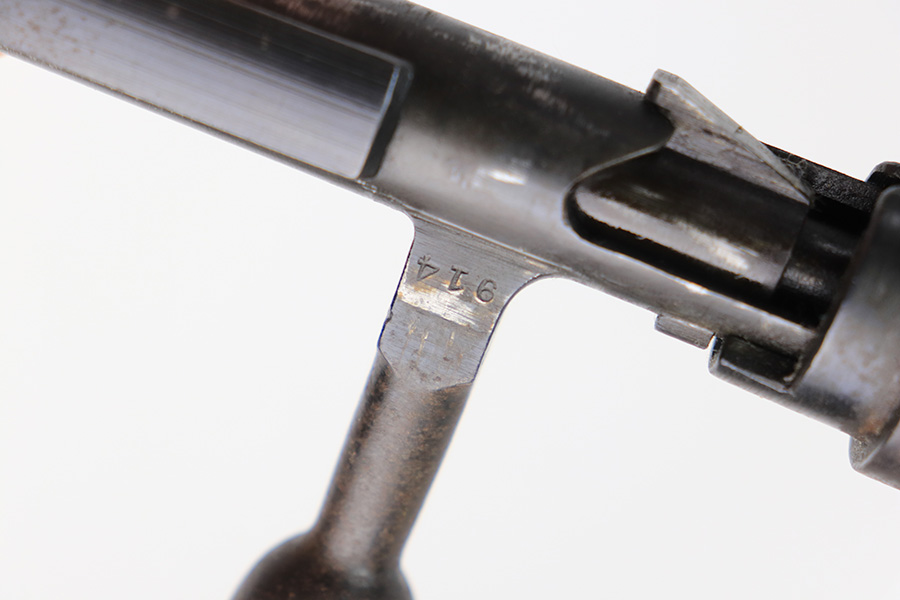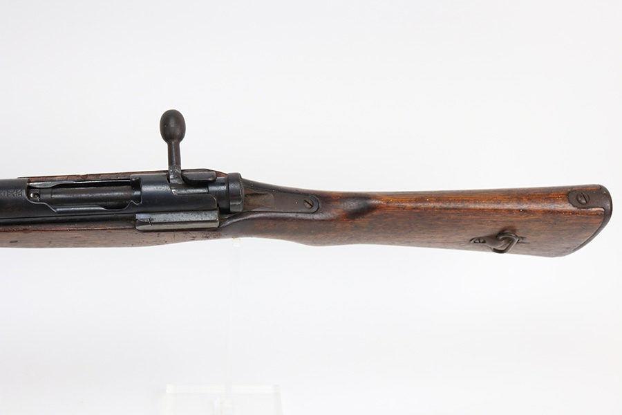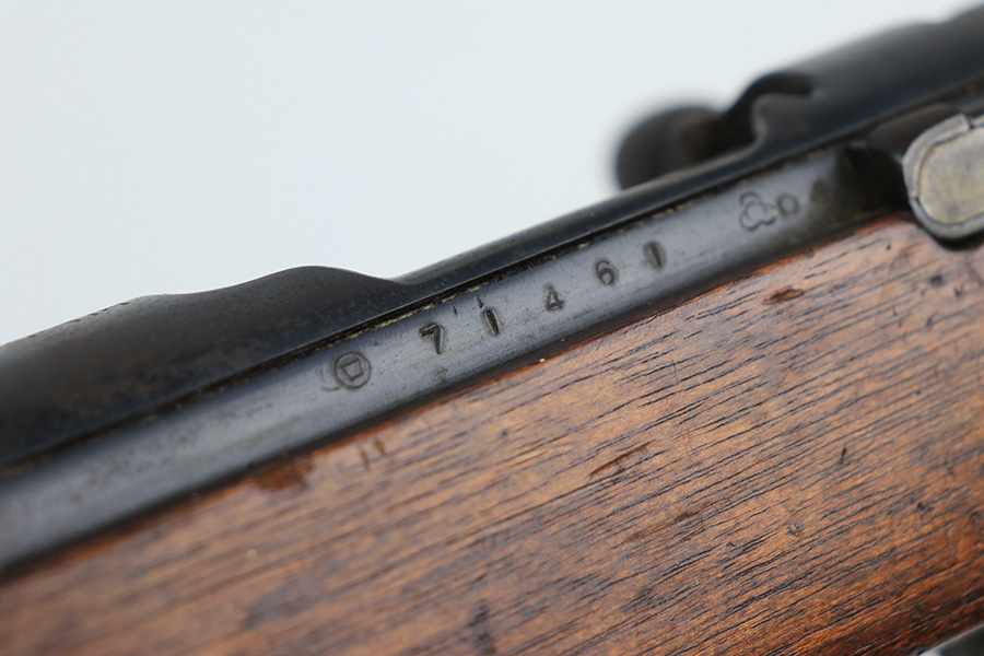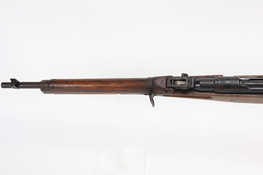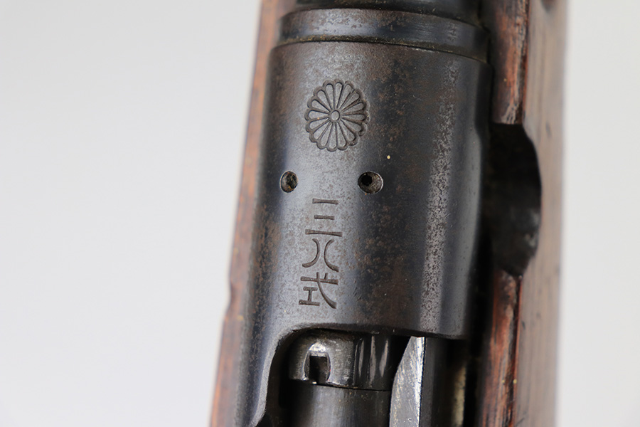 1/7/22 – This is a nice example of an Arisaka Type 38 carbine issued to the Japanese military during WW2. The gun is mismatched, but it does have a fully intact Imperial mum stamp on the receiver. There is not much actual finish loss on the metal parts, but they are generally covered in light brown patina and some light spotty oxidation. The stock has minor dings and handling marks but overall in very nice condition. There are some tiny dots of what looks like white mold spores along the top edge of the butt stock. The bore is mint.