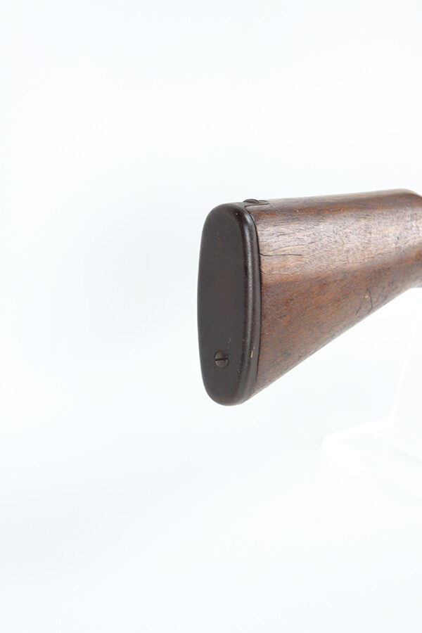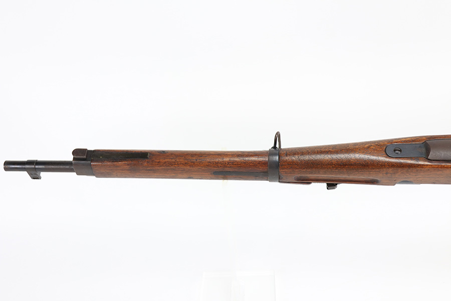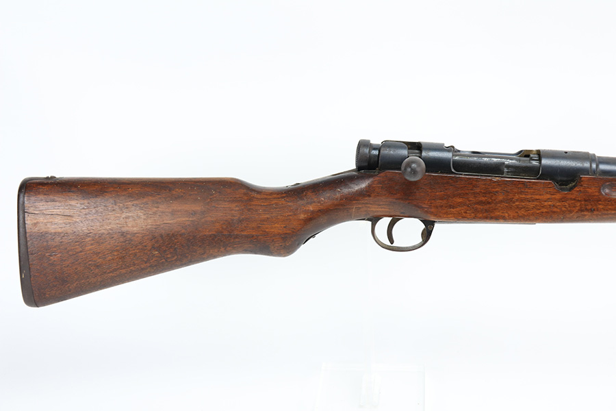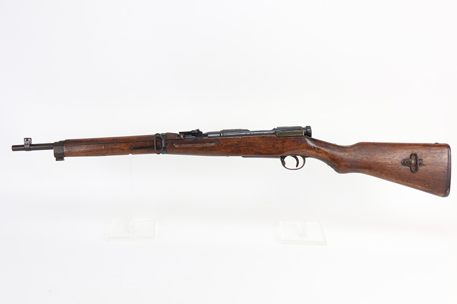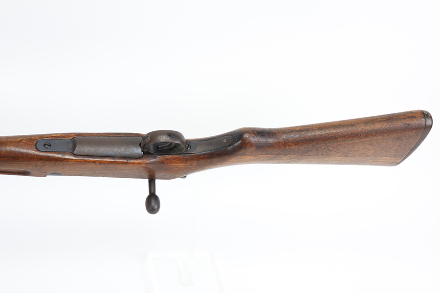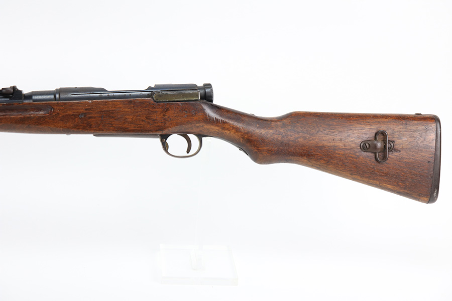 1/7/22 – This is a nice example of an Arisaka Type 38 carbine issued to the Japanese military during WW2. The gun is mismatched, but it does have a fully intact Imperial mum stamp on the receiver. There is not much actual finish loss on the metal parts, but they are generally covered in light brown patina and some light spotty oxidation. The stock has minor dings and handling marks but overall in very nice condition. There are some tiny dots of what looks like white mold spores along the top edge of the butt stock. The bore is mint.