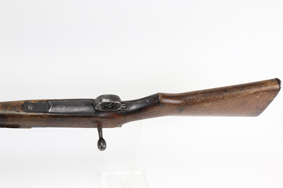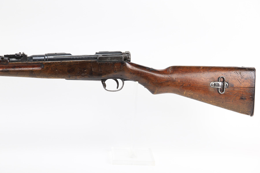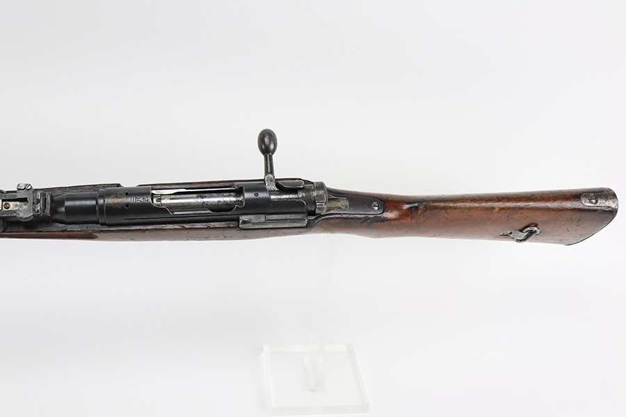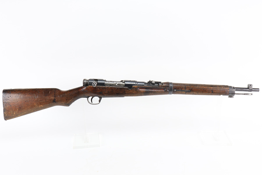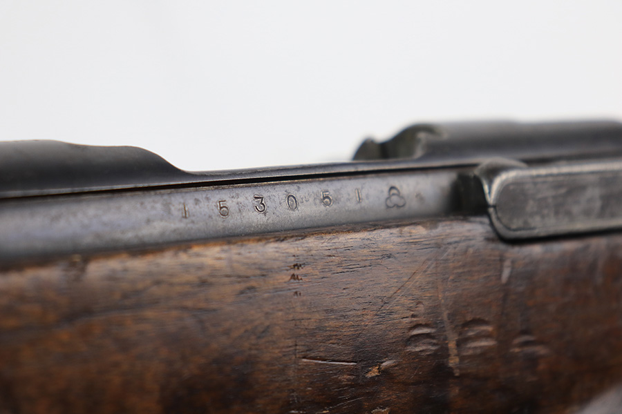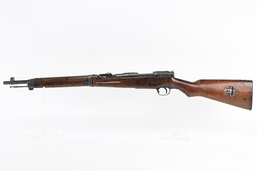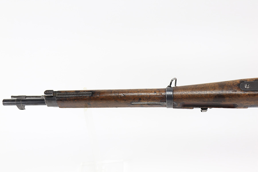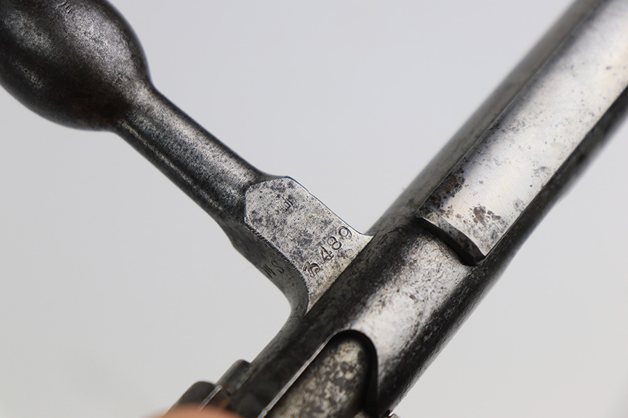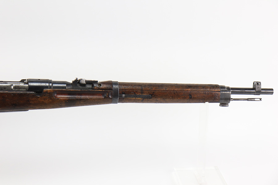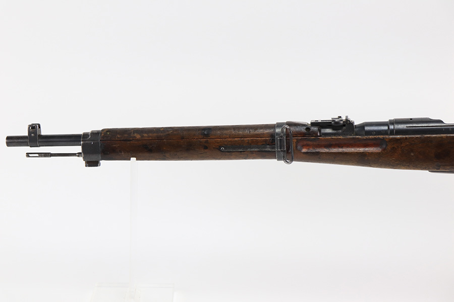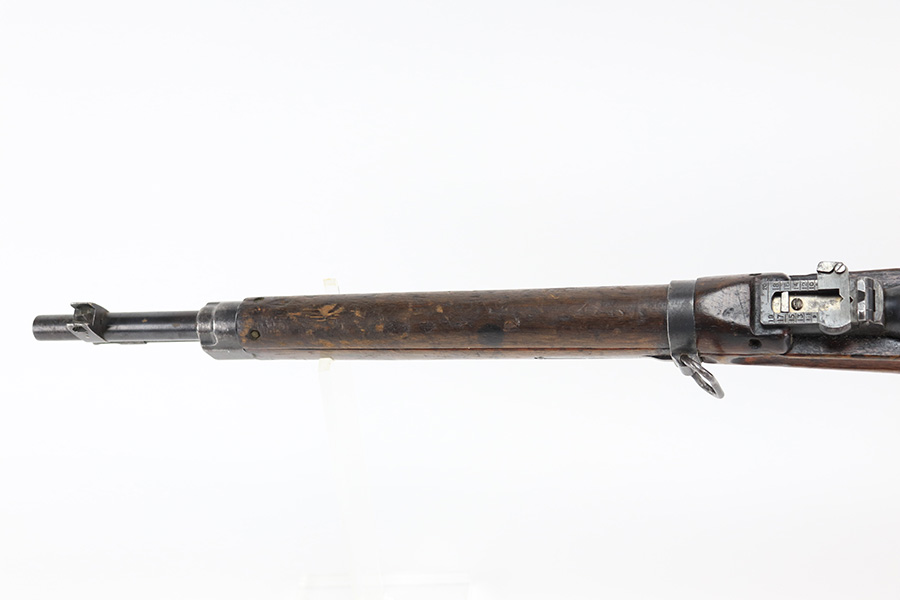3/25/22 – This is an Arisaka Type 38 Carbine issued to the Japanese military during WW2. It is mostly mismatched, and the original Imperial mum stamp on the receiver has been defaced. No import marks. Comes with an original cleaning rod. Overall, the gun is in fair condition. There isn’t a ton of actual finish loss on the metal parts (except for some thinning on the floor plate/trigger group), but there are areas of heavy oxidation on the front barrel band spring, floor plate/trigger group, and on the butt plate. There are no cracks in the wood stock, but there are noticeable dings, dents, and scratches throughout. There are some more noticeable gouges on the handguard and on the butt stock just behind the action. The bore is very nice with good rifling.