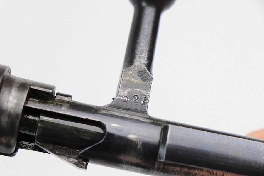 11/23/21- This is an all matching and original Arisaka Type 38 carbine with full mum intact. Matching numbers include the receiver, bayonet lug, bolt assembly, firing pin and even the original dust cover! The interior / underside of the magazine floor plate is mis-matching. The finish is original throughout and shows a little thinning in a few areas, and some oxidation on the receiver. Stock shows its age and has some dings but no cracks. Bore is terrific and shiny. Includes an original leather sling, as well.
