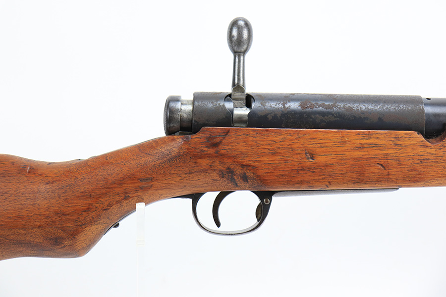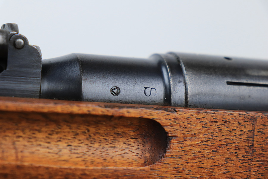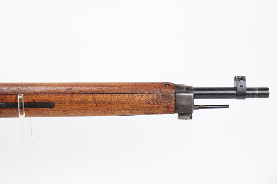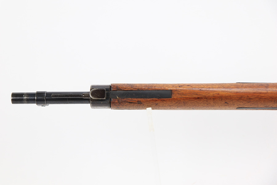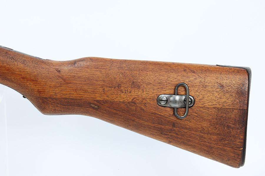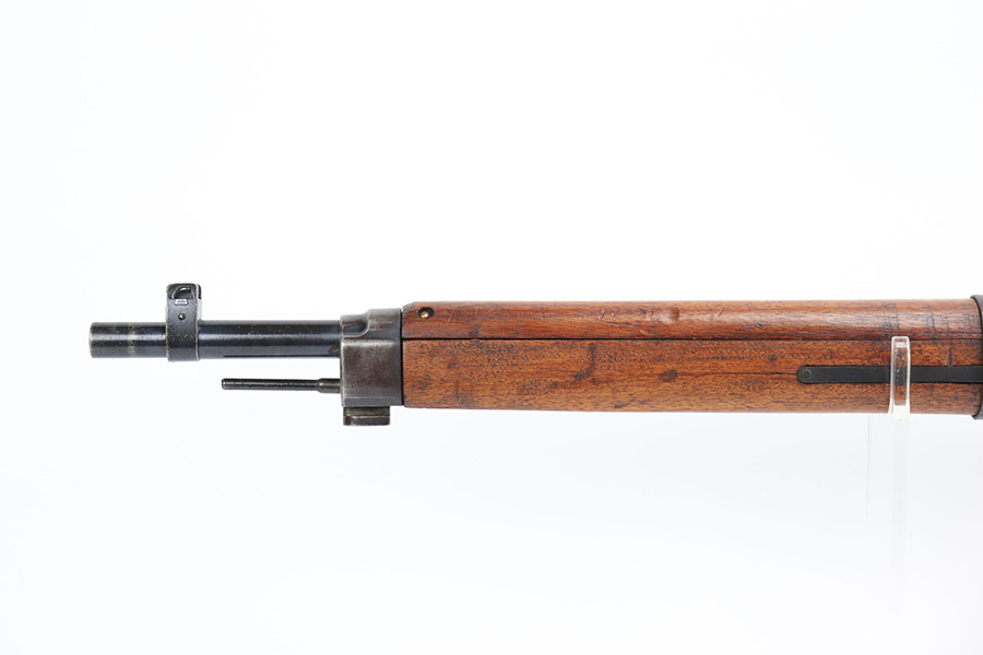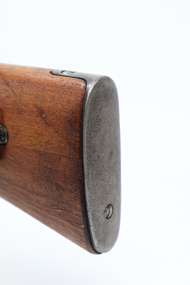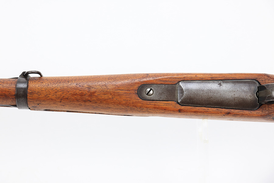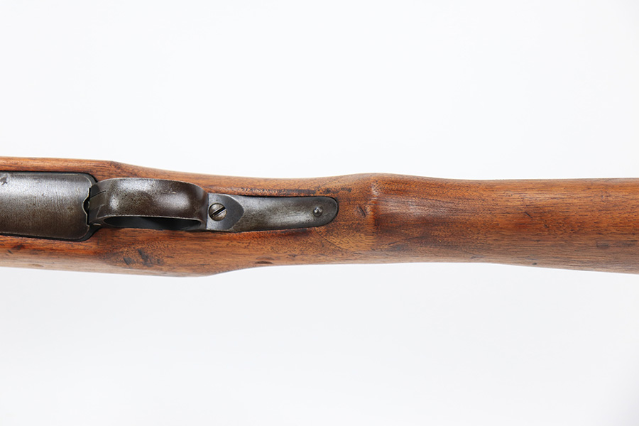 5/10/23 – This is an Arisaka Type 38 Carbine issued to the Japanese military during WW2. It comes with an original bayonet with scabbard (not matching) and an original dust cover (also not matching). These items come in an original wood shipping crate, shipped home from the Pacific Theatre by an American GI, John Barr, to his mother in Elizabethtown, PA. The bolt is mismatched, and the Imperial mum stamp on the receiver has been defacing – still mostly visible. The metal parts on the gun have retained roughly 75% with the majority of the finish loss being on the floor plate / trigger guard and around the front barrel band. Excellent wood stock with minor dings and bruises – may have been lightly sanded. Excellent bore.