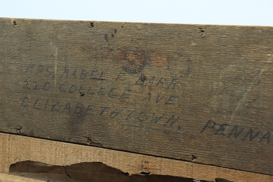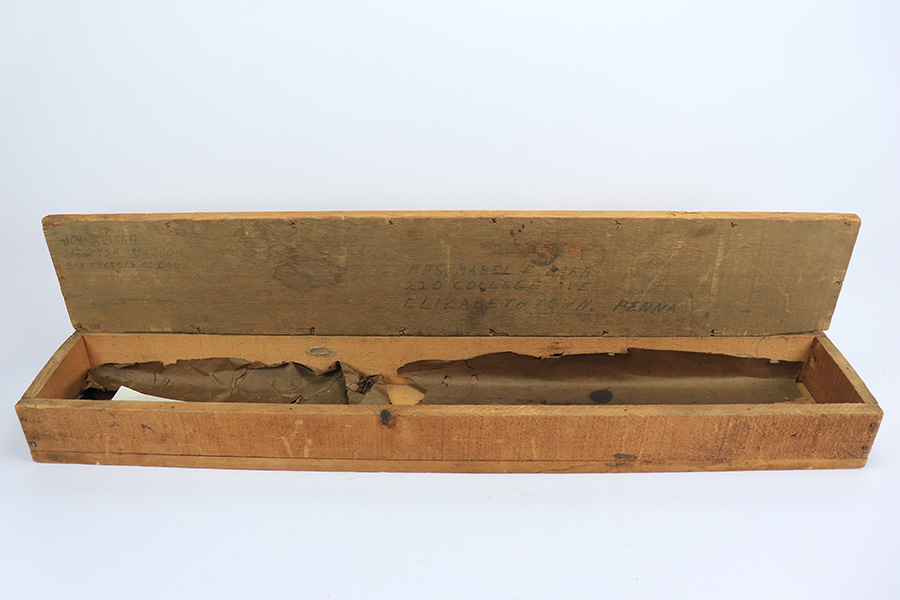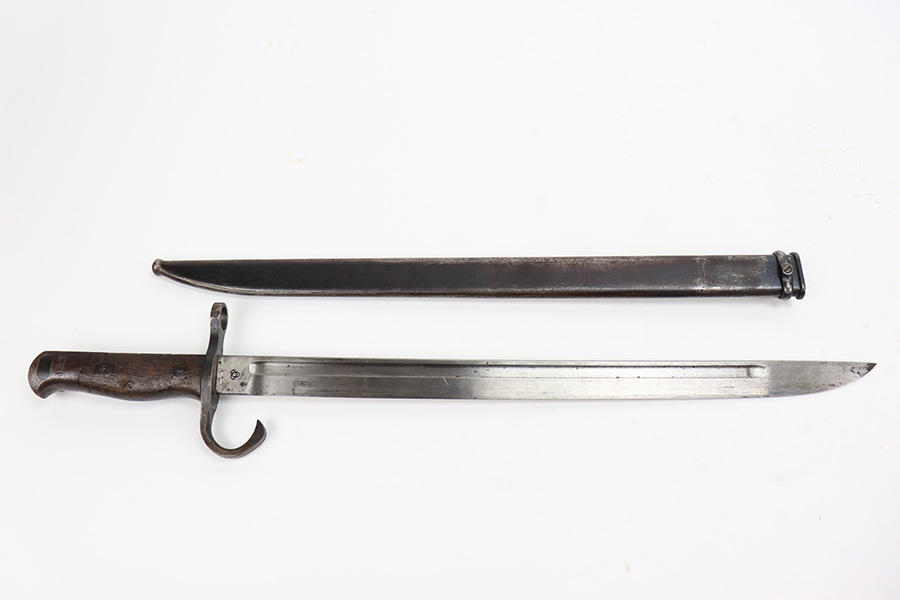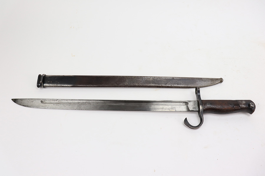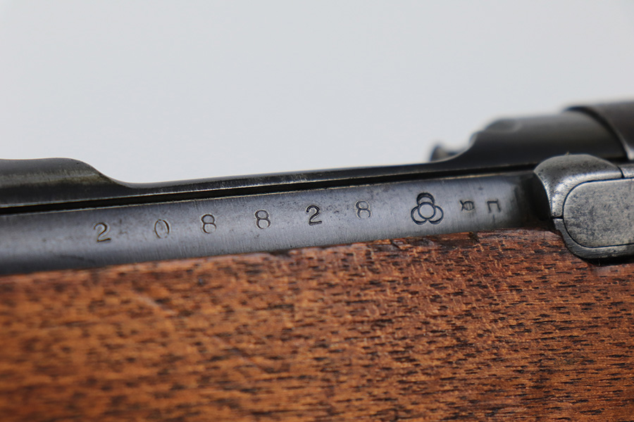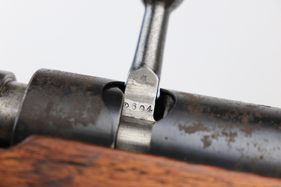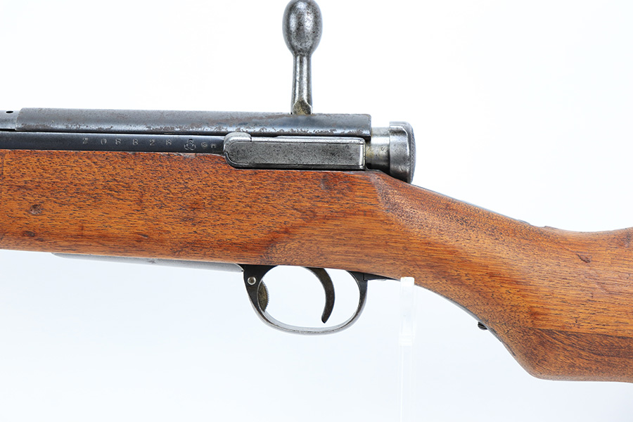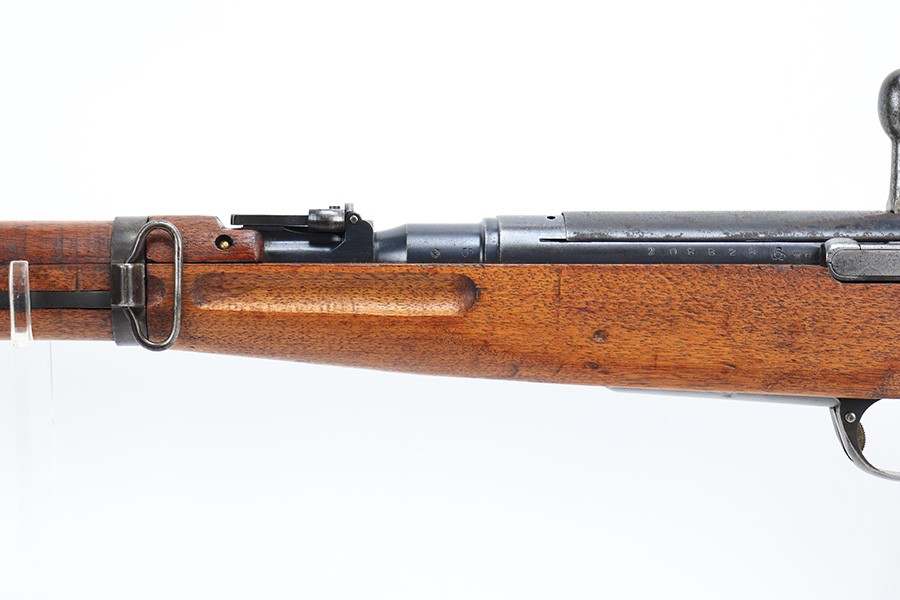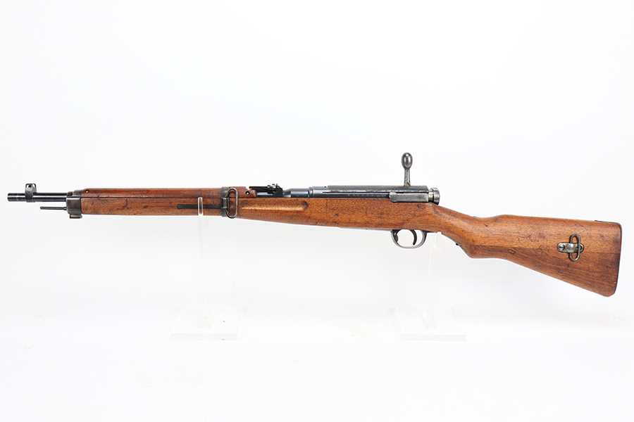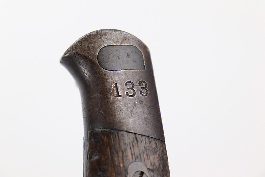 5/10/23 – This is an Arisaka Type 38 Carbine issued to the Japanese military during WW2. It comes with an original bayonet with scabbard (not matching) and an original dust cover (also not matching). These items come in an original wood shipping crate, shipped home from the Pacific Theatre by an American GI, John Barr, to his mother in Elizabethtown, PA. The bolt is mismatched, and the Imperial mum stamp on the receiver has been defacing – still mostly visible. The metal parts on the gun have retained roughly 75% with the majority of the finish loss being on the floor plate / trigger guard and around the front barrel band. Excellent wood stock with minor dings and bruises – may have been lightly sanded. Excellent bore.