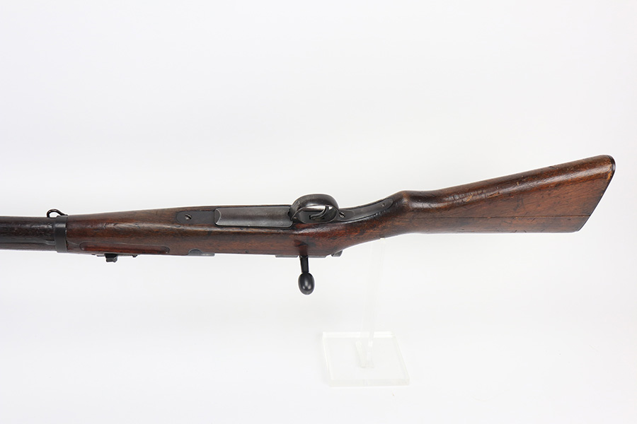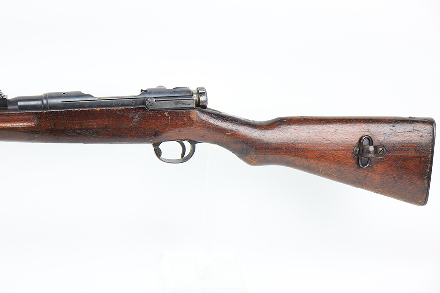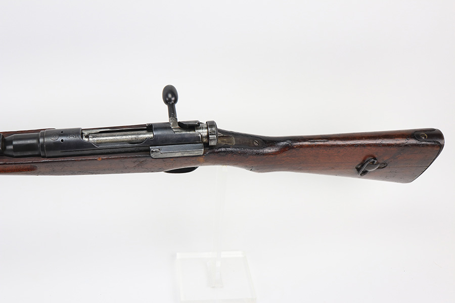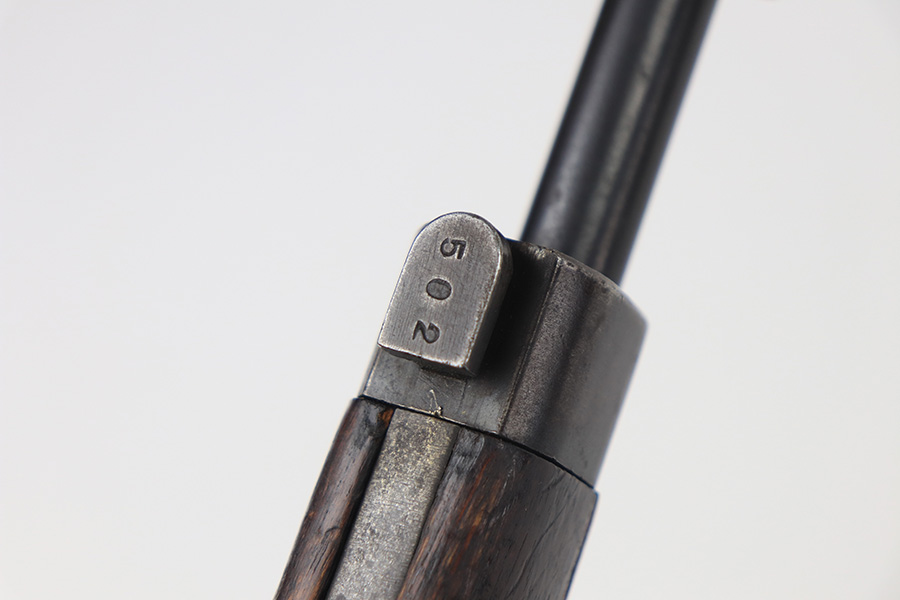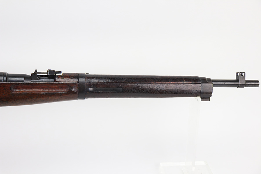 1/19/22 – This is a very nice example of an Arisaka Type 38 Cavalry Carbine issued to the Japanese military during WW2. The gun is mostly matching, but the bolt release latch and rear sight are mismatched. This one has a completely intact Imperial mum stamp on the receiver. Overall, it is in very nice condition. Generally, there is very minor wear around the high edges and around the muzzle. There is a layer of minor brown patina under the finish of most of the parts, probably most apparent on the floor plate and trigger group. The stock is nice, but there are minor dings, dents, and scratches throughout. The bore has good rifling, but there is minor frosting in the grooves.