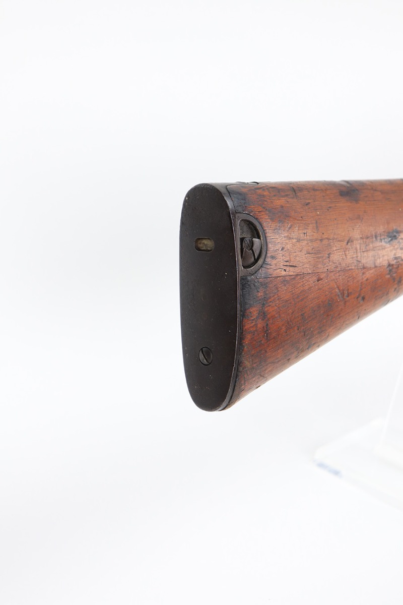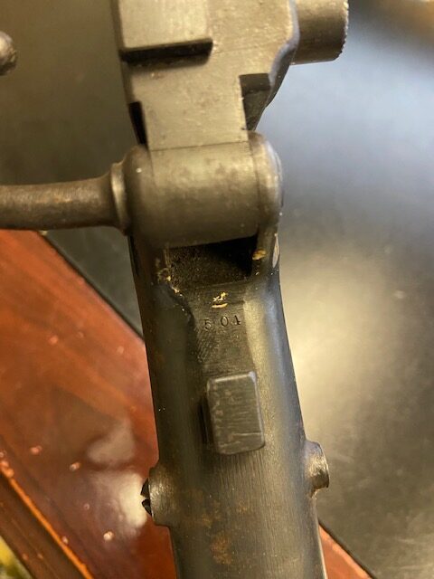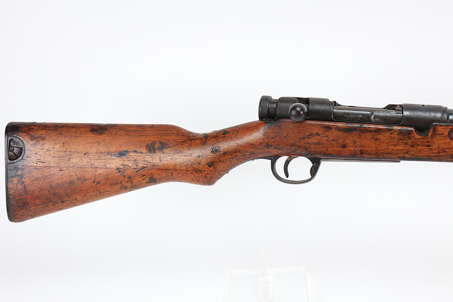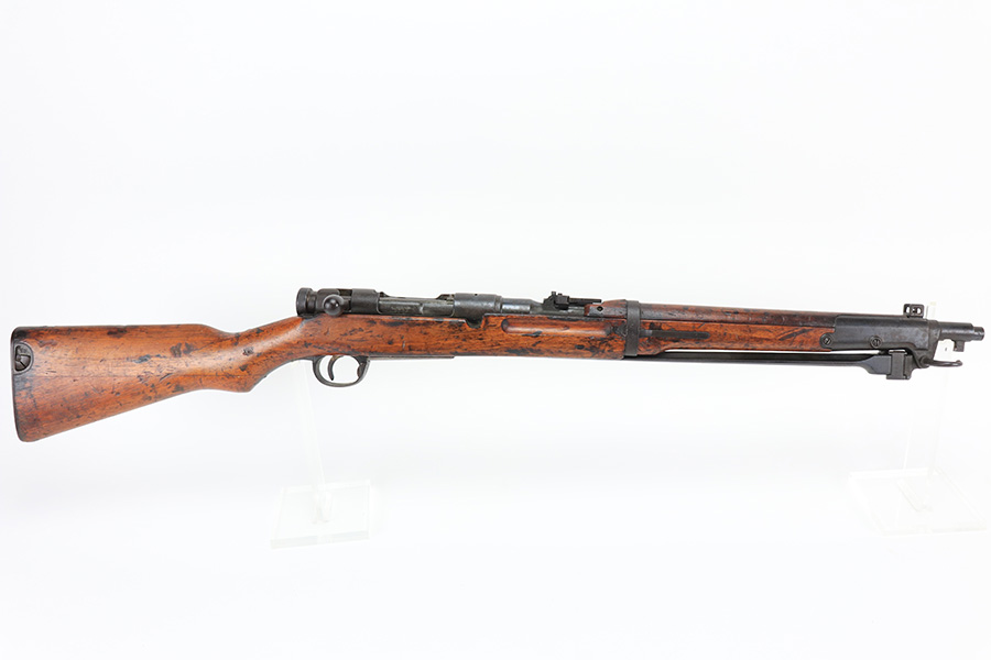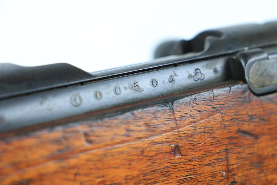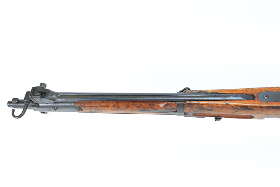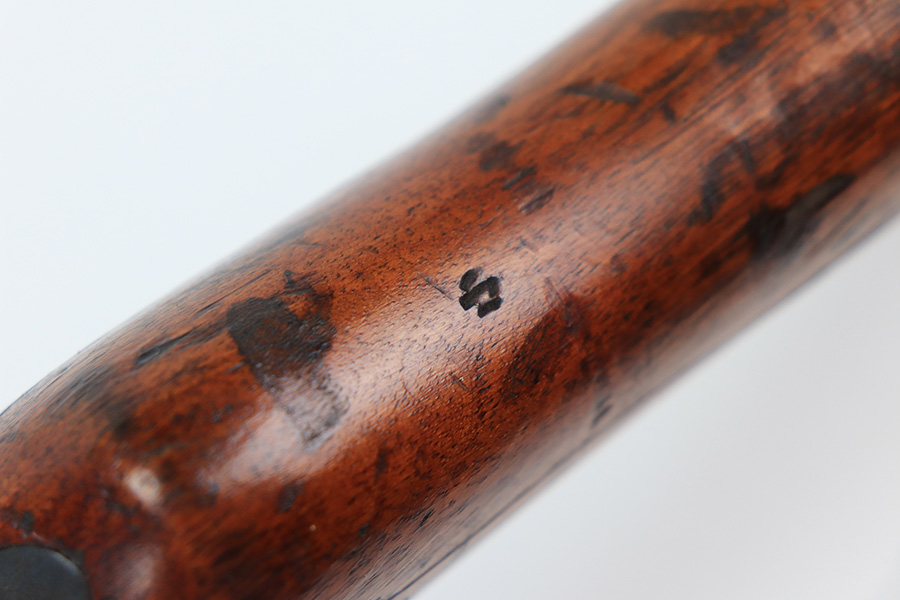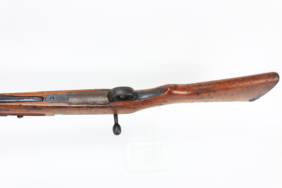2/24/22 – This is an all matching and original Arisaka Type 44 carbine in excellent condition with full mum intact. The blue shows some thinning on the receiver, but also some corrosion on the bolt, and surface rust on receiver. Strong, shiny bore with minor frost in the grooves. Crisp markings throughout, with fully matching bolt assembly. Various dings and handling wear on the stock but no cracks or major chips.