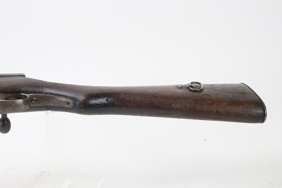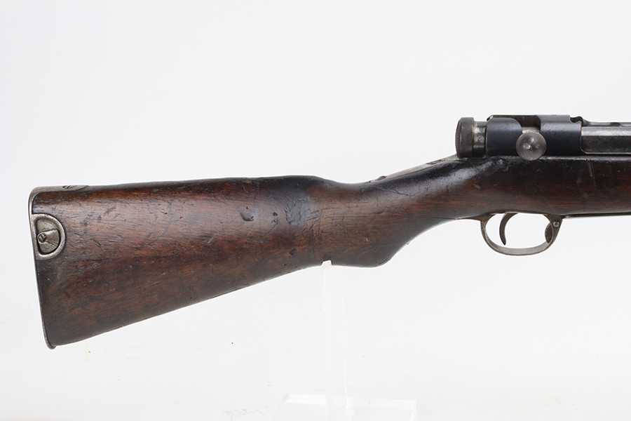 06/04/2024 – For sale is an Arisaka Type 44 made by Kokura prior to WW2. This rifle was used by mounted cavalry alongside the Type 38 carbine. The rifle is in an overall 85% condition and the rifle looks like it went through multiple battles. The stock and metal finish is well worn. The receiver still retains some bluing but the barrel, nose cap, and trigger guard are down to bare metal with Patina. There are some material missing on the left side of the stock at the receiver and magazine wall. The rifle is mismatched and the Imperial Mum has been ground. The bore is bright with good rifling.