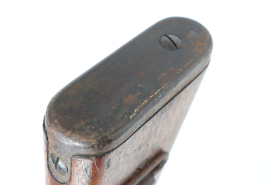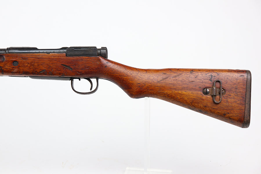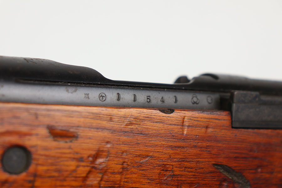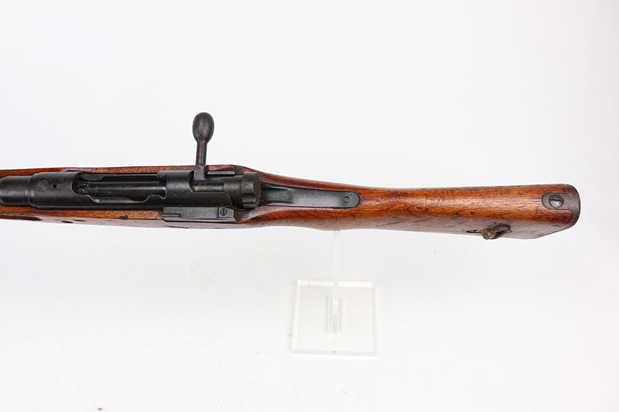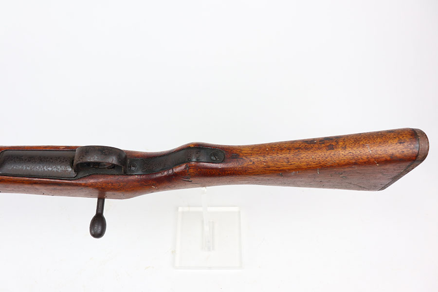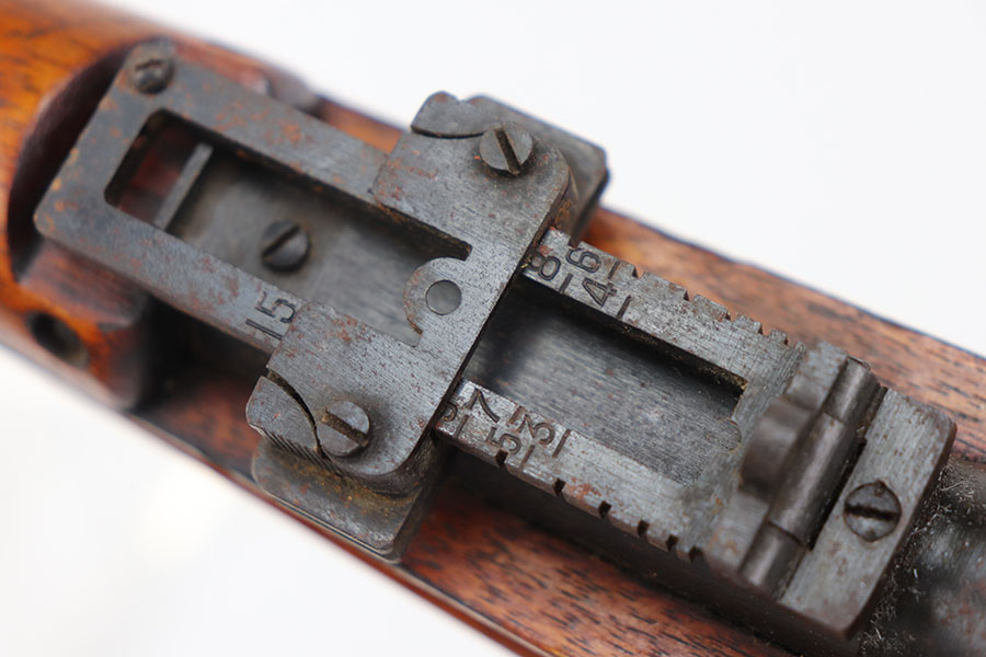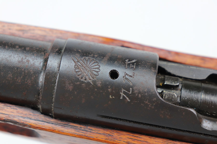 1/26/21 – This is an all matching and original Arisaka Type 99, including receiver, bayo lug, bolt, cocking knob. The bluing is original and doesn’t show much actual finish loss, but there is obviously oxidation throughout. Mum is mostly intact but does have a couple of peen marks through it. Stock has various dings throughout but no cracks. Strong, shiny bore.