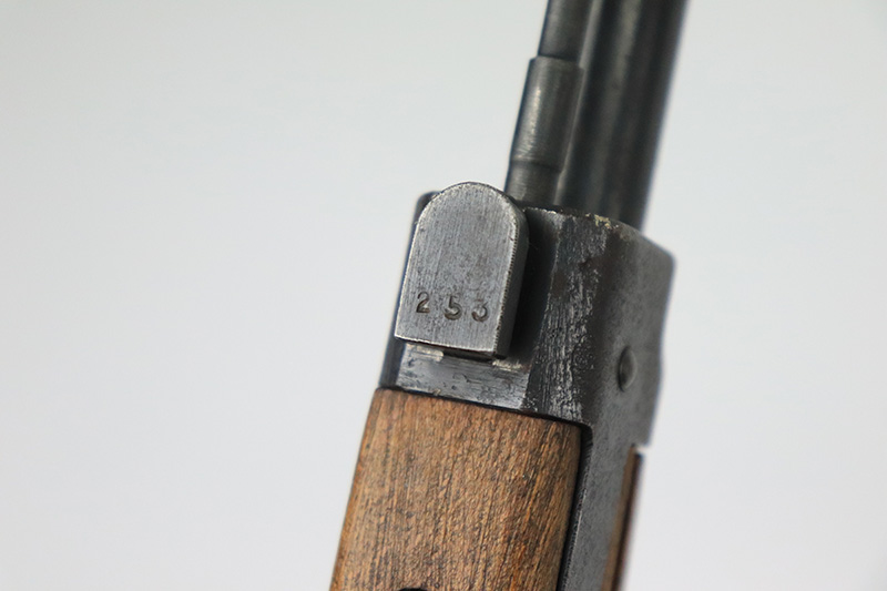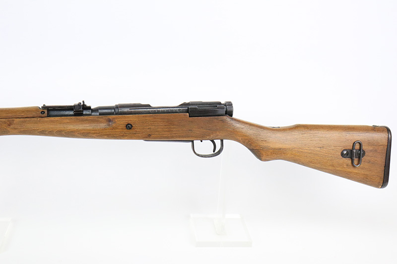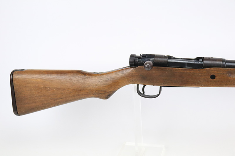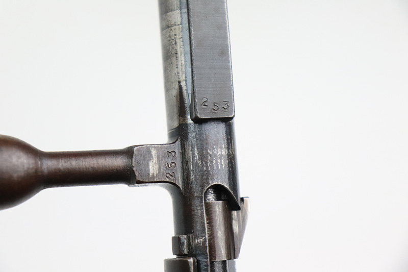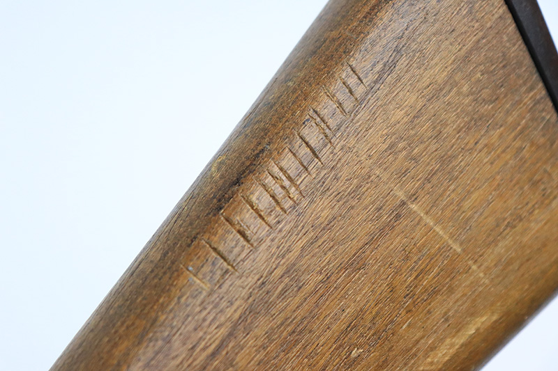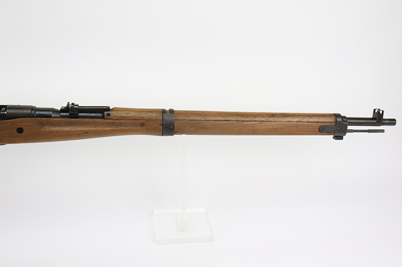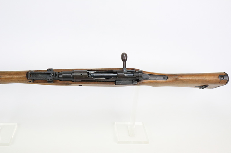9/6/22 – This is a very nice example of an Arisaka Type 99 rifle issued to the Japanese military during WW2. The gun is all matching, but the original Imperial mum stamp on the receiver has been defaced. Overall, the gun is in very nice condition. There is just some minor muzzle wear and areas of minor thinning and light brown patina on the receiver, bolt handle, and floor plate. The wood stock is excellent but may have been lightly sanded. There are some notches carved into the right side of the butt stock. Comes with an original cleaning rod. Mint bore.