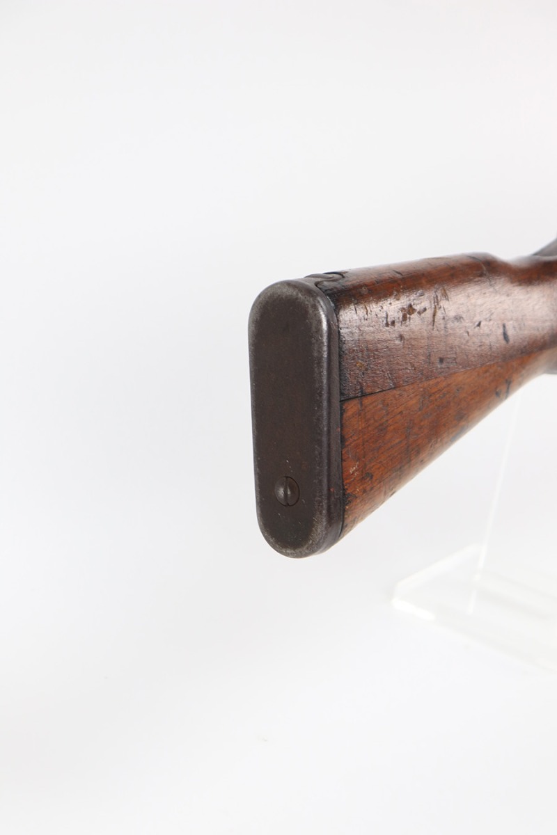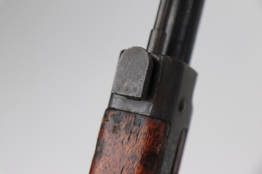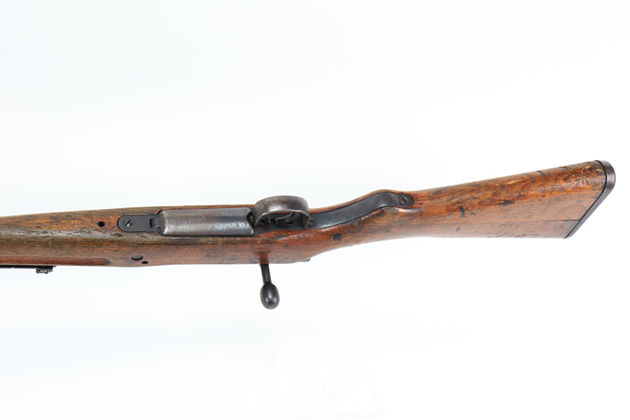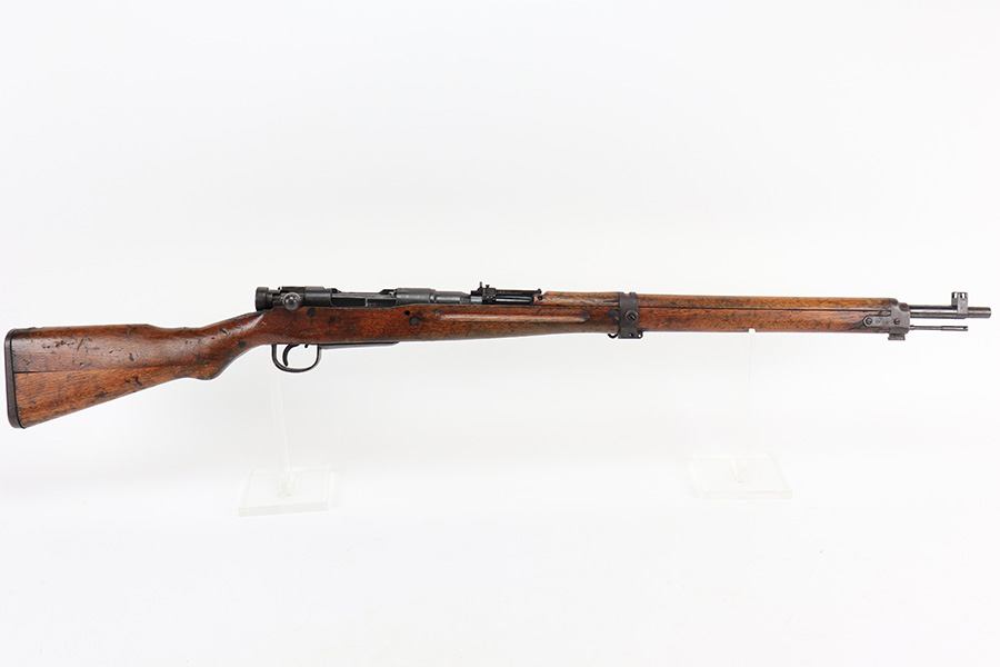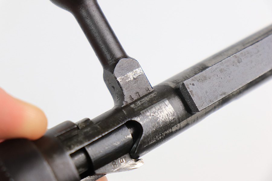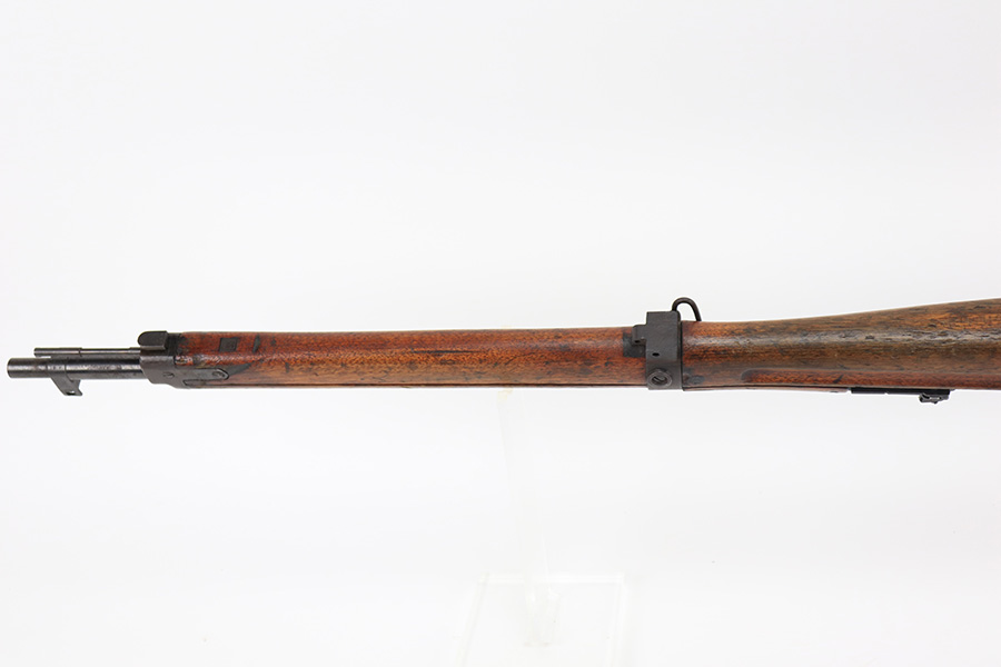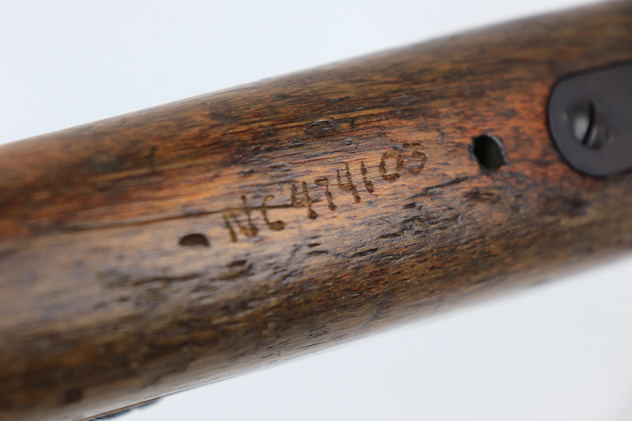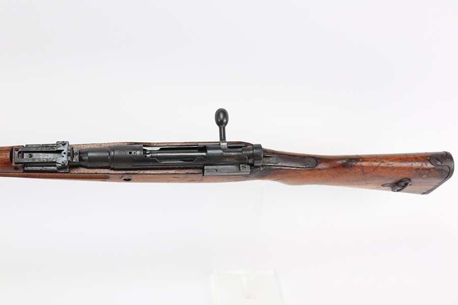 6/9/22 – This is a nice example of an Arisaka Type 99 issued to the Japanese military during WW2. It is all matching and has a fully intact Imperial mum stamp on the receiver. The gun is matching to itself, but the bolt is mismatched. There is pin-pricking on the receiver and on the barrel. Minor muzzle wear. Some thinning and brown patina on the floor plate / trigger group. There is a series of numbers light scratched into the floor plate and wood stock. Heavy brown patinas on the butt plate. The stock has dings, dents, and scratches throughout. Minty bore.