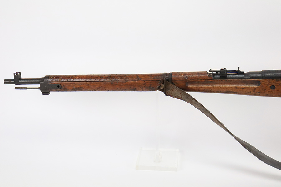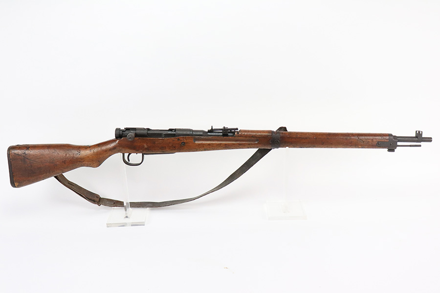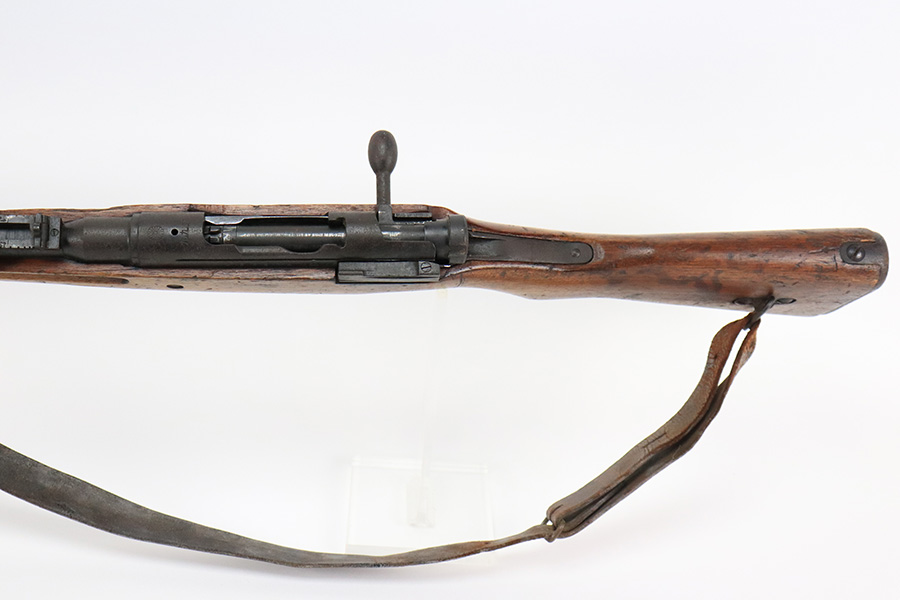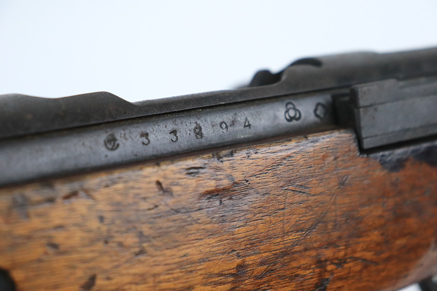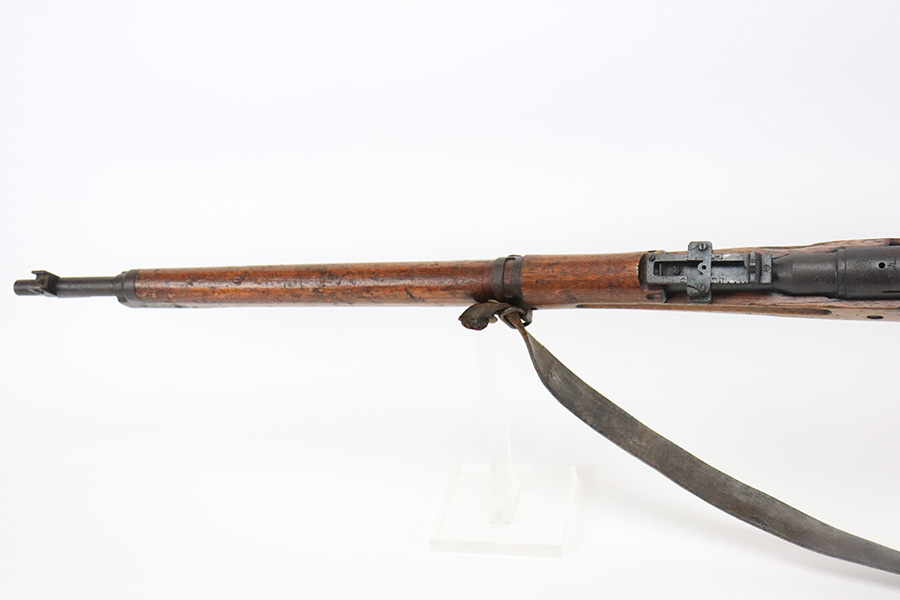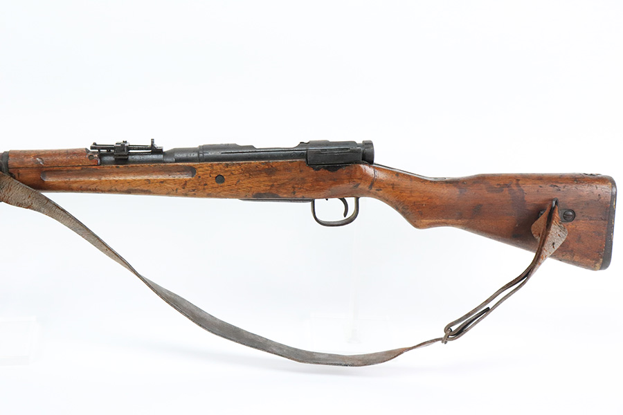8/5/22 – This is a nice example of an Arisaka Type 99 issued to the Japanese military for WW2. The rifle is mismatched, but the bolt grouping matches itself. The firing pin is broken and won’t function, but does match the rest of the bolt. The receiver does feature a fully intact Imperial Mum stamp. Most of the original finish is intact, but there is oxidation throughout the entirety of the rifle. The wooden stock is in overall nice condition, showing handling wear throughout with a few dings here and there. The rear sight is missing both anti-air wings, and the left side screw for the front barrel band is missing. The rifle comes with an original sling and cleaning rod. The bore is shiny and mint. This gun would make an excellent shooter if a replacement firing pin were to be acquired.