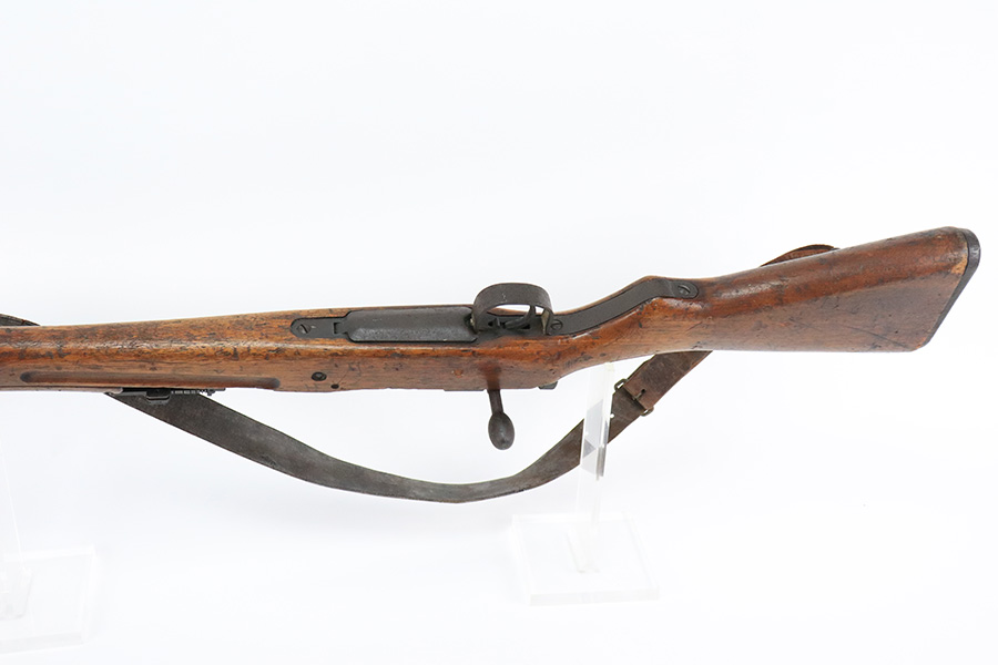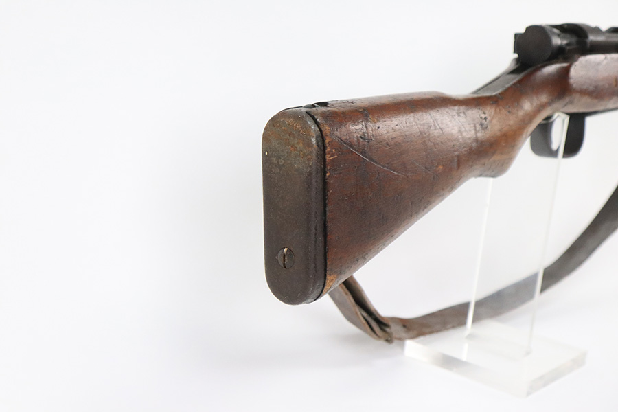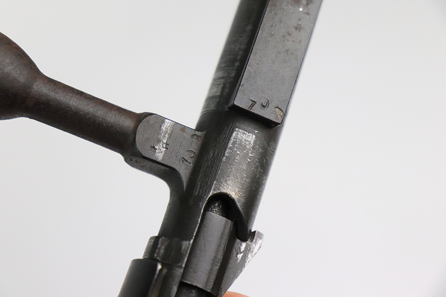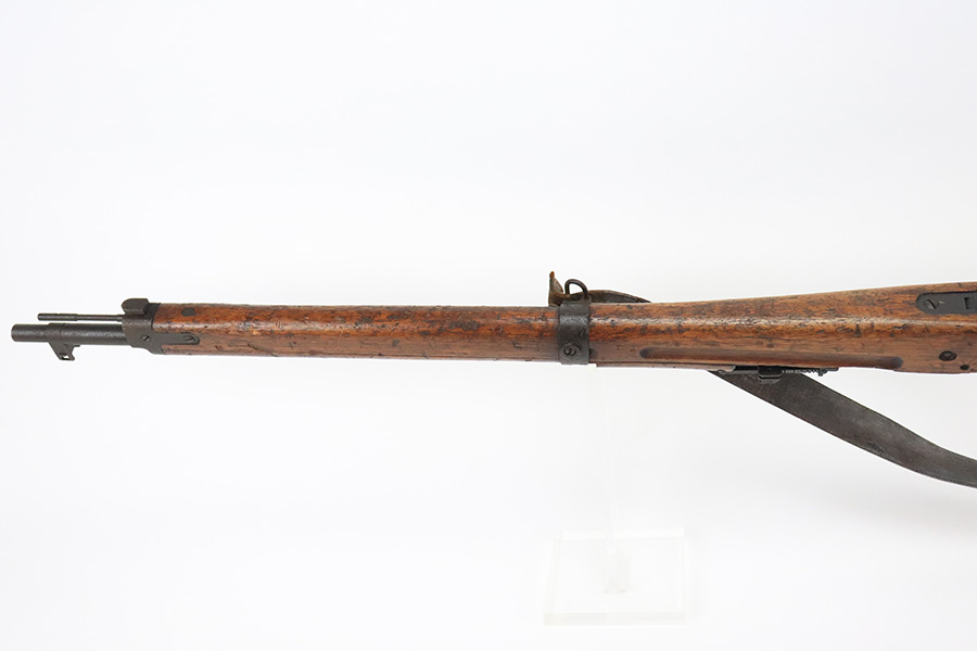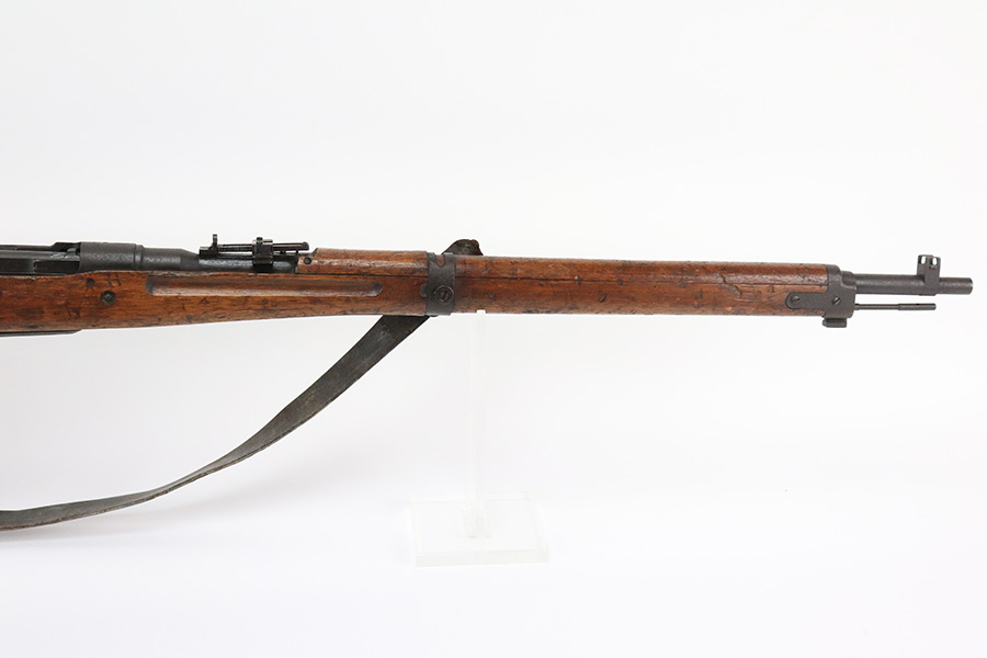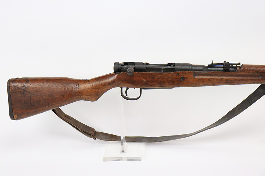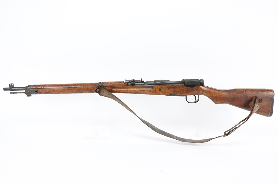 8/5/22 – This is a nice example of an Arisaka Type 99 issued to the Japanese military for WW2. The rifle is mismatched, but the bolt grouping matches itself. The firing pin is broken and won’t function, but does match the rest of the bolt. The receiver does feature a fully intact Imperial Mum stamp. Most of the original finish is intact, but there is oxidation throughout the entirety of the rifle. The wooden stock is in overall nice condition, showing handling wear throughout with a few dings here and there. The rear sight is missing both anti-air wings, and the left side screw for the front barrel band is missing. The rifle comes with an original sling and cleaning rod. The bore is shiny and mint. This gun would make an excellent shooter if a replacement firing pin were to be acquired.