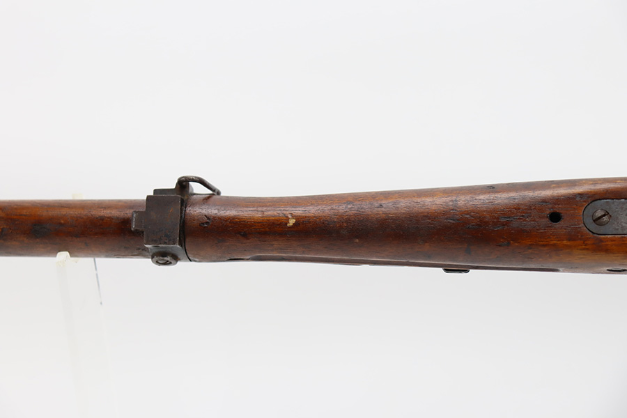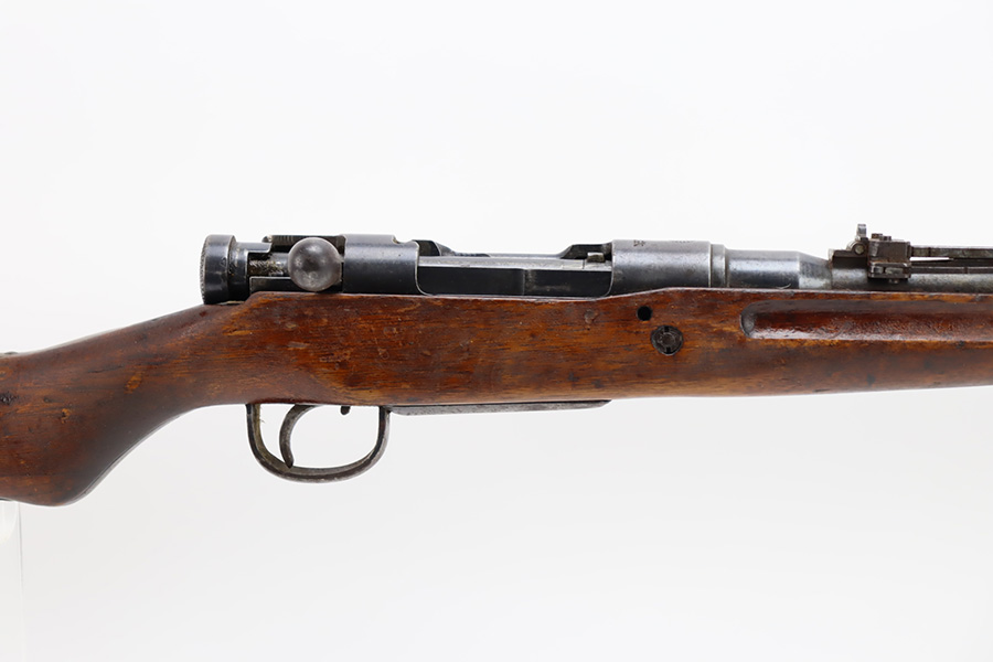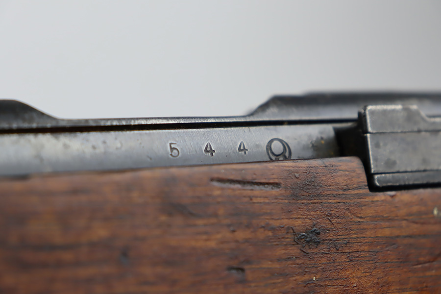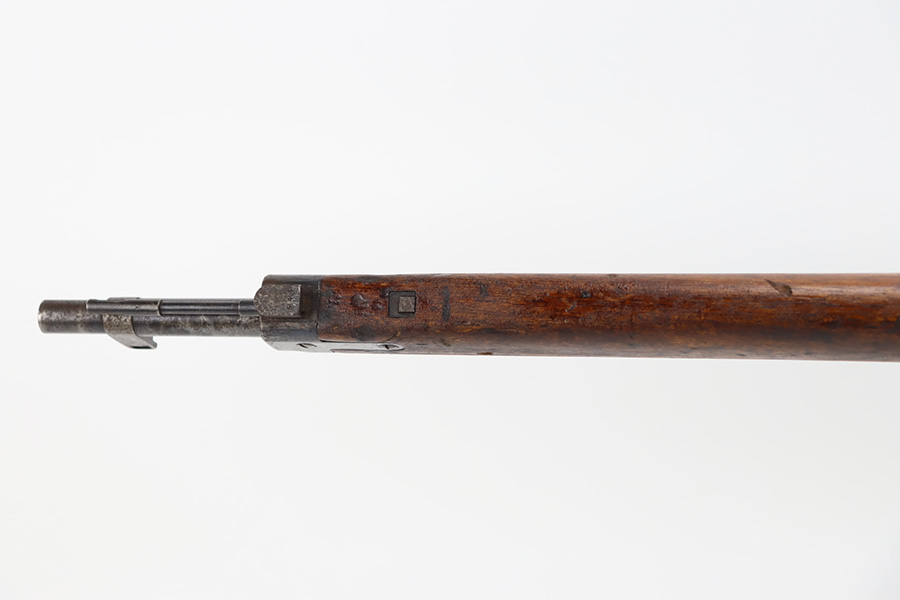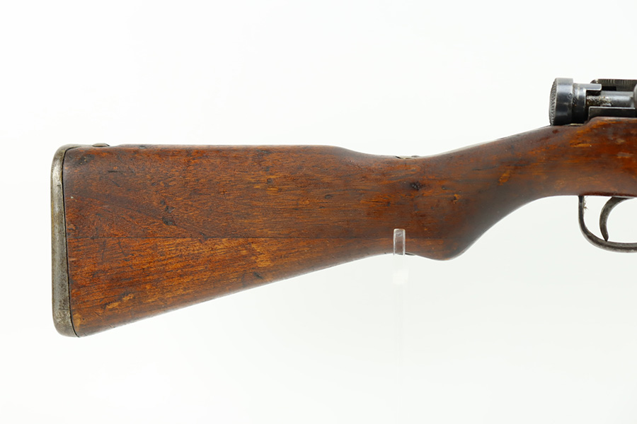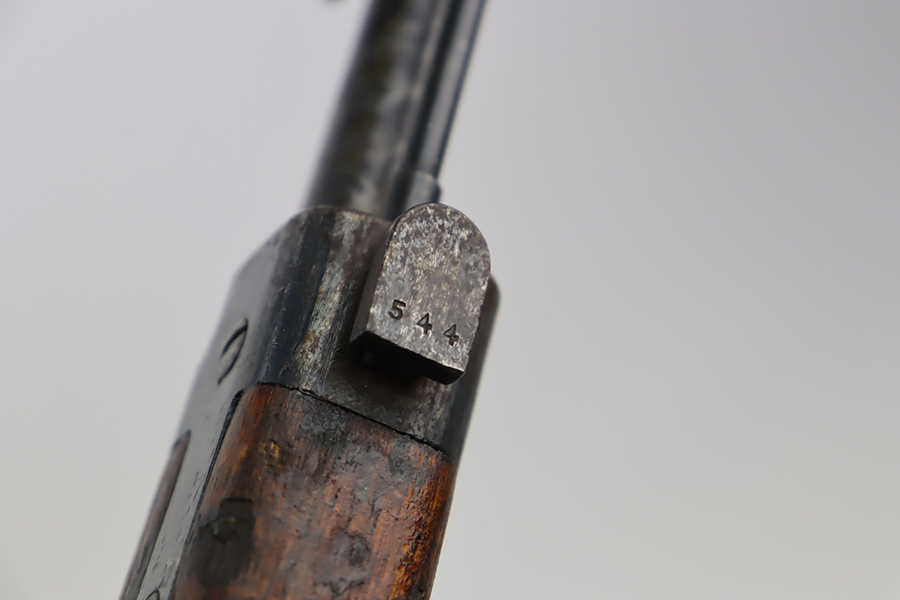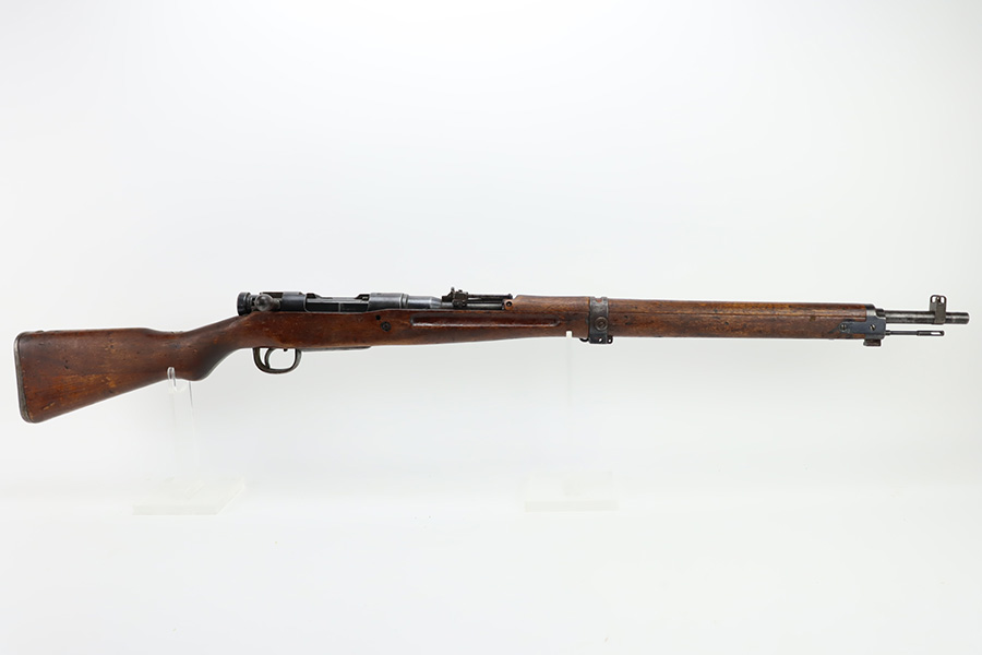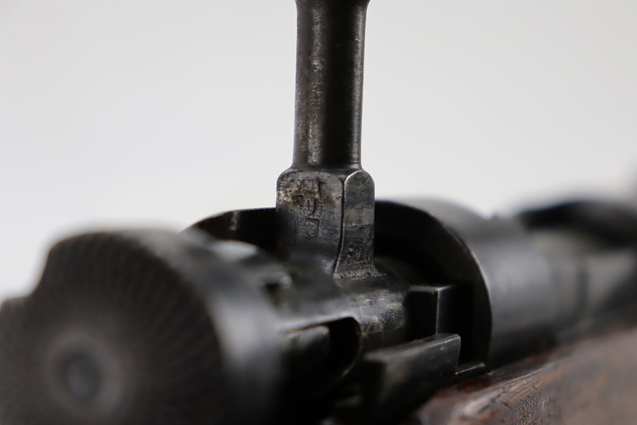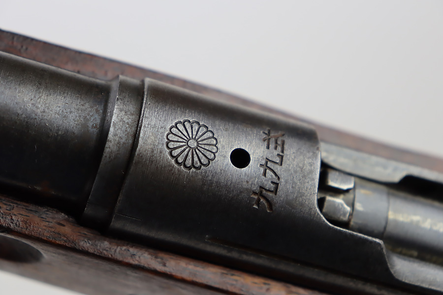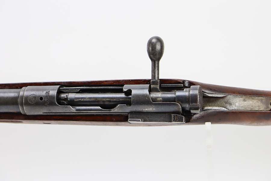 10/6/23 – This is a nice example of an Arisaka Type 99 rifle issued to the Japanese military during WW2. It is all matching with a completely intact Imperial mum stamp on the receiver. The bluing rates roughly 85% with thinning on the barrel and floor plate. While there isn’t a ton of actual finish loss, there is obvious spotty oxidation covering the metal parts. Some light surface rust on the floor plate. The stock shows the typical signs of wear and use. Mint bore.